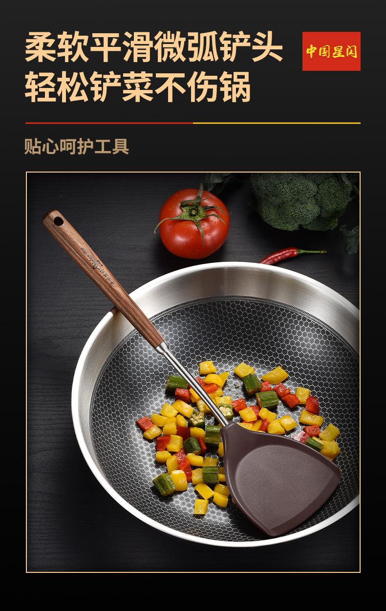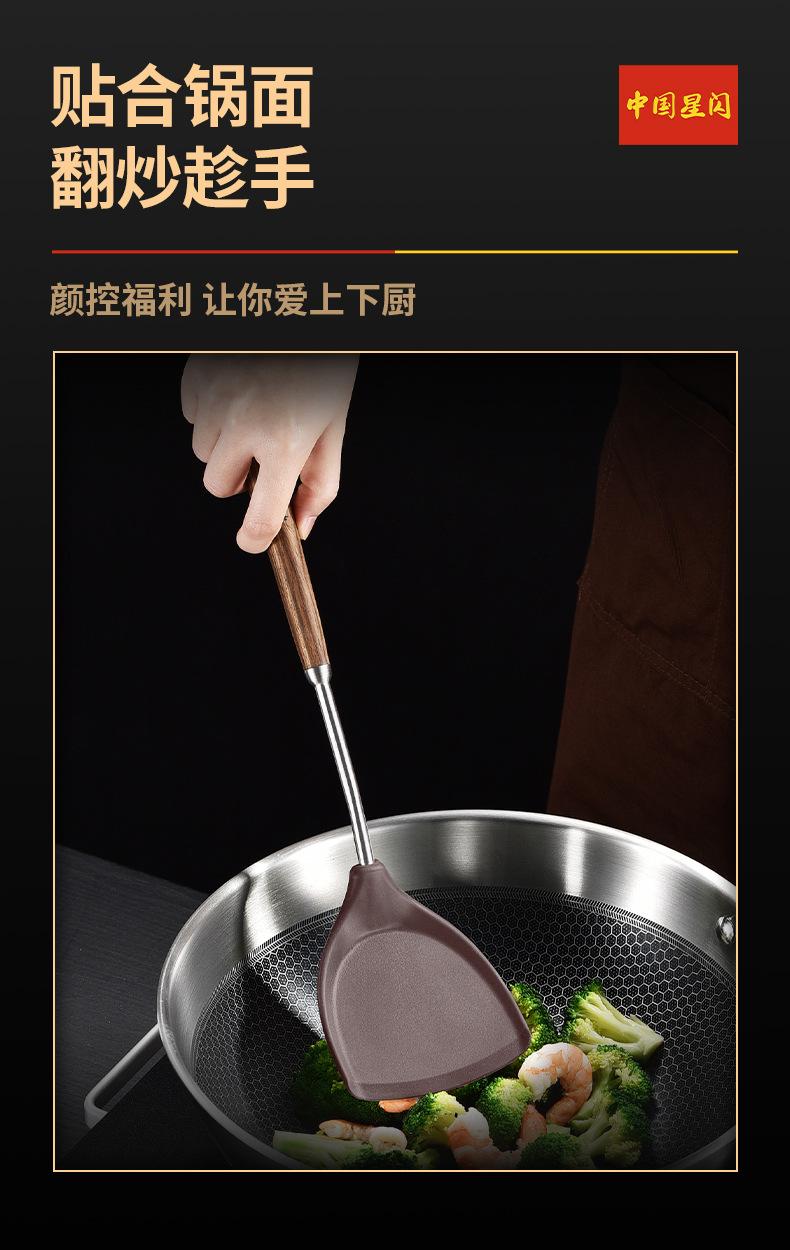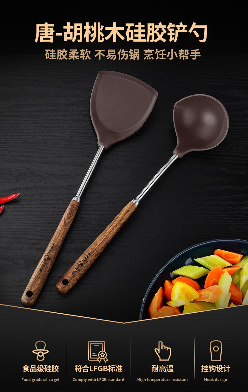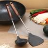 Olla Antiadherente de Nogal Espátula de Silicona Espátula para Cocinar Resistente a Altas Temperaturas Acero Inoxidable Utensilios de Cocina Domésticos Olla Antiadherente Espátula de Silicona