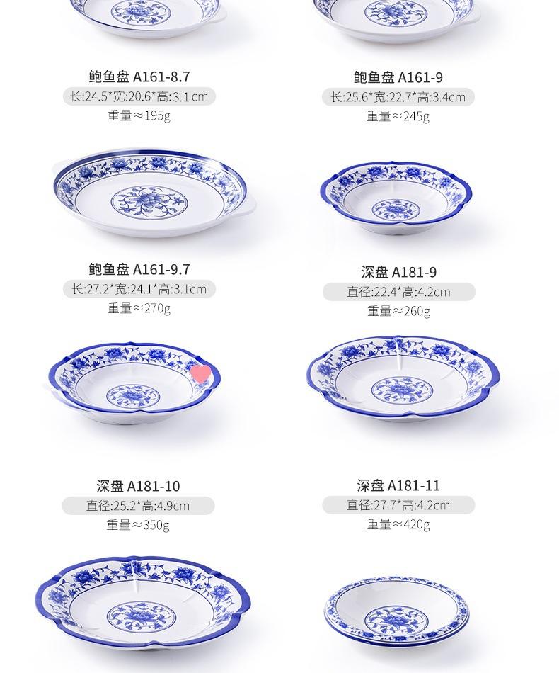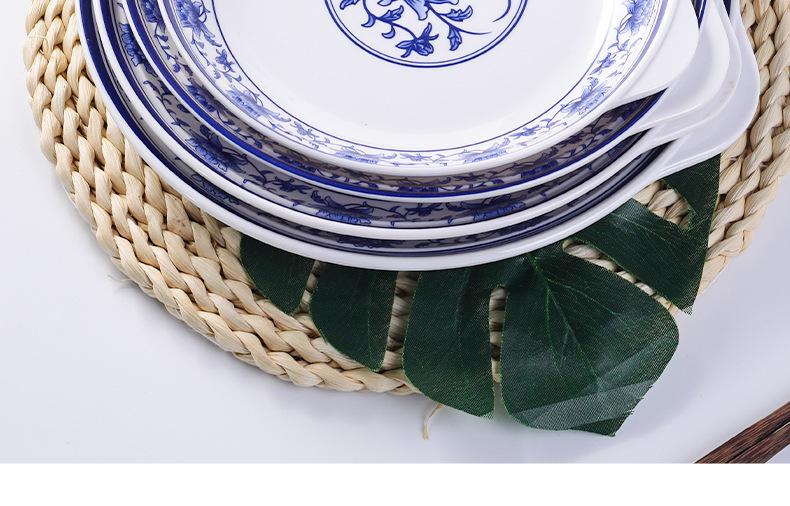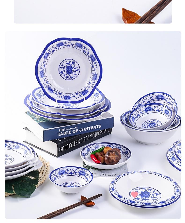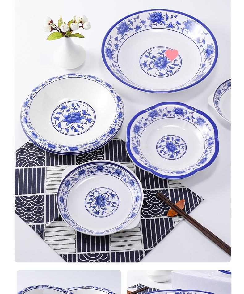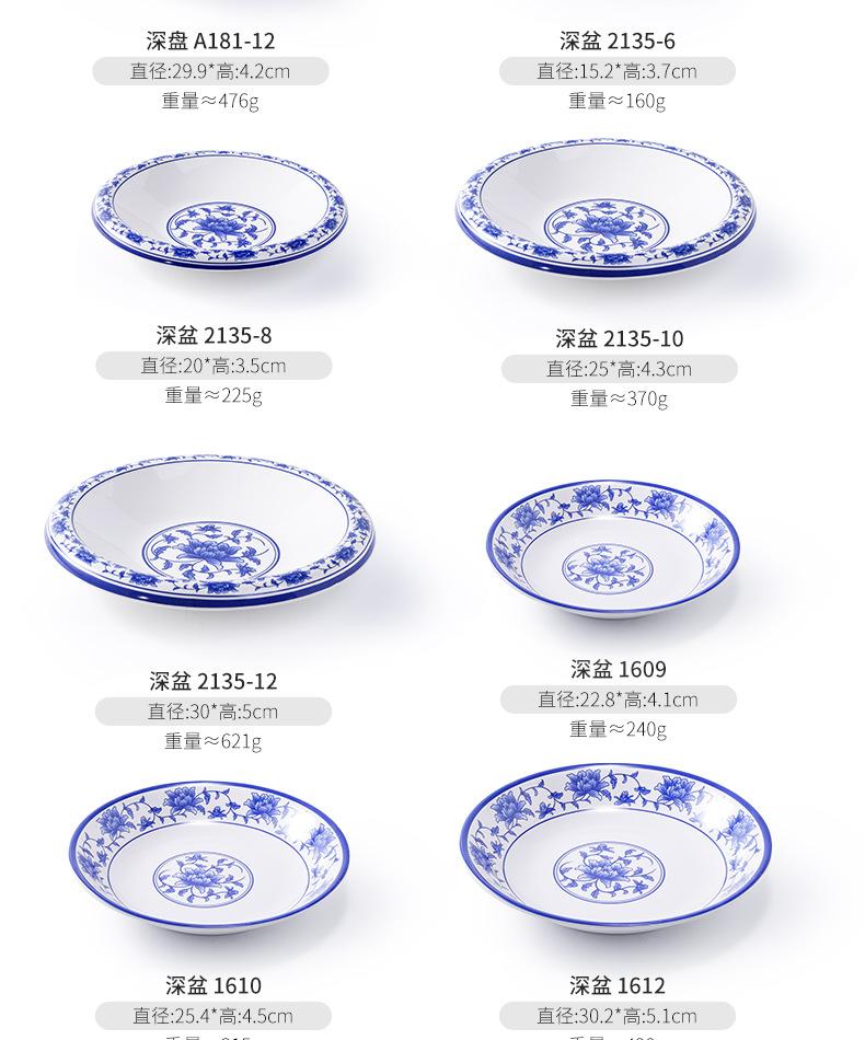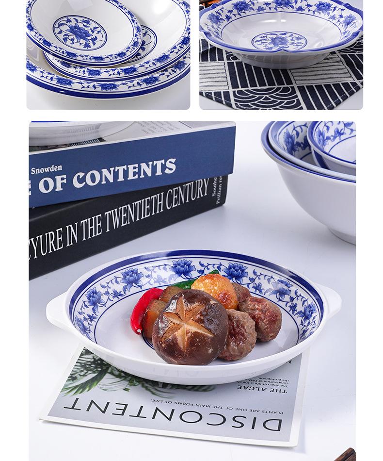 Plato de melamina plástico porcelana azul y blanco plato hondo plato hondo creativo restaurante restaurante plato para cocinar plato para pescado comercial