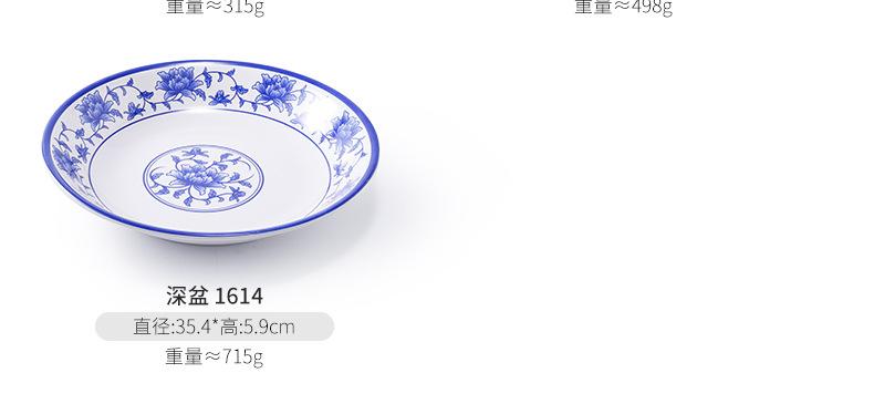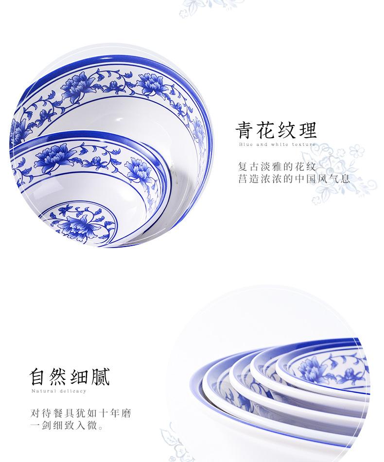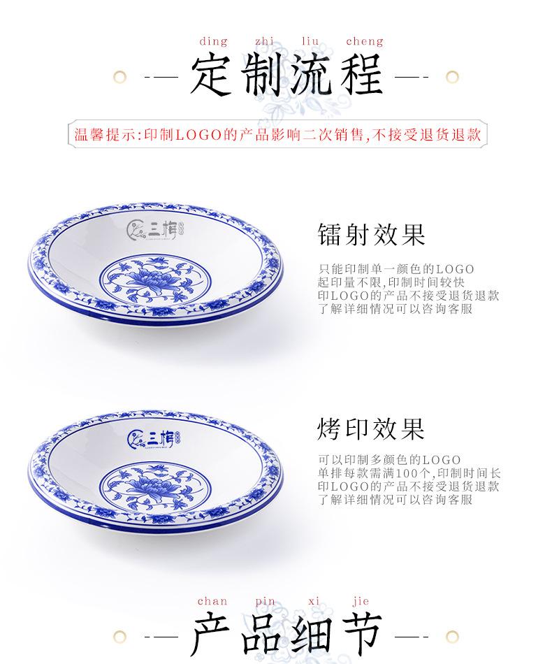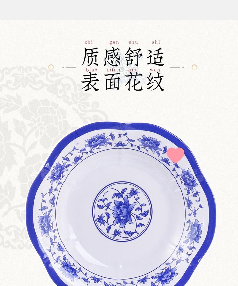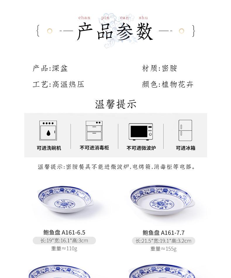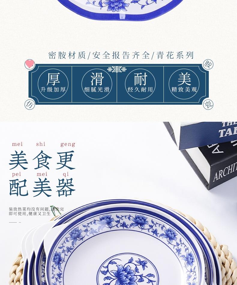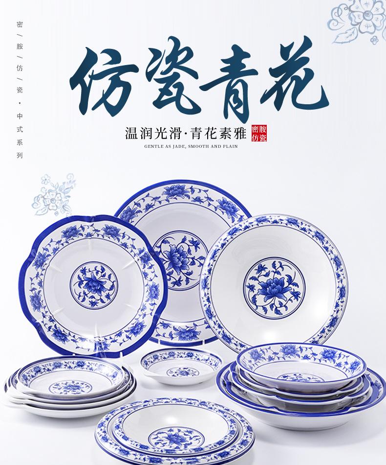 Plato de melamina plástico porcelana azul y blanco plato hondo plato hondo creativo restaurante restaurante plato para cocinar plato para pescado comercial