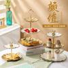 Plato de Frutas Cerámico Multicapa Europeo Sala de Estar Mesa de Centro Plato de Frutas Dulces Frutos Secos Soporte para Pastel Mesa de Postres Plato para Aperitivos