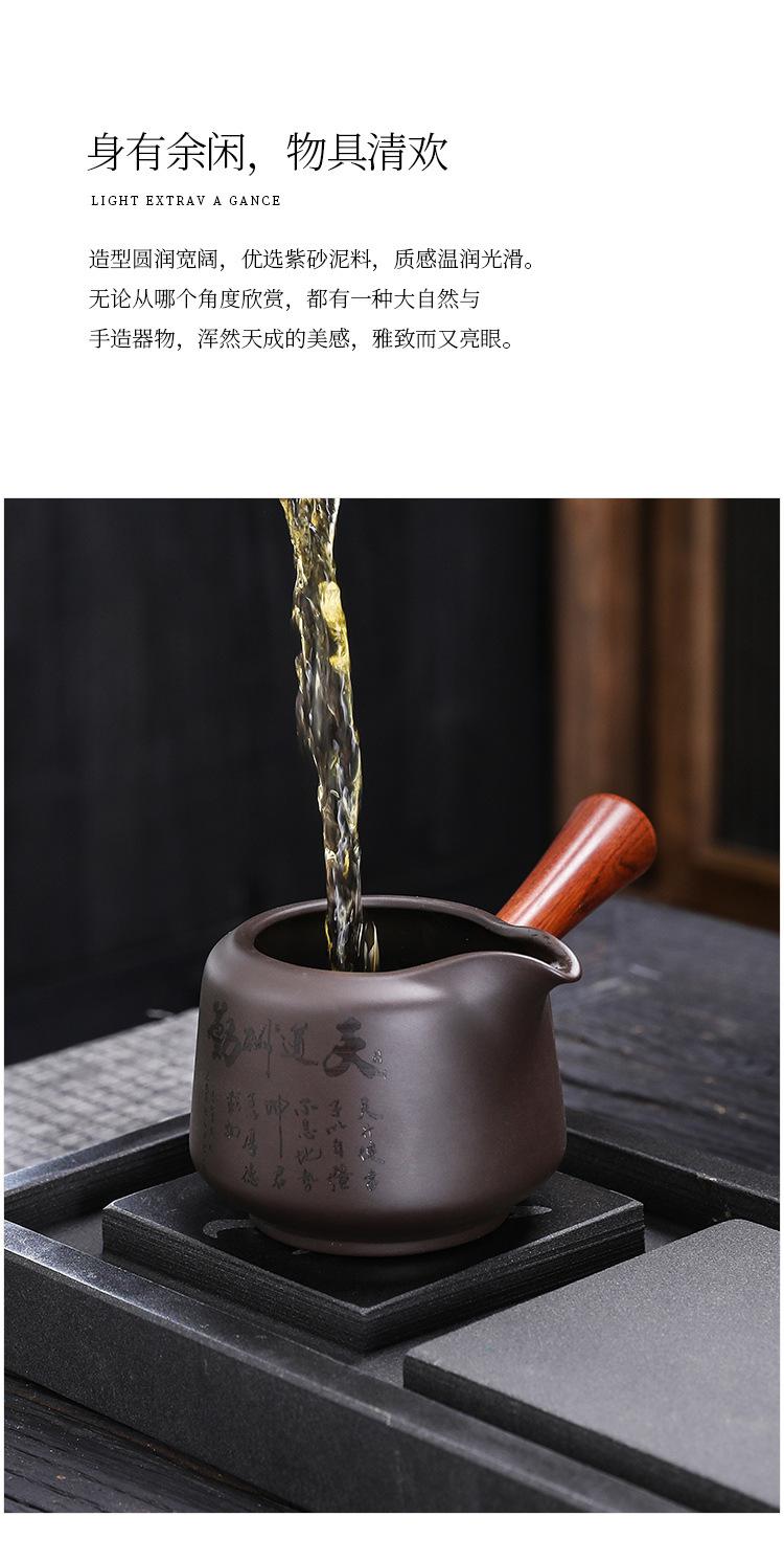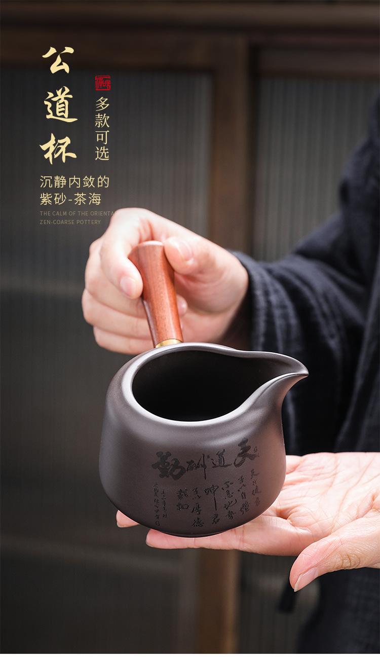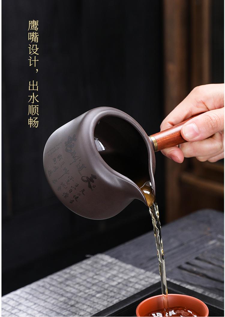 Juego de té de Kung Fu con cola de madera de arena morada, juego de té grande con grabado marino, accesorios para la ceremonia del té, taza antifugas, taza pública, para el hogar