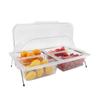 Caja de salsa transparente abatible con tapa, de autoservicio, con rejilla multiusos, para mermelada de verduras, hielo en polvo, fruta marinada y conservante.