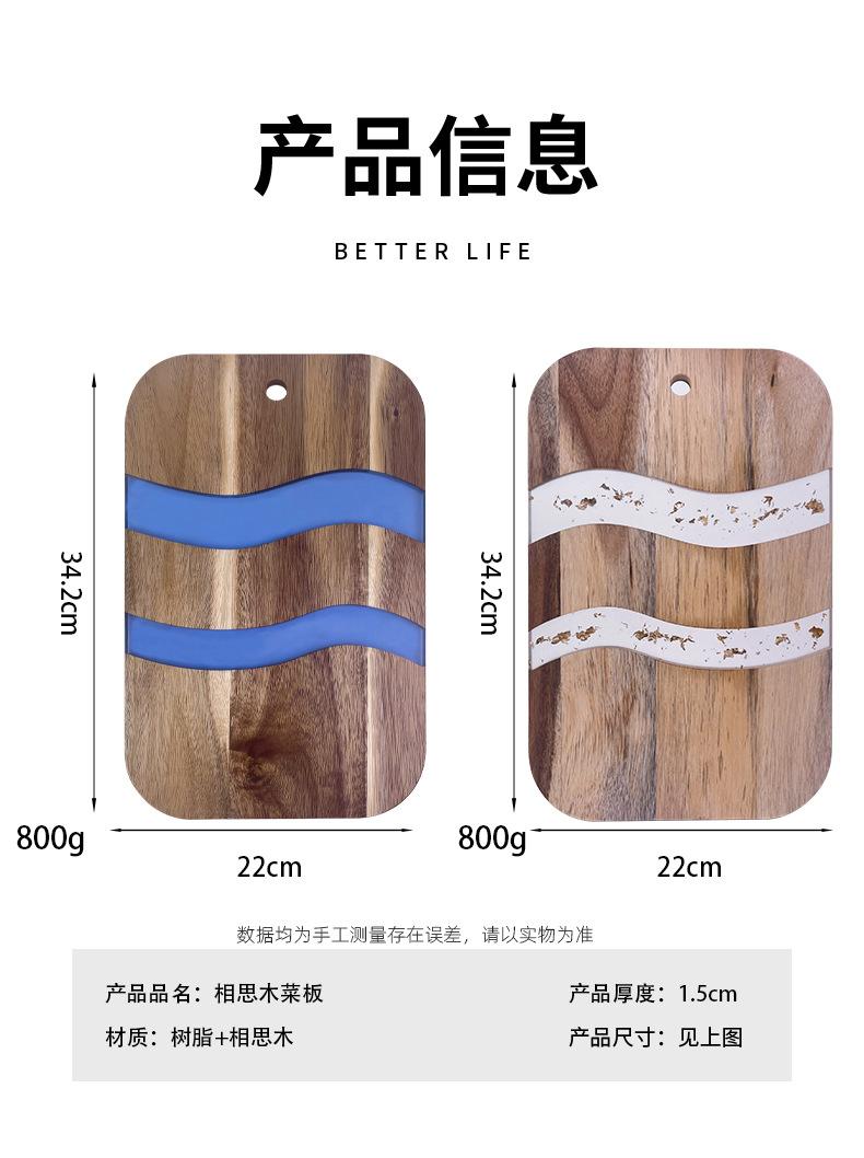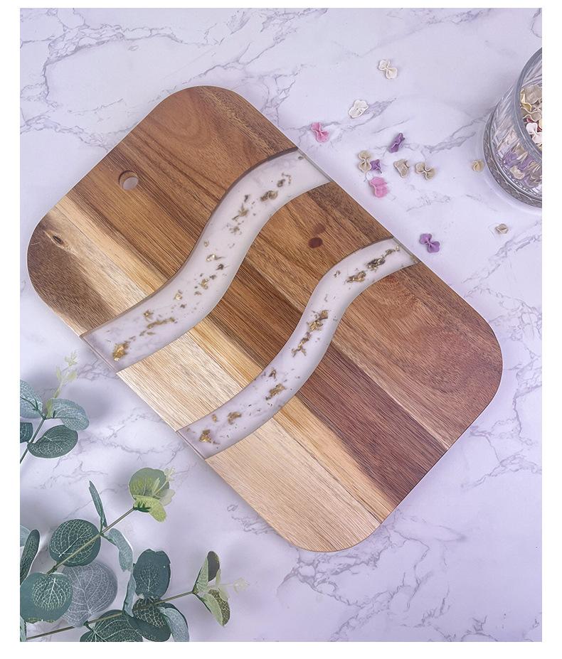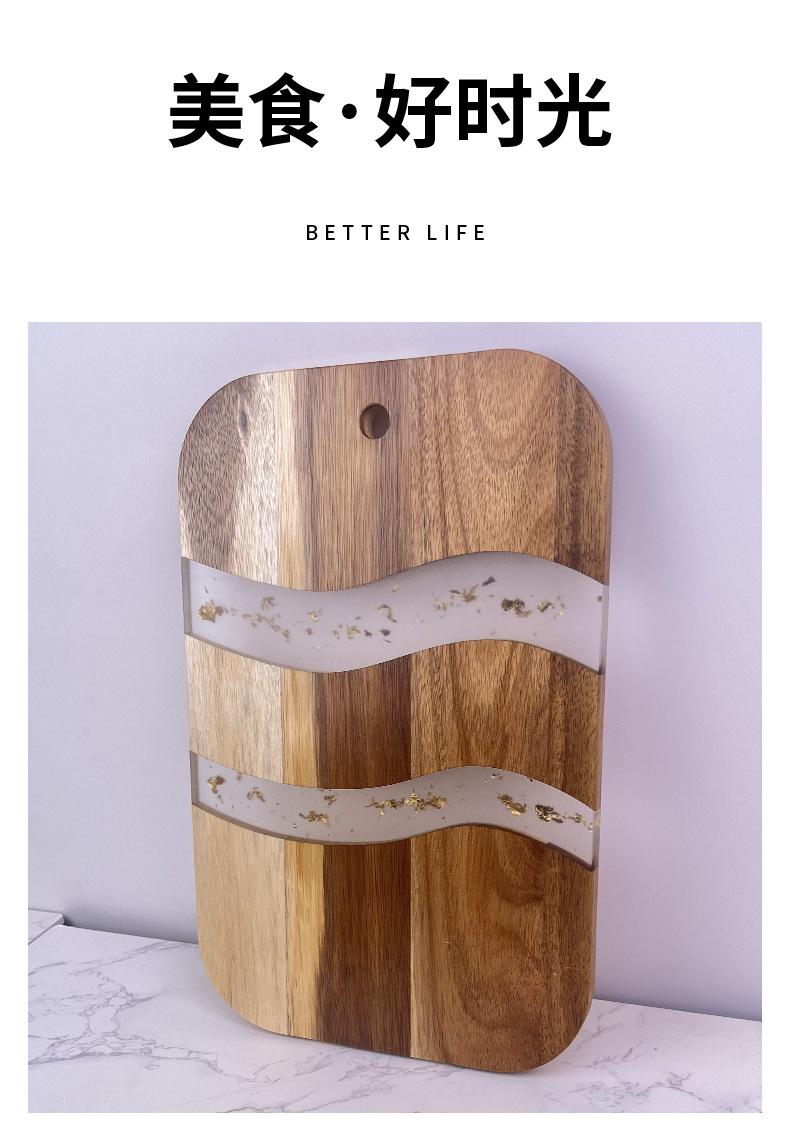 Tabla de cortar de resina con lámina de oro transfronteriza, costura de madera de acacia rayada, tabla de cortar de resina, tabla de queso de madera, tabla para pan y bistec