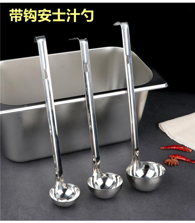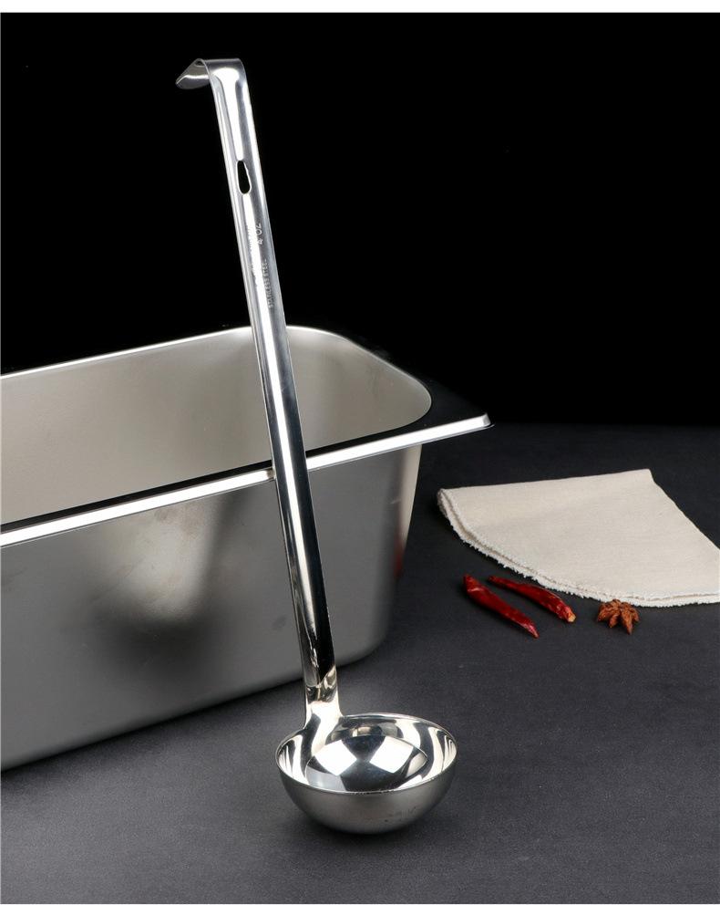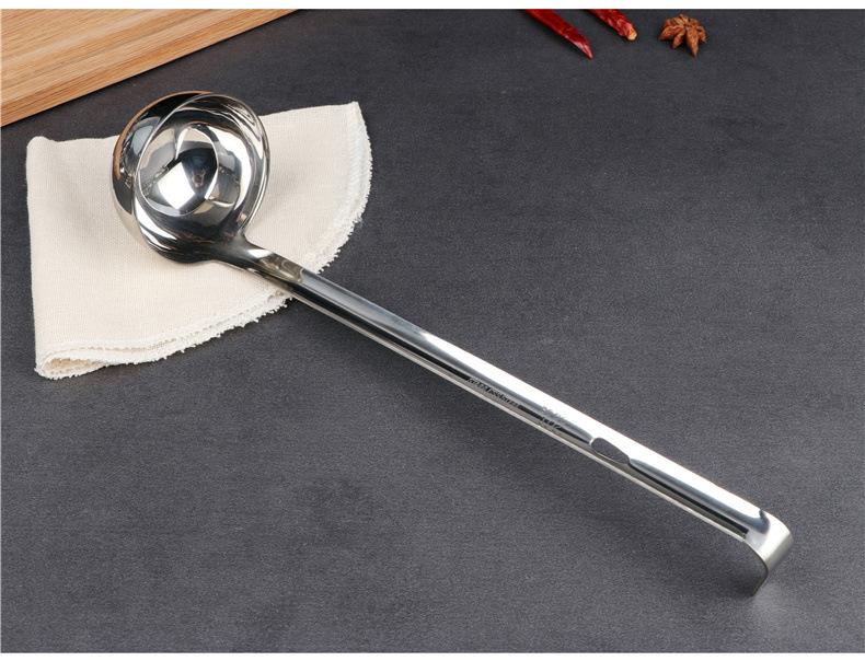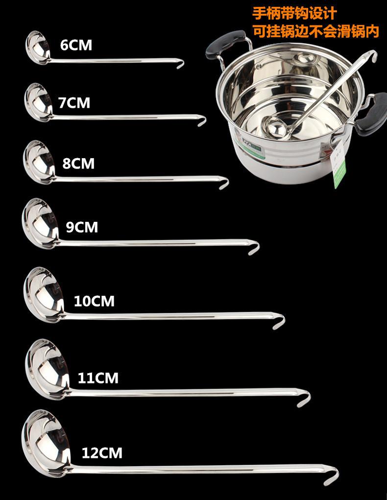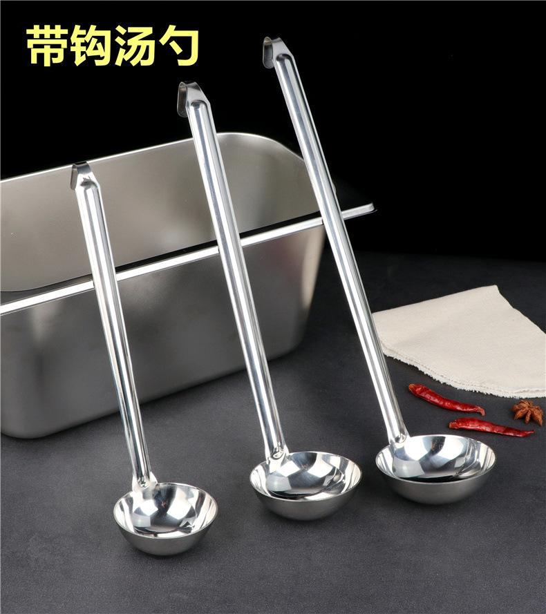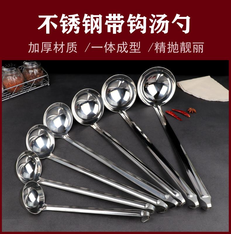 Cuchara para sopa de acero inoxidable con gancho colador mango largo mango largo cuchara para vino se puede colgar a lo largo de la olla cuchara para sopa cuchara para avena engrosada para el hogar