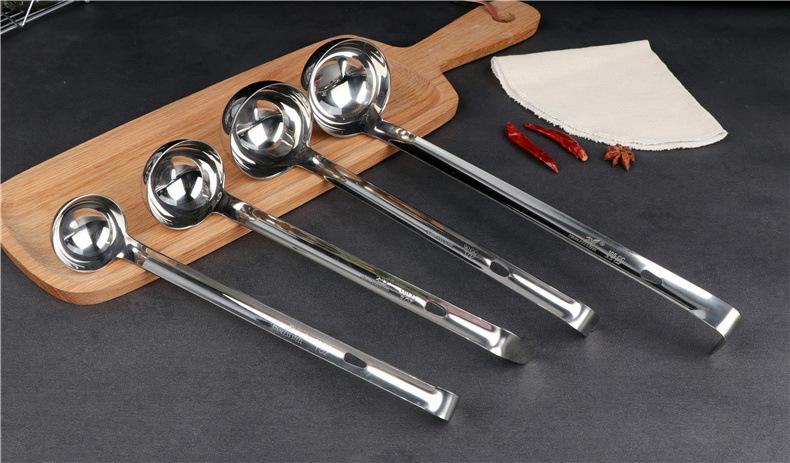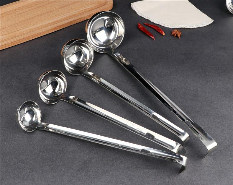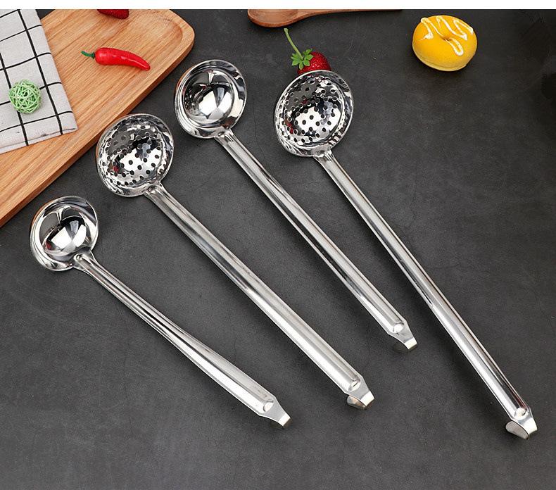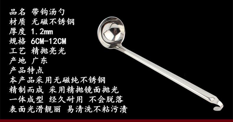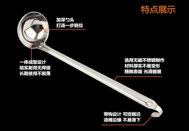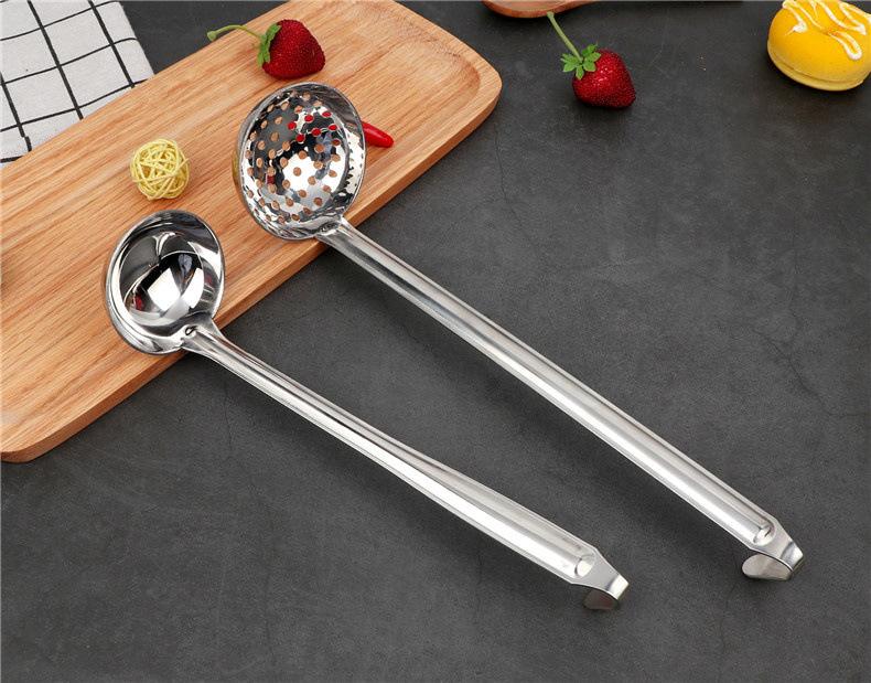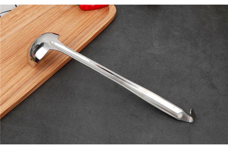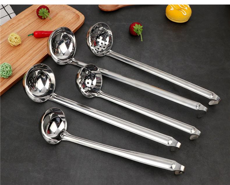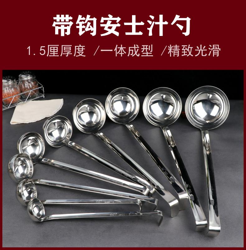 Cuchara para sopa de acero inoxidable con gancho colador mango largo mango largo cuchara para vino se puede colgar a lo largo de la olla cuchara para sopa cuchara para avena engrosada para el hogar