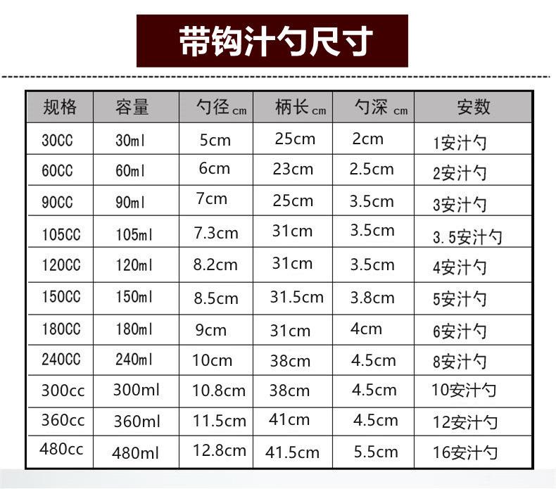 【6cm】small size - spoon with hook, capacity 40ml, 【7cm】small size - spoon with hook, capacity 70ml, 【8cm】 medi...