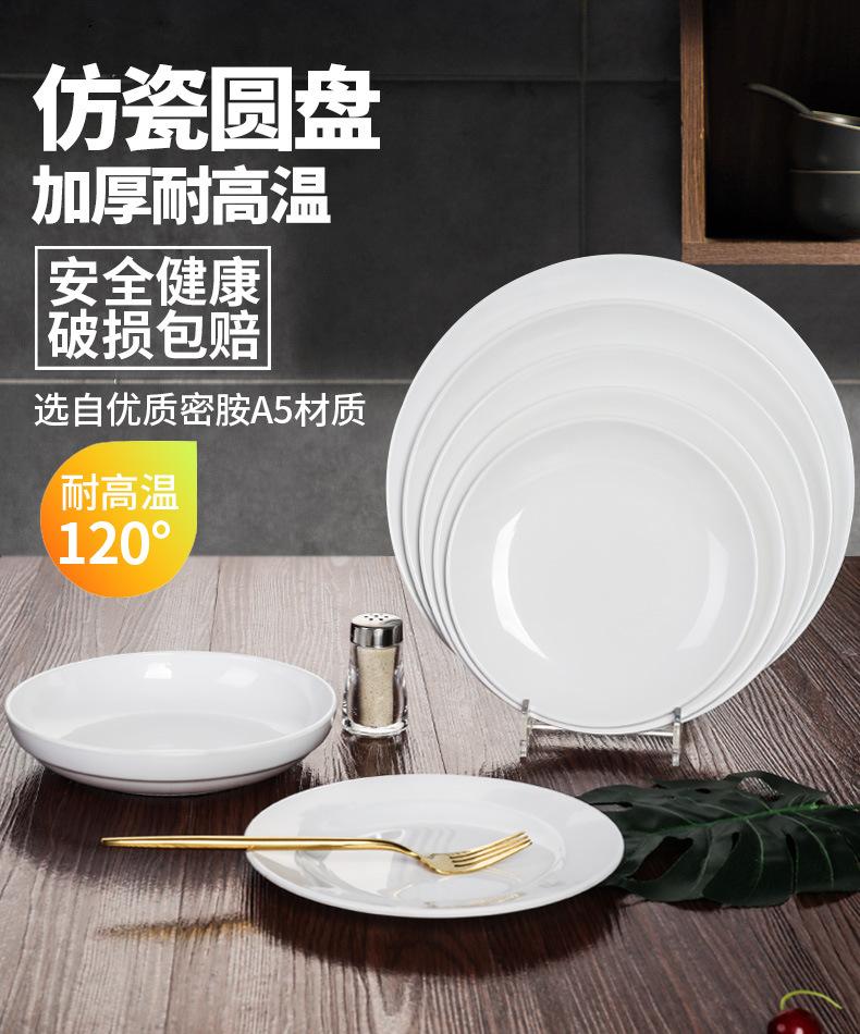 Plato de melamina con forma de hueso, redondo, de plástico, blanco, para restaurante, hotel, buffet, comercial.