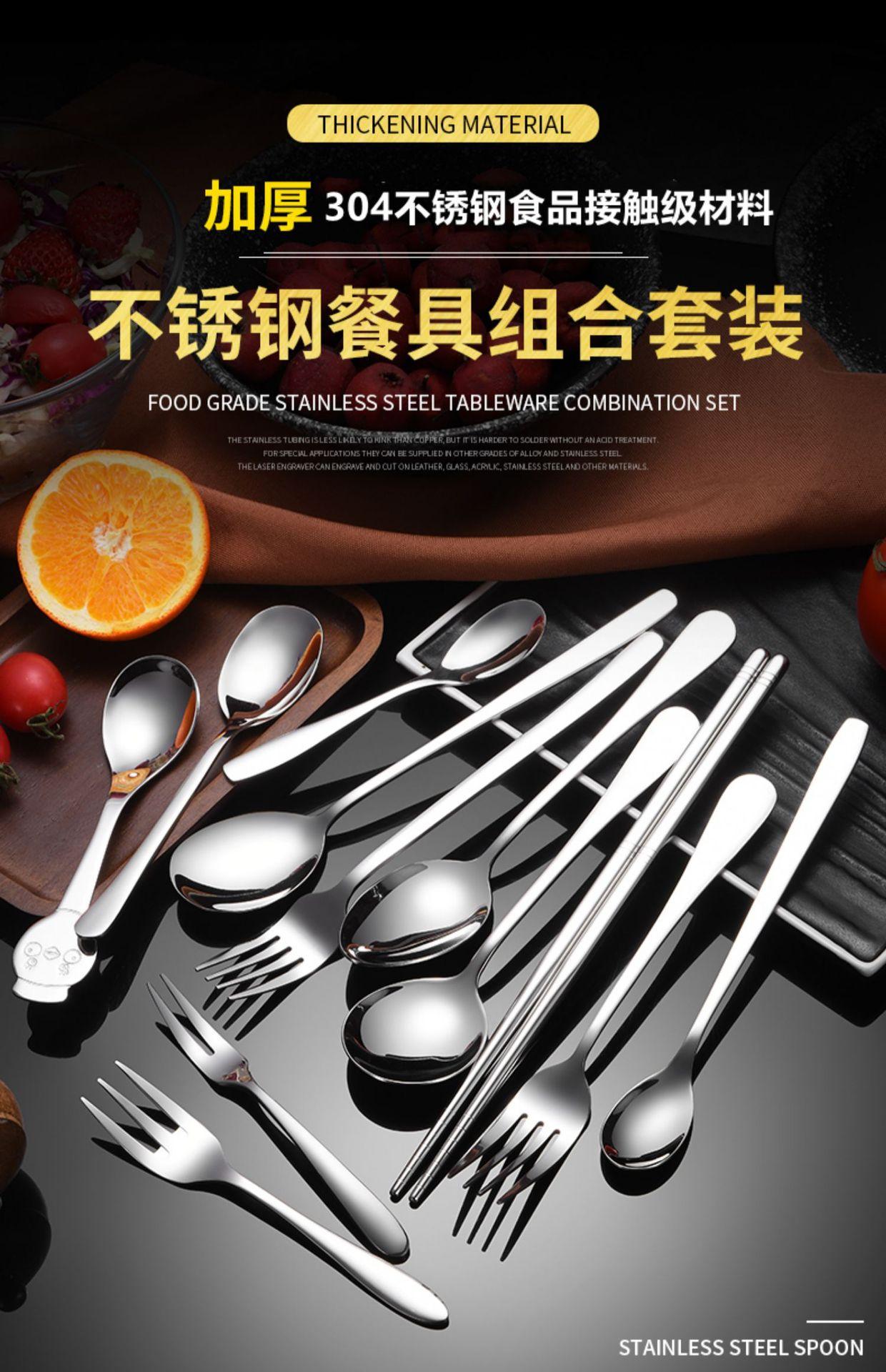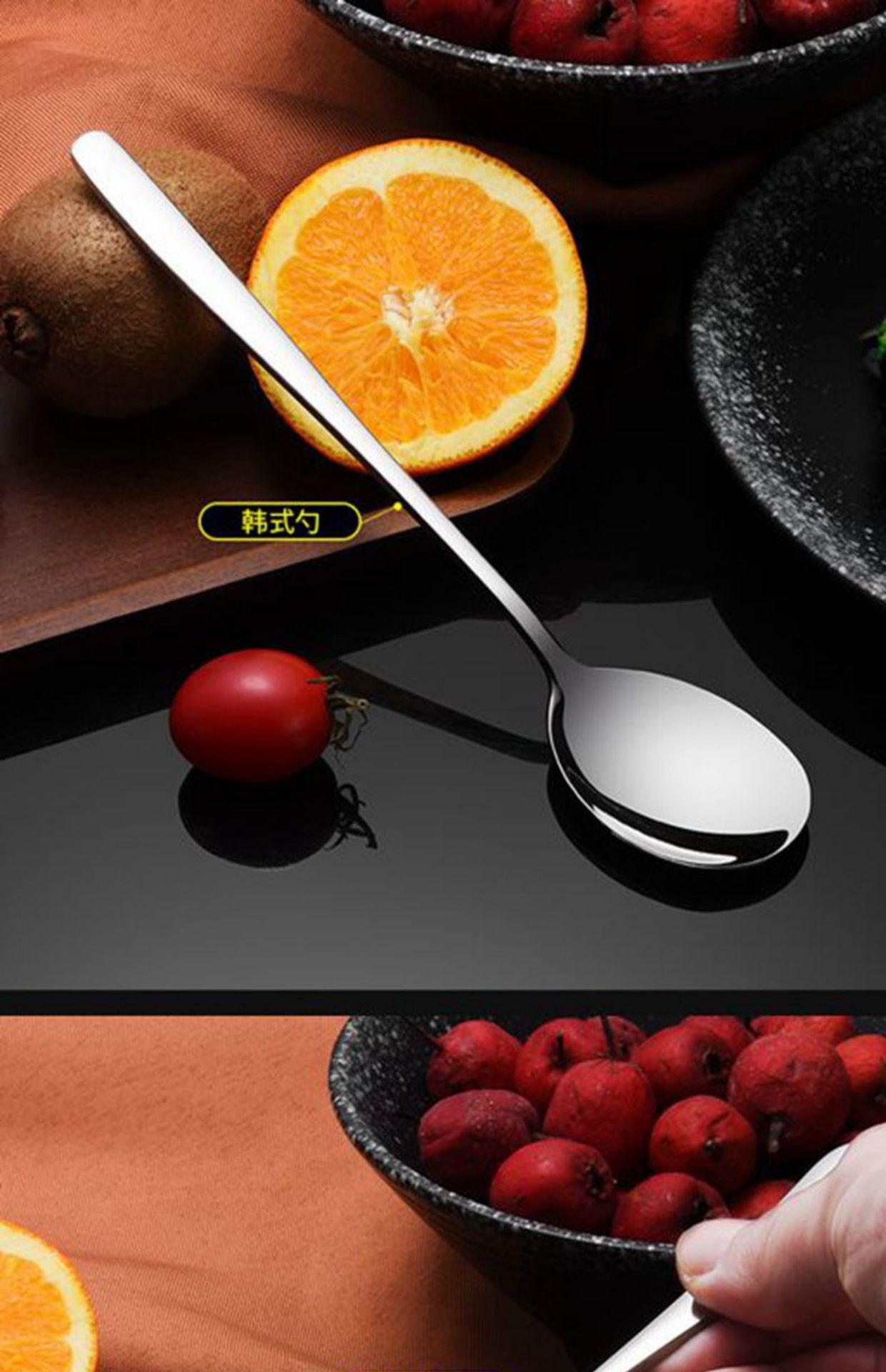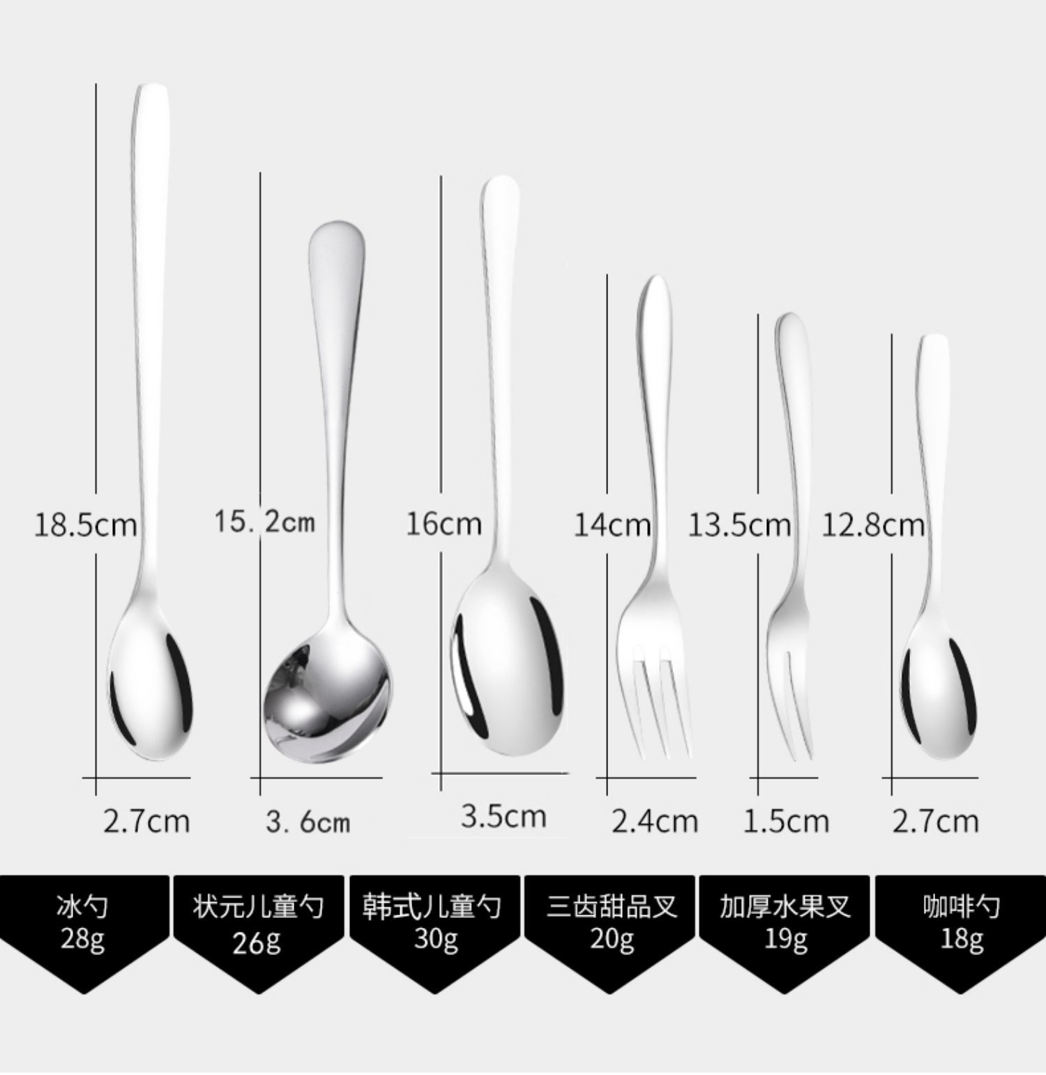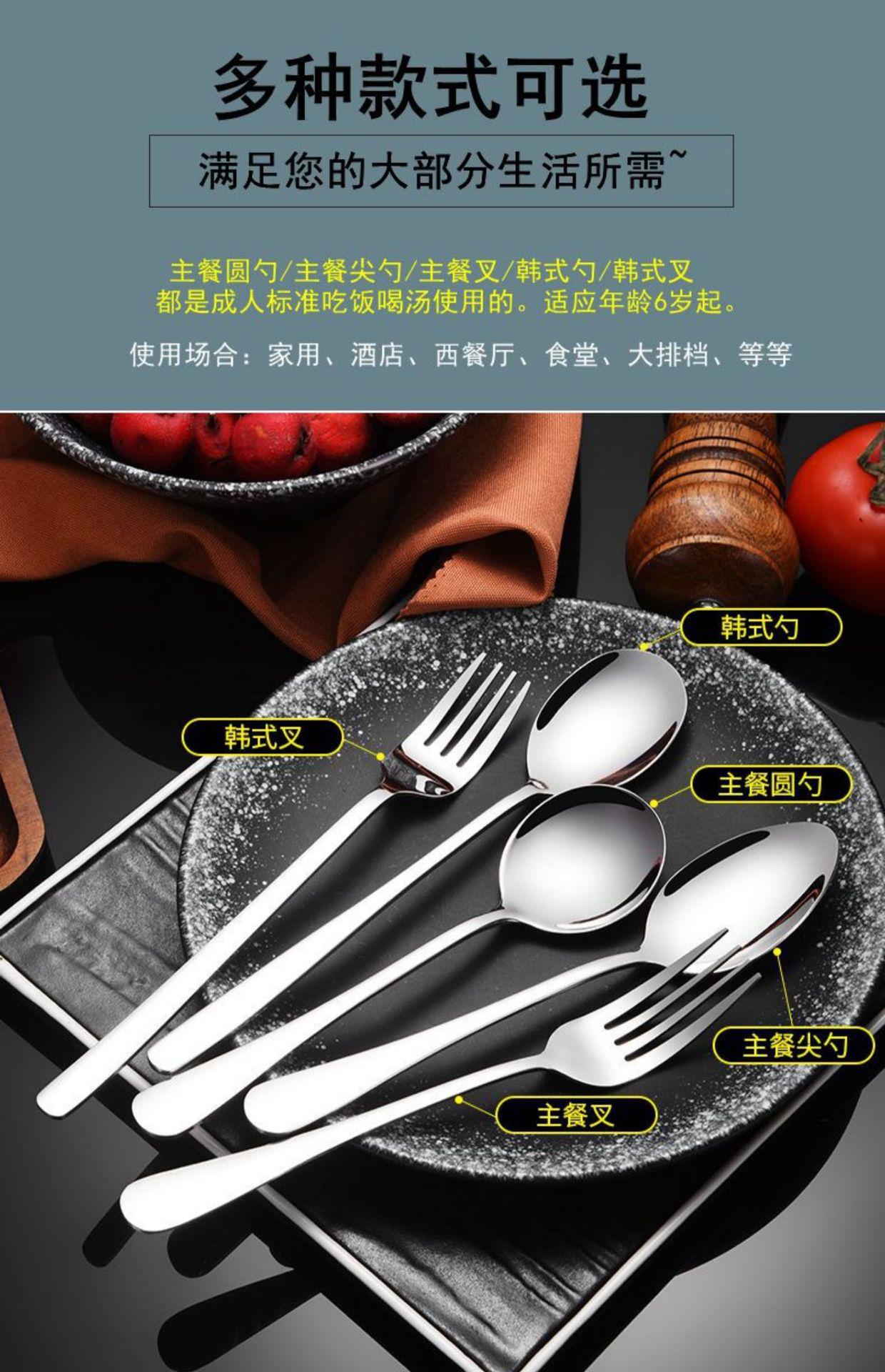 5 main serving round spoons (304 steel), 5 main table tip spoons (304 steel), 5 main forks (304 steel), 5 kore...
