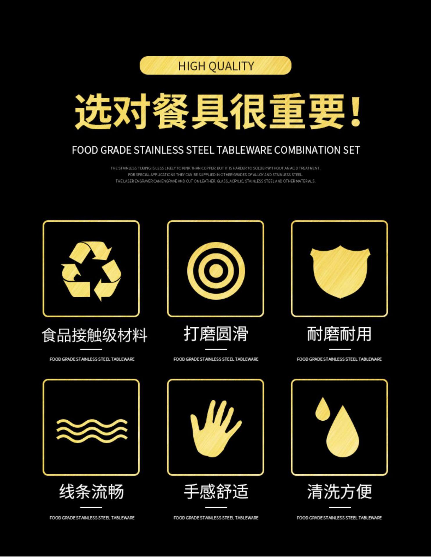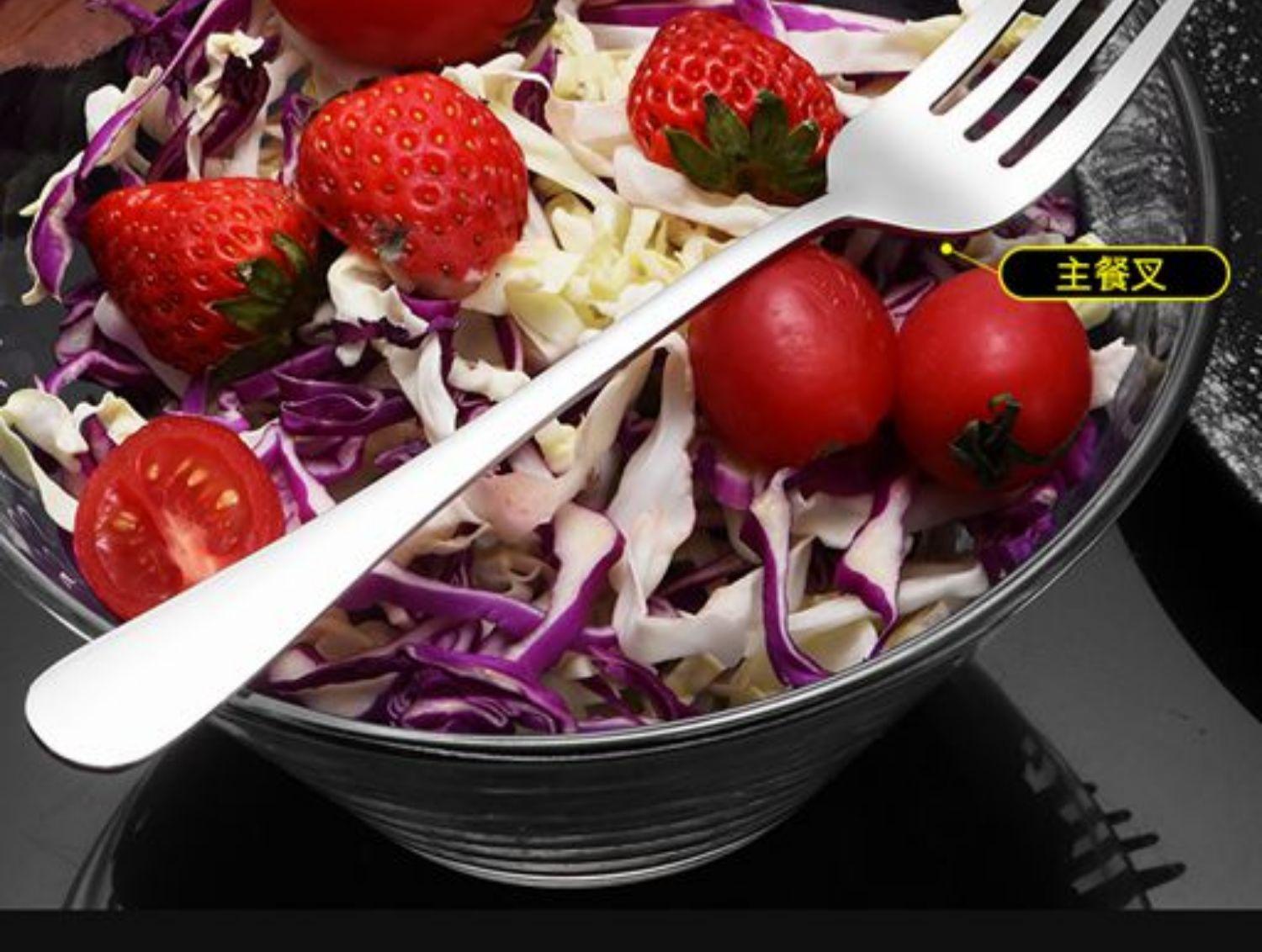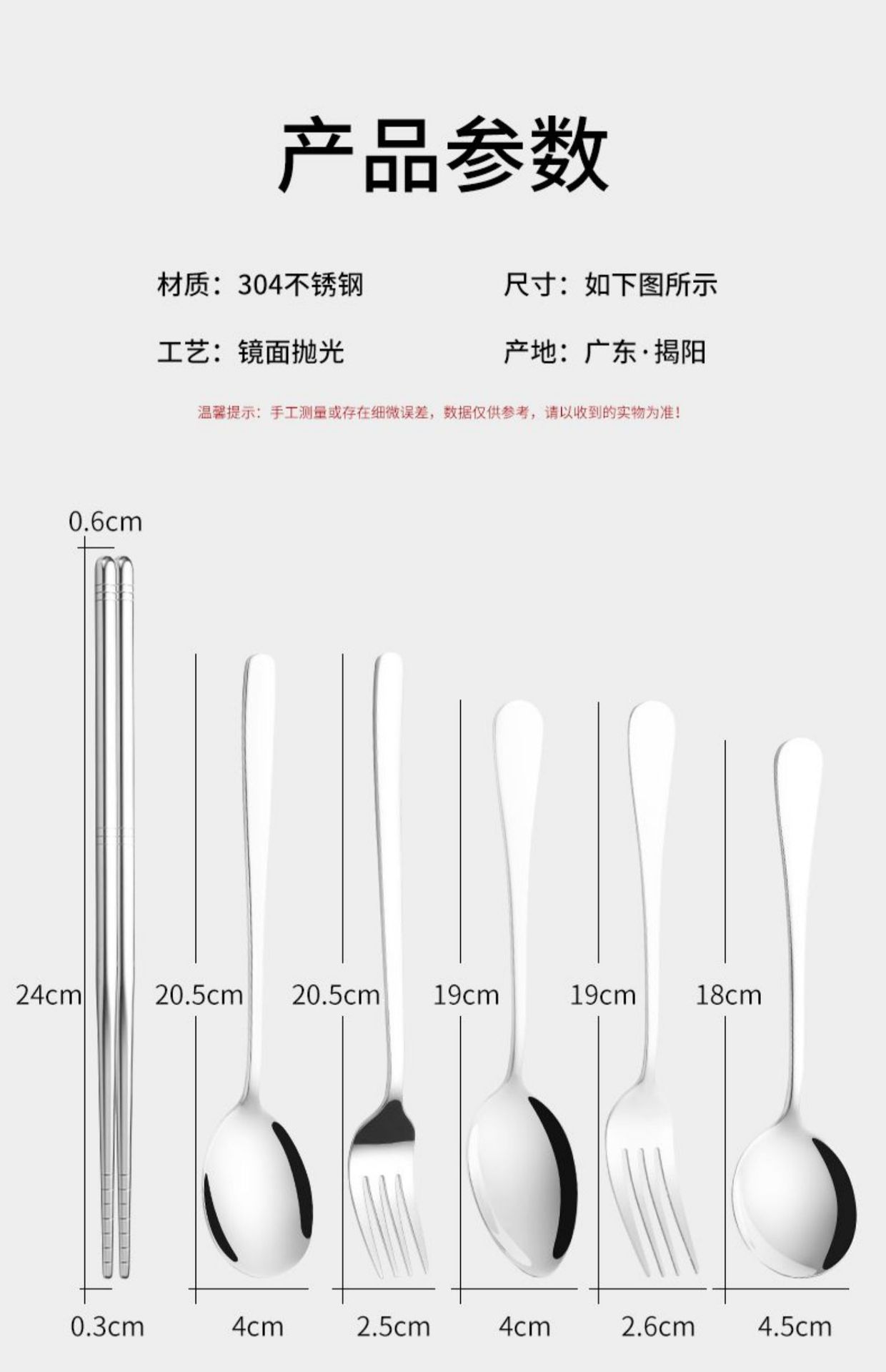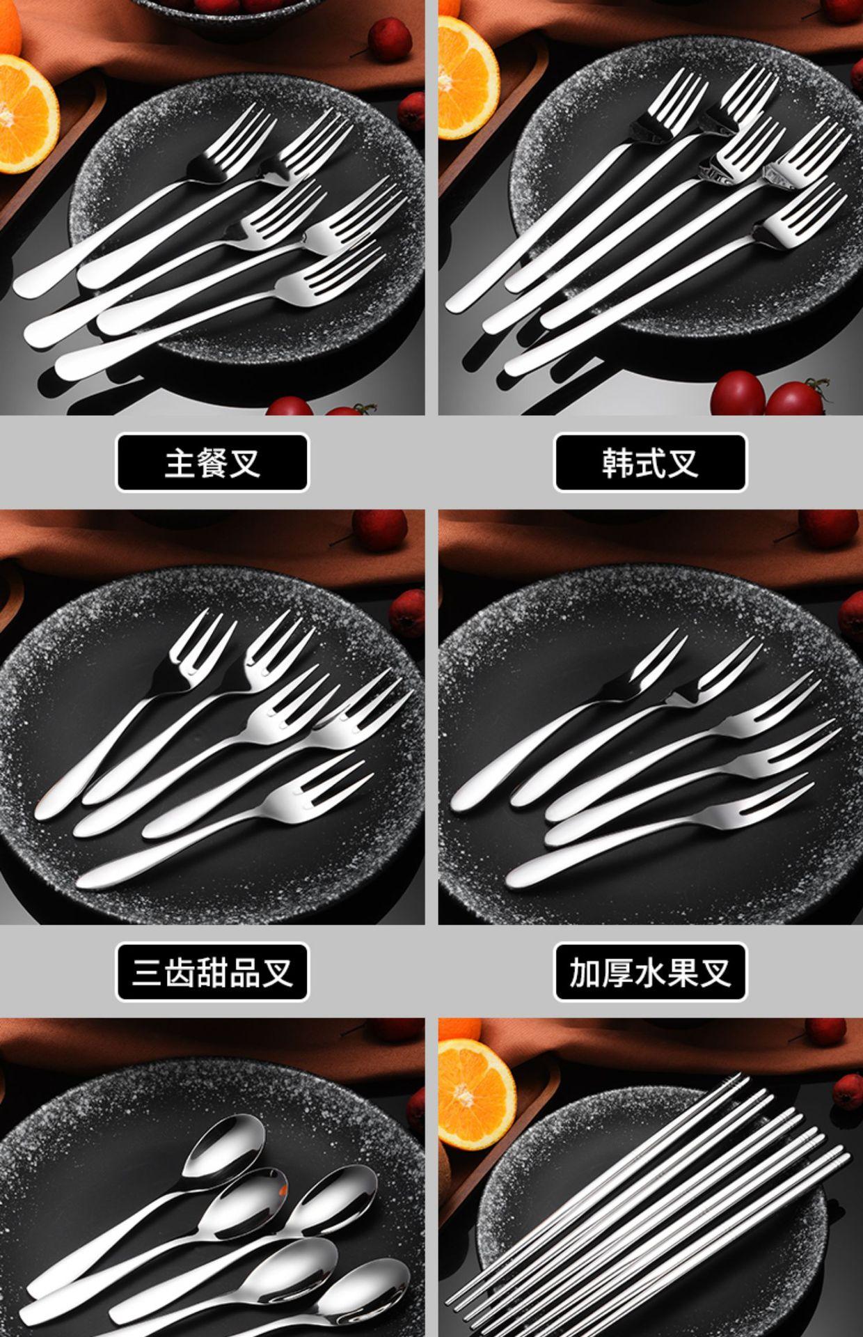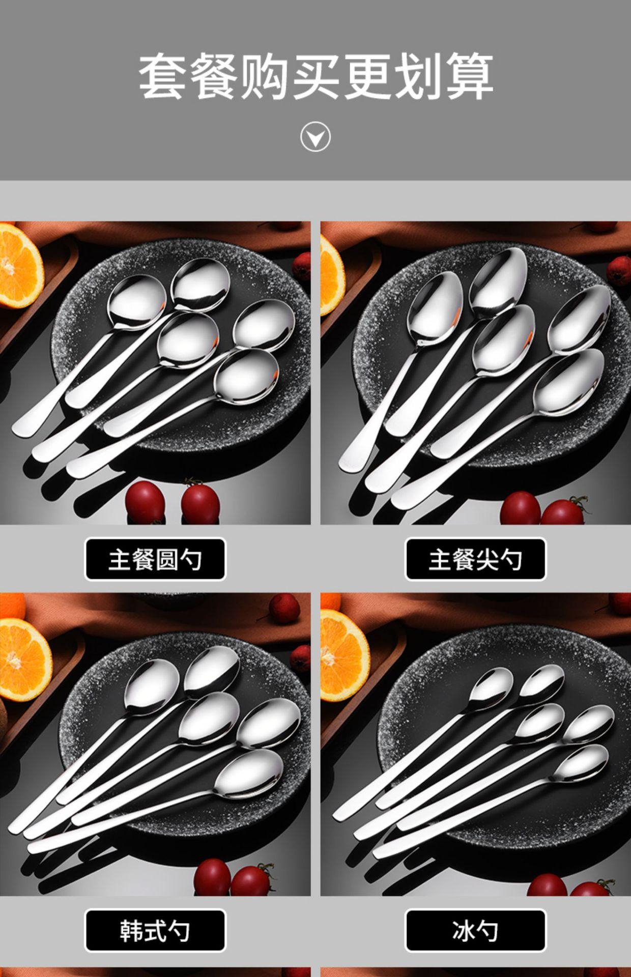 5 main serving round spoons (304 steel), 5 main table tip spoons (304 steel), 5 main forks (304 steel), 5 kore...