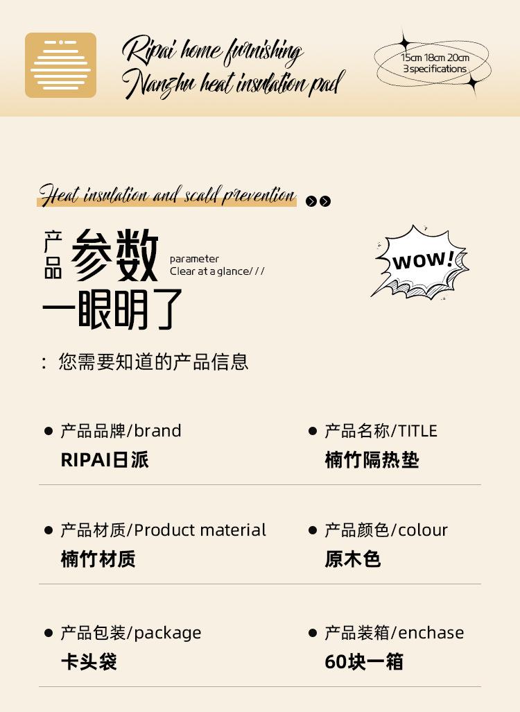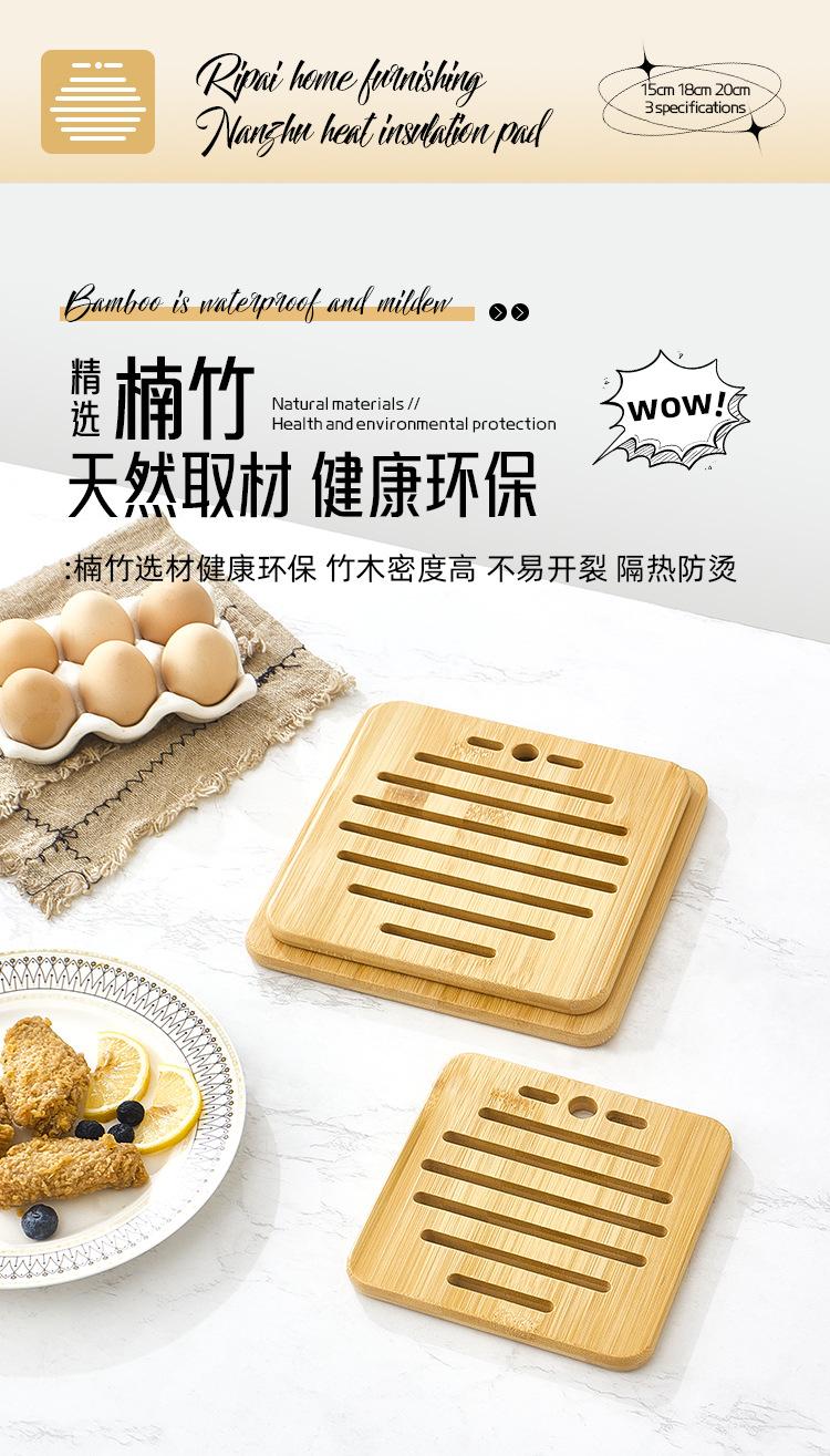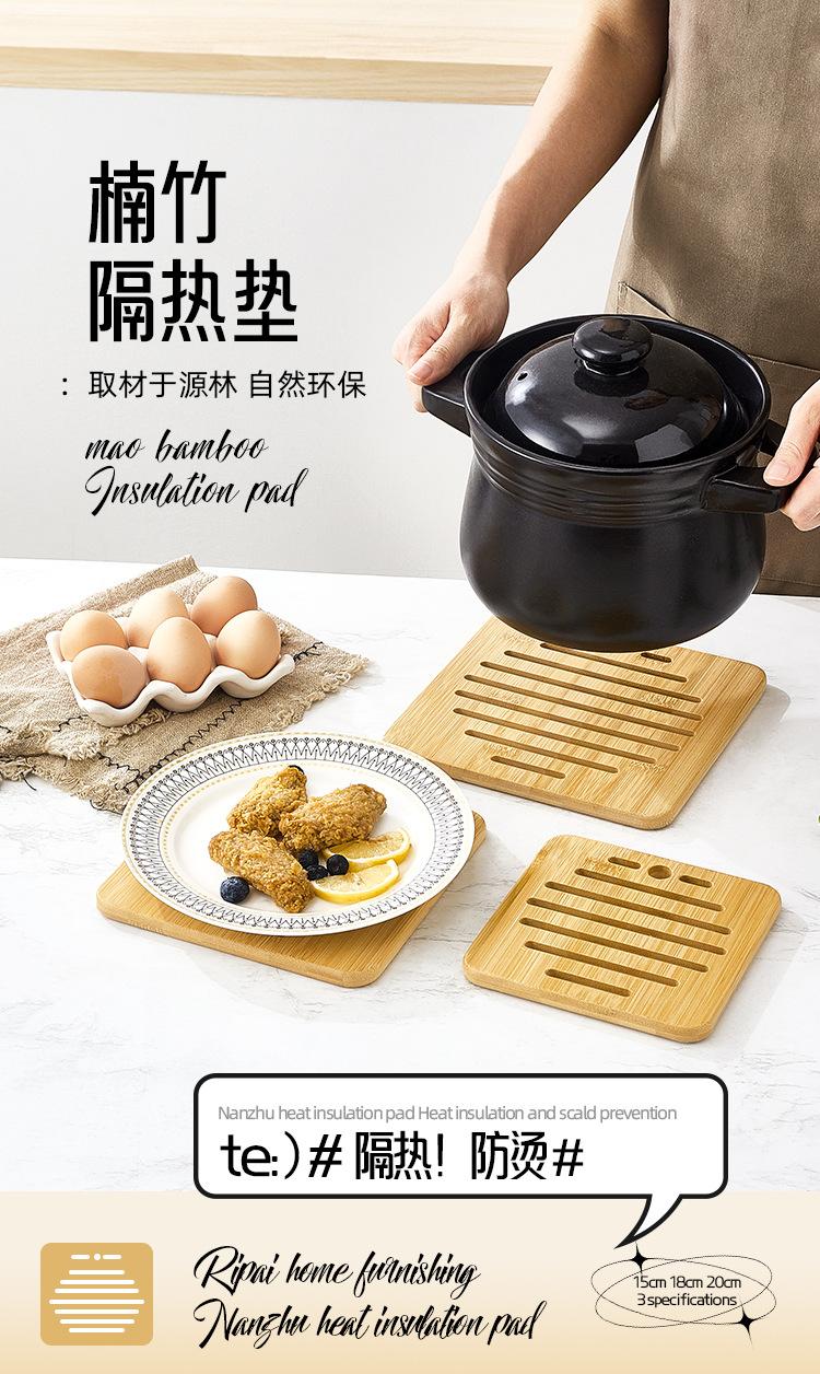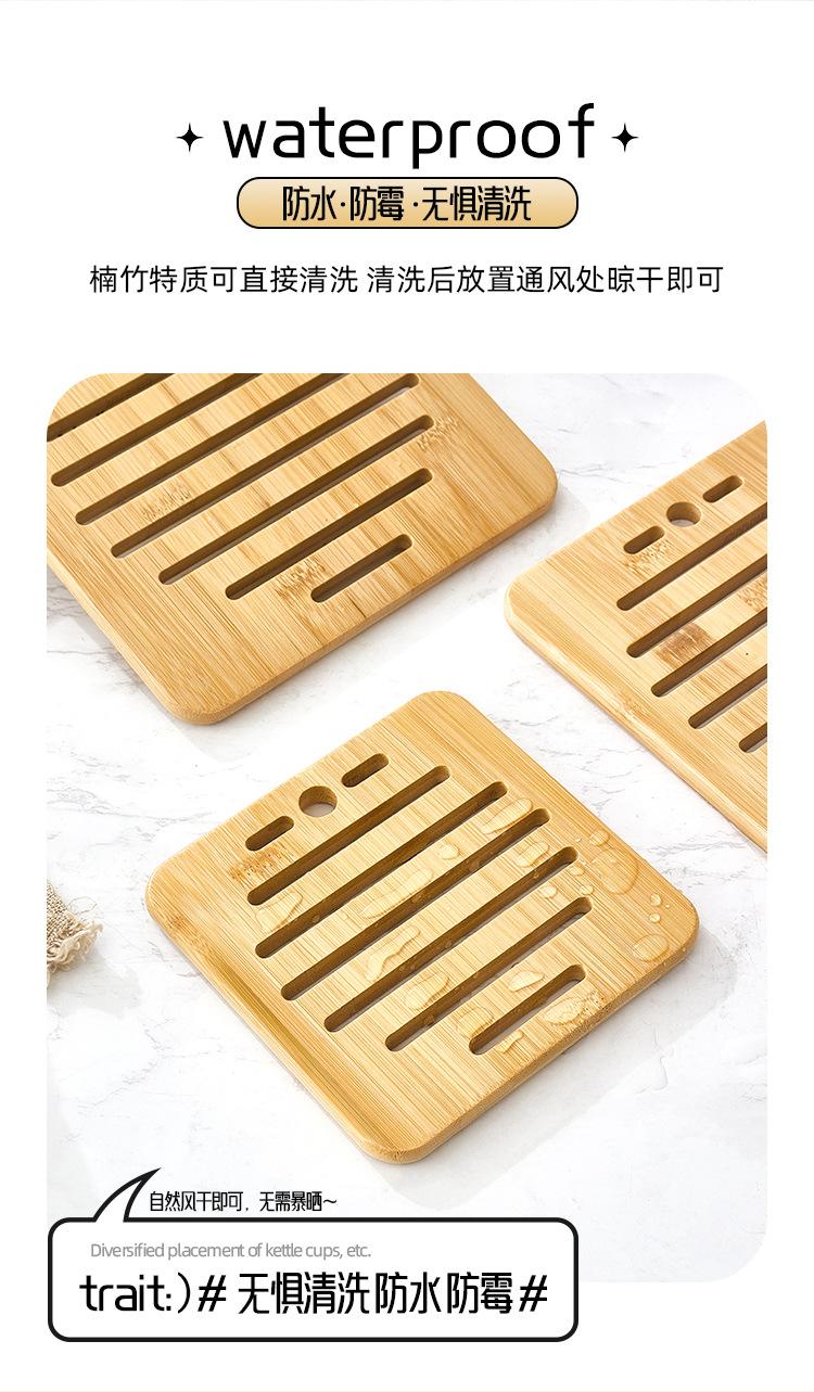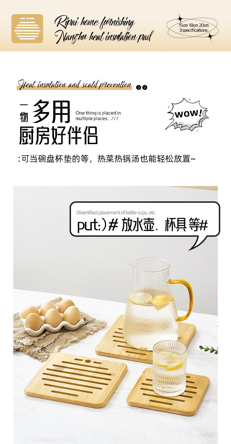 Posavasos cuadrado de bambú con aislamiento térmico, tapete para ollas, tapete de madera para cocina, mesa de comedor, tapete aislante térmico, tapete antiescaldamiento para cuencos de bambú