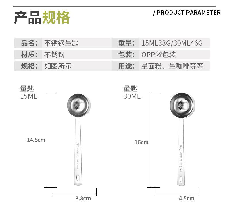 Cocina acero inoxidable 304 para hornear mango largo 15ml 30ML cuchara medidora cuchara medidora cuchara para leche en polvo cuchara para café utensilios de cocina