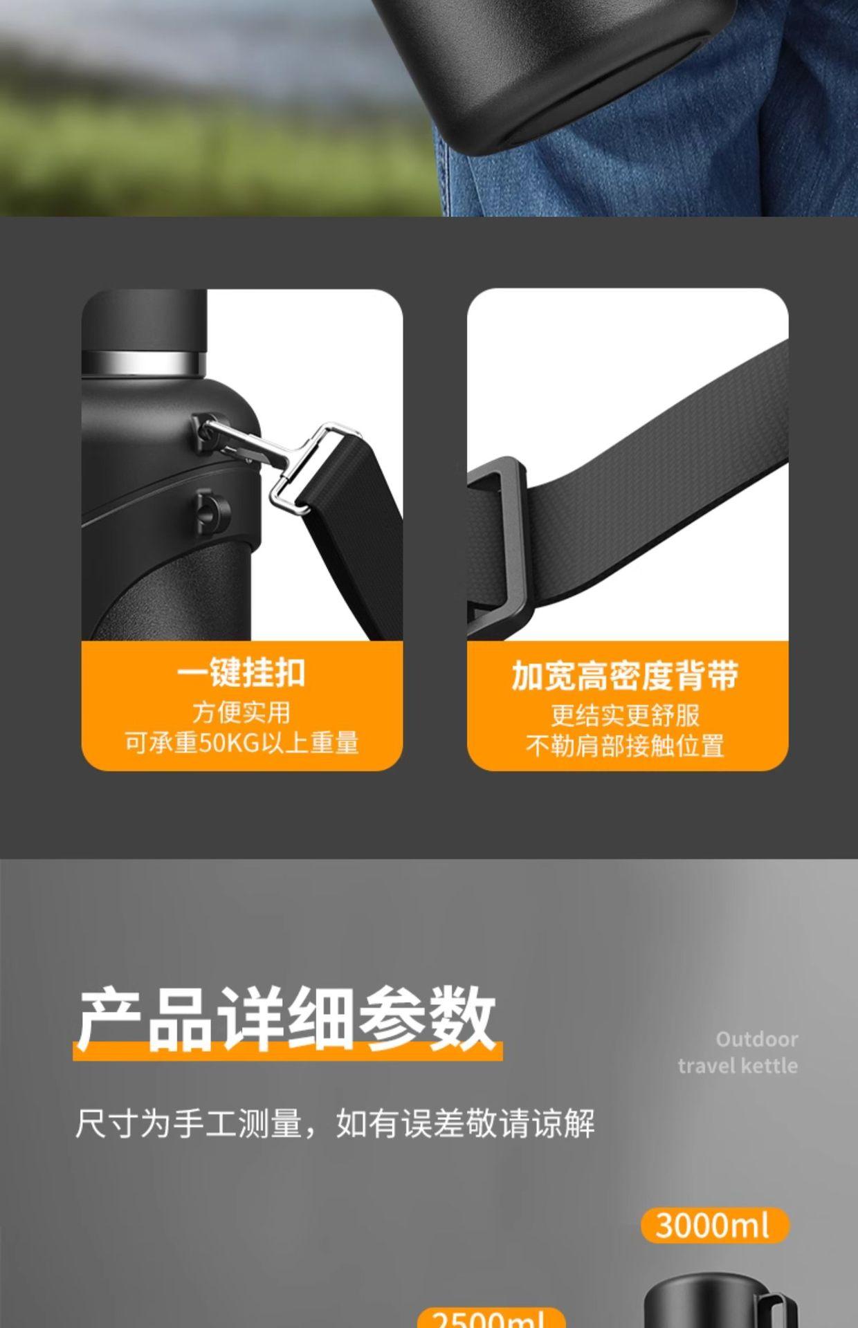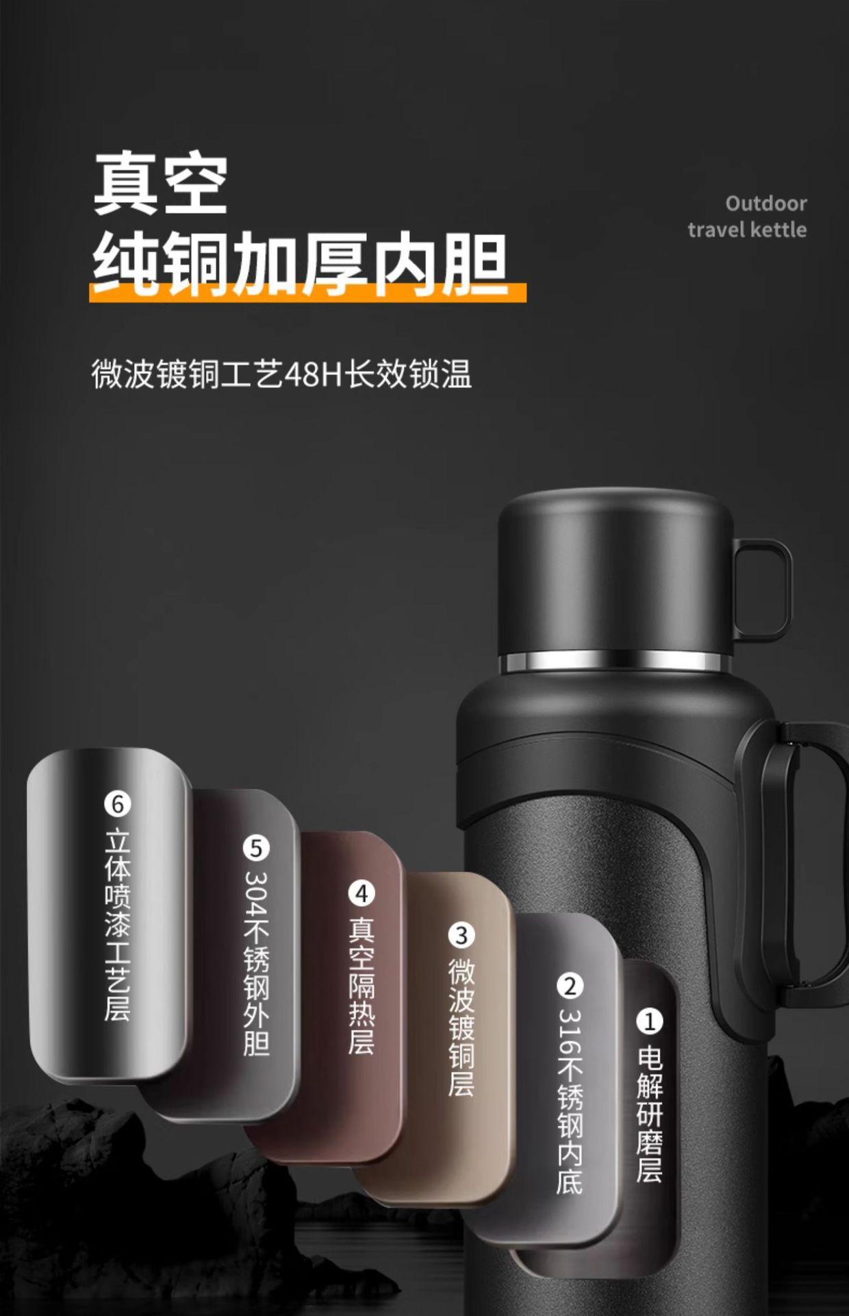Termo grande de gran capacidad para exteriores, de acero inoxidable 316, botella de agua caliente portátil para coche, para viajes en casa, 3 l