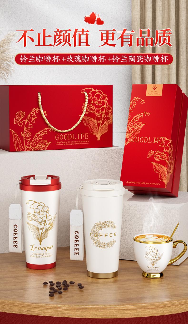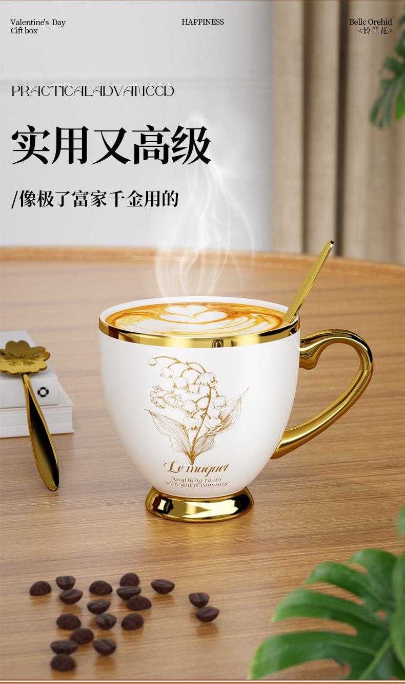 Rose coffee cup apricot white, Rose coffee cup red, Lily of the valley coffee cup apricot white, Lily of the v...