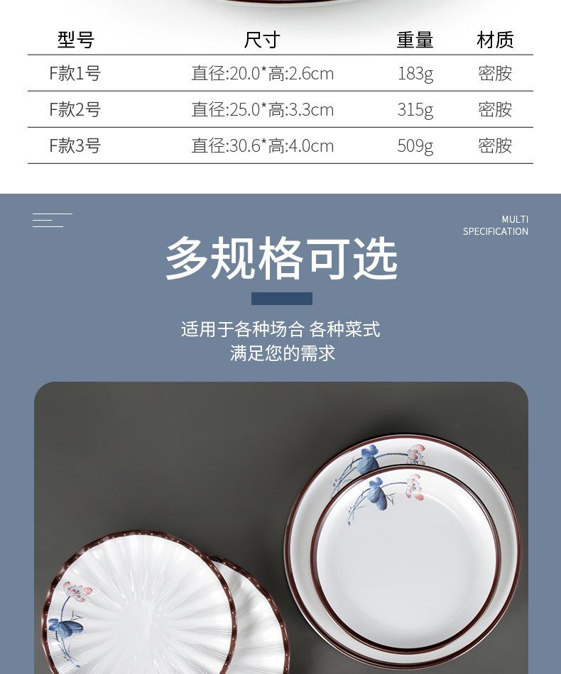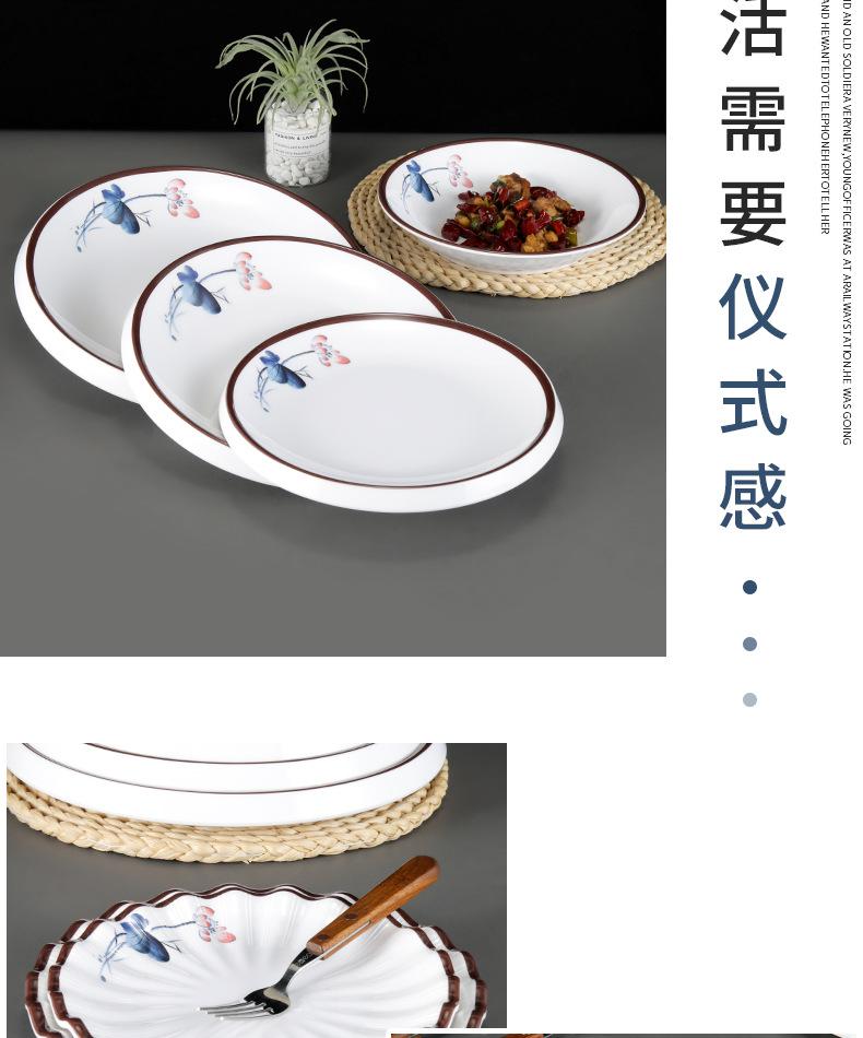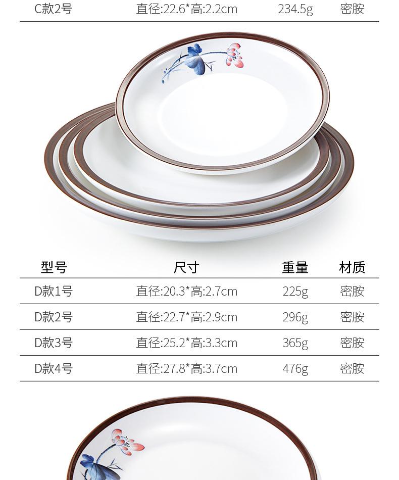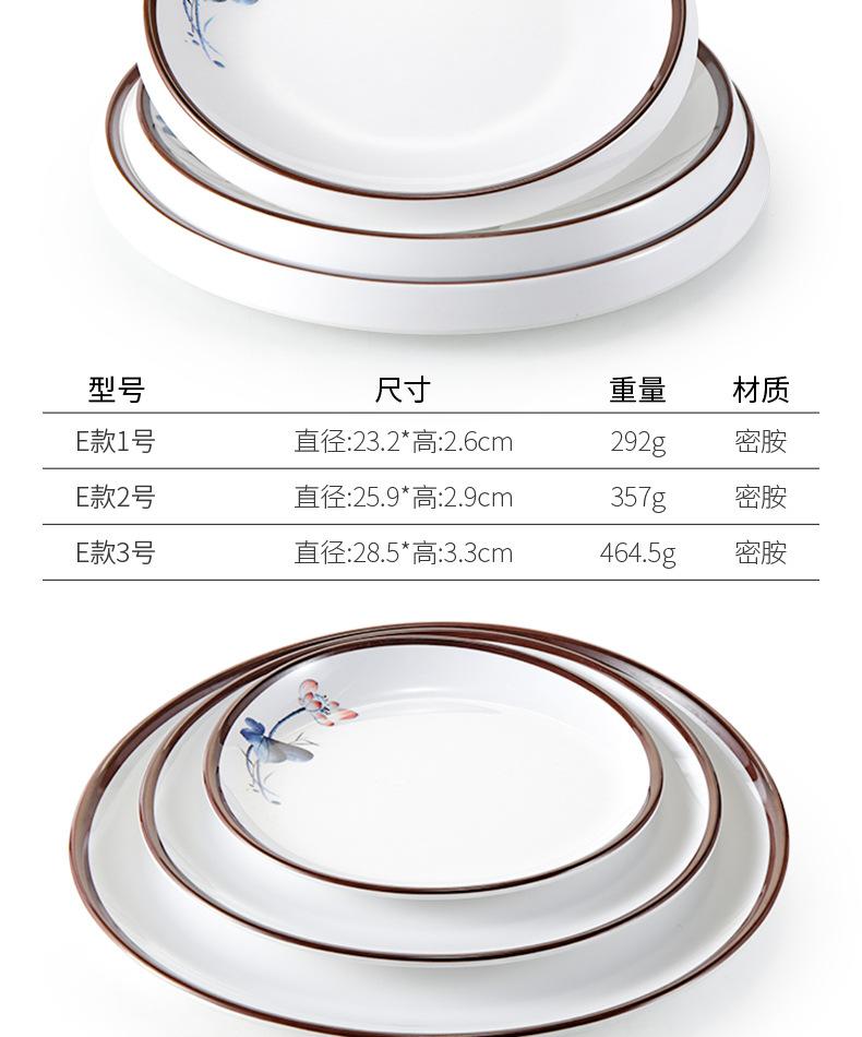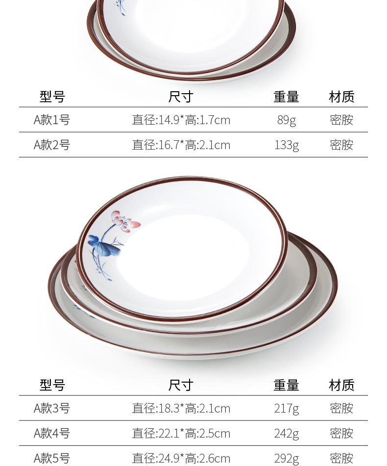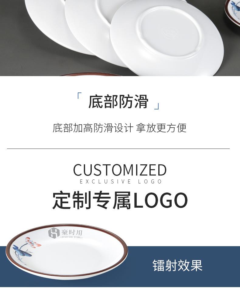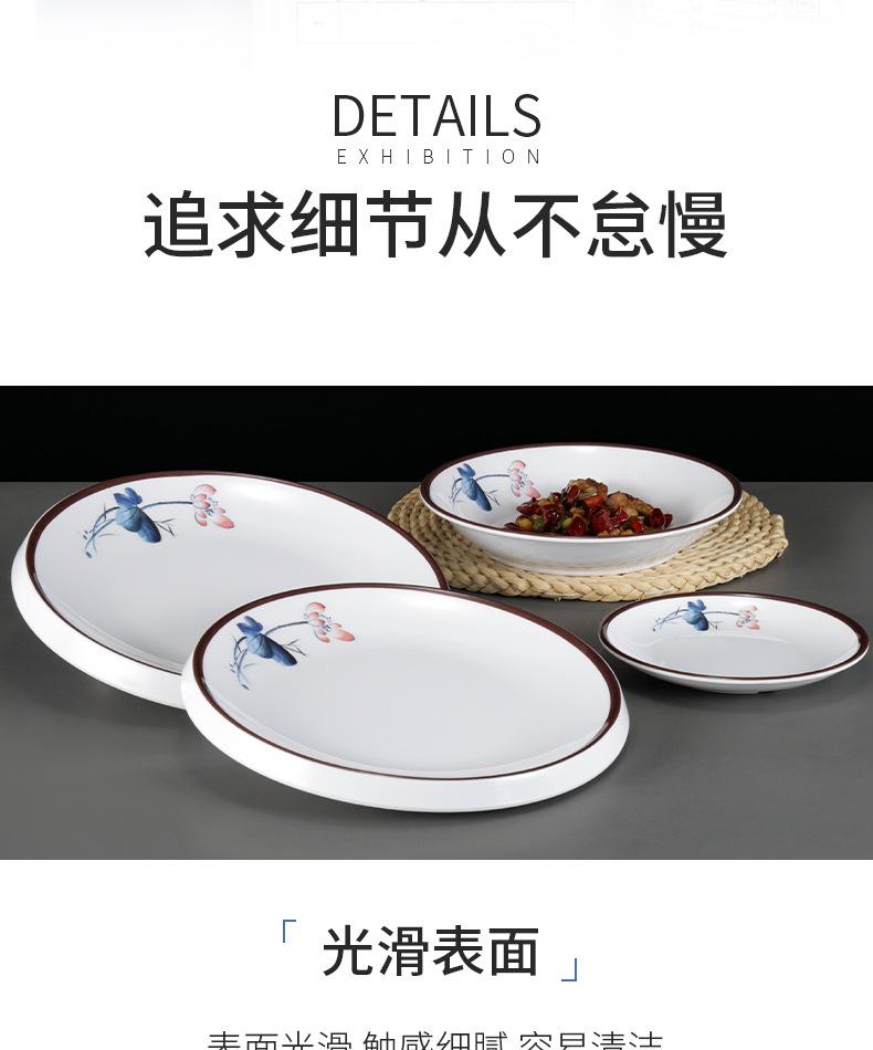 Plato de restaurante de melamina imitación porcelana, plato de disco para hotel, plato de hueso redondo de plástico, plato frío para restaurante, plato plano, vajilla comercial