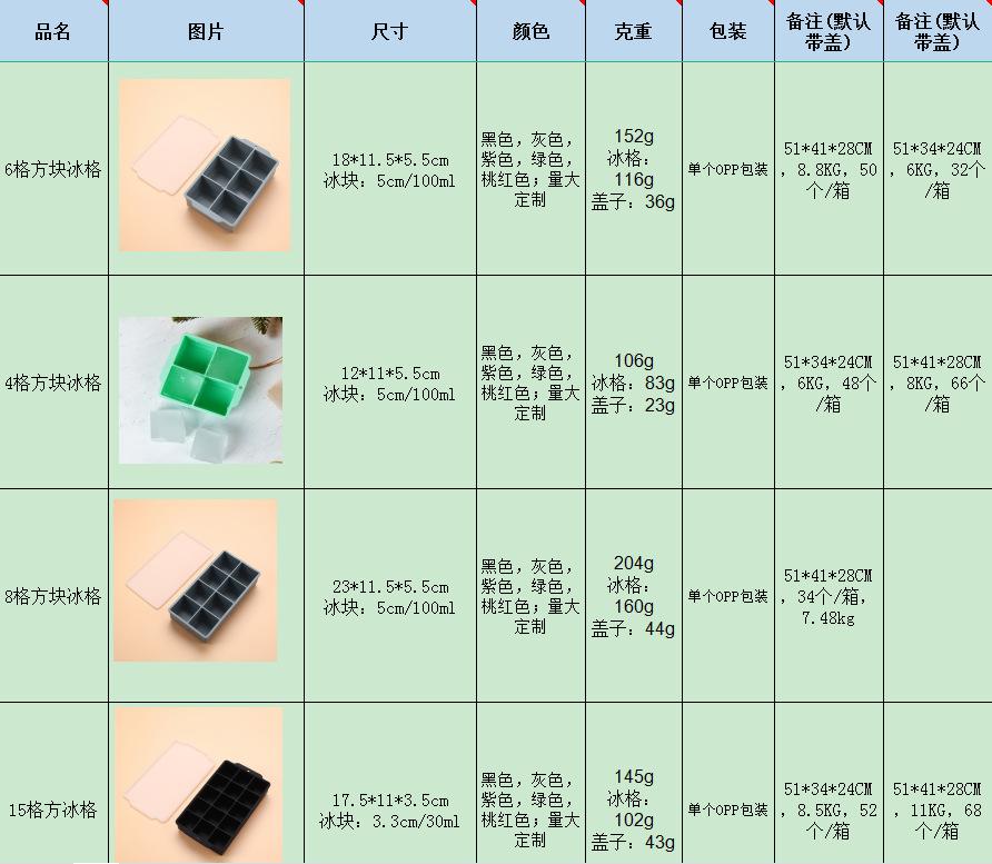 4-compartment ice tray (with transparent lid), 6-compartment ice tray (with transparent lid), 8-compartment ic...