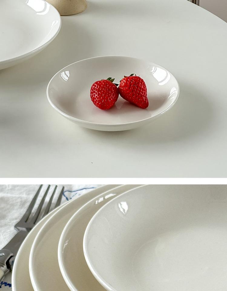 Plato plano de cerámica blanca pura, plato de comida china para el hogar, plato de comida occidental, plato de carne, plato de postre para el té de la tarde, plato de fruta