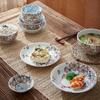 Platos de Flores Ahumadas Moradas Estilo Japonés Alto Valor de Color Vajilla de Cerámica Bajo Esmalte Tazón Plato Tazón de Sopa Doméstico Vajilla de Cerámica Binaural