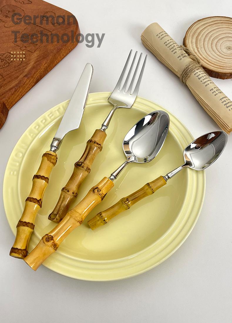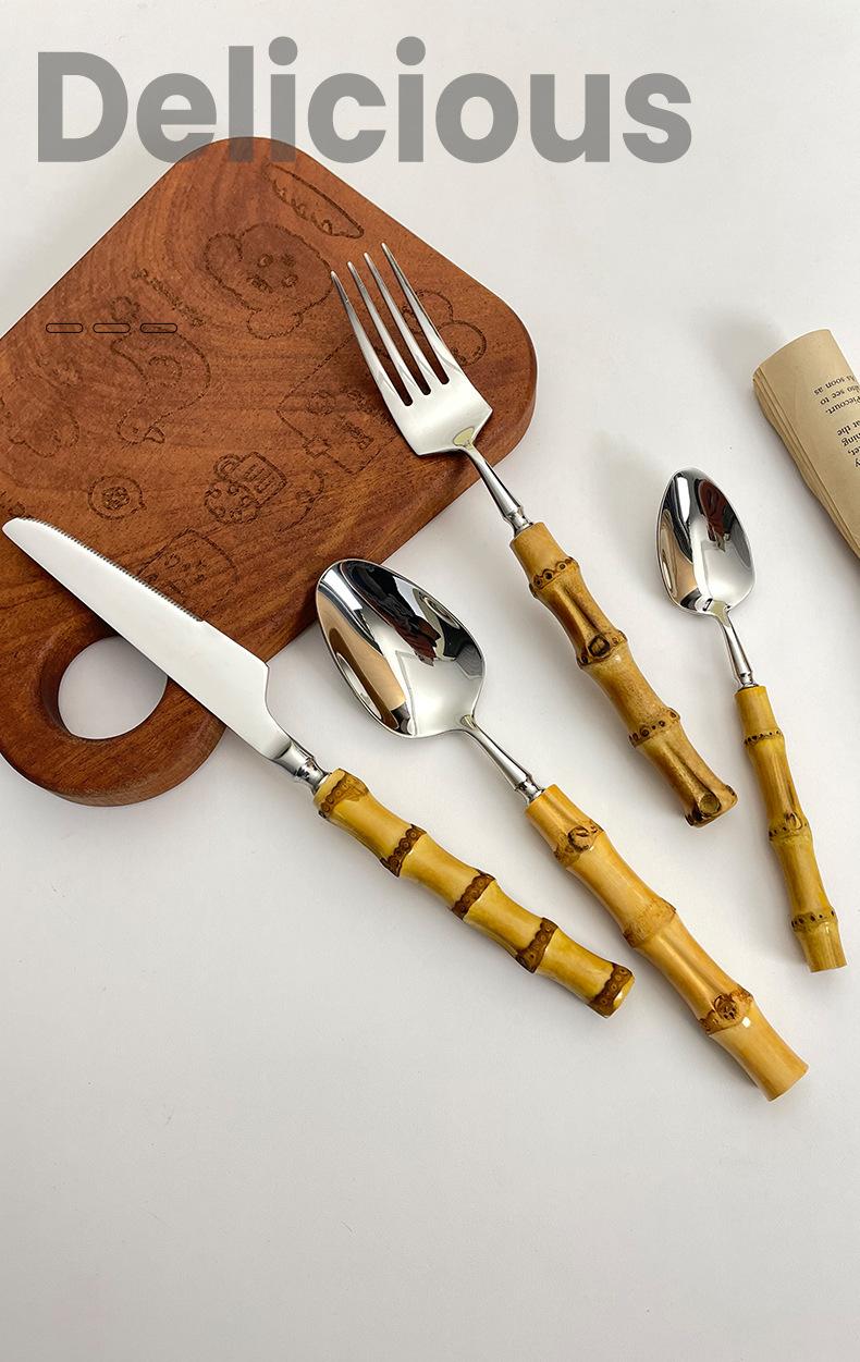 [tax-included price] bamboo handle table knife, [tax-included price] bamboo handle dinner fork, [tax-included ...