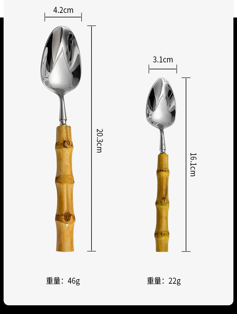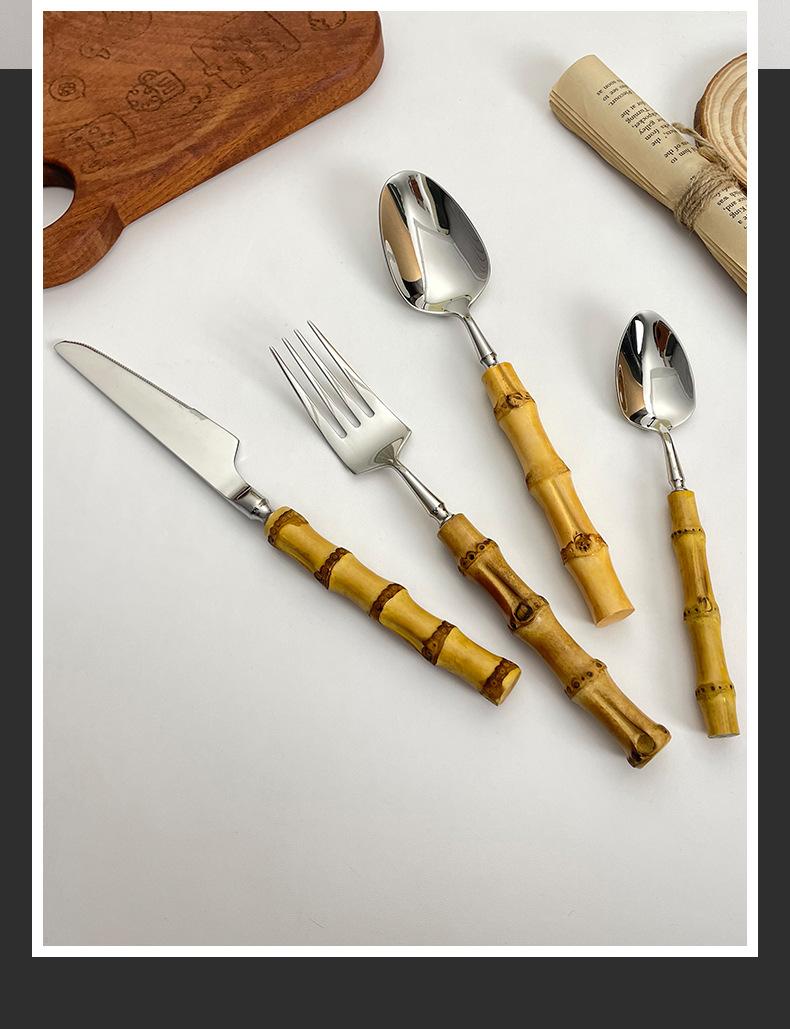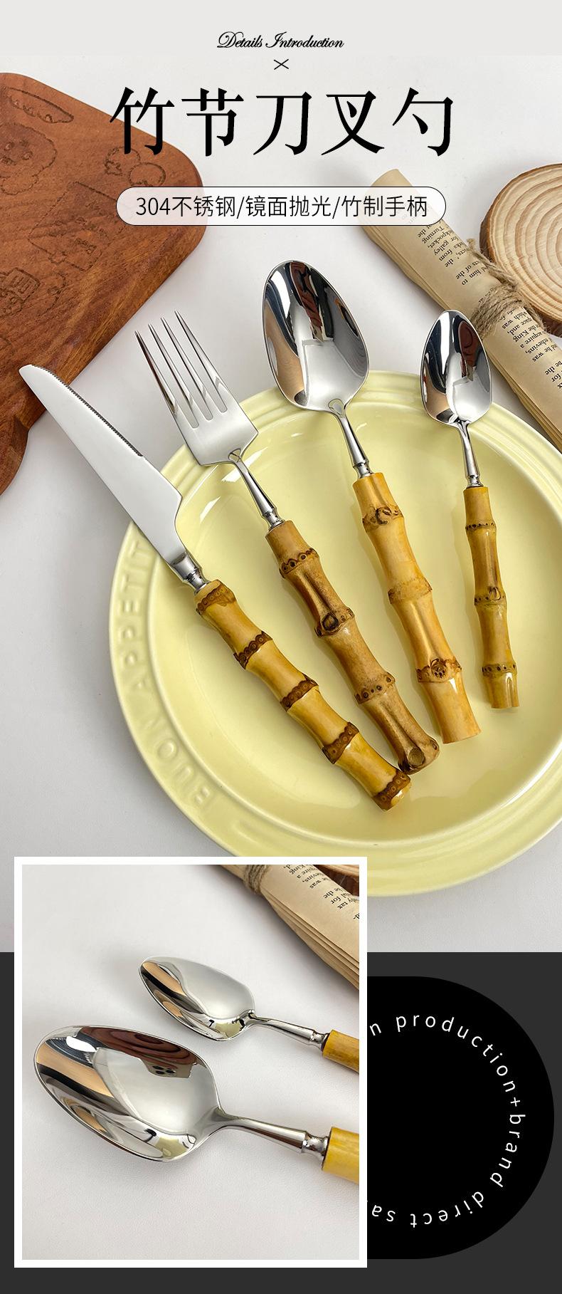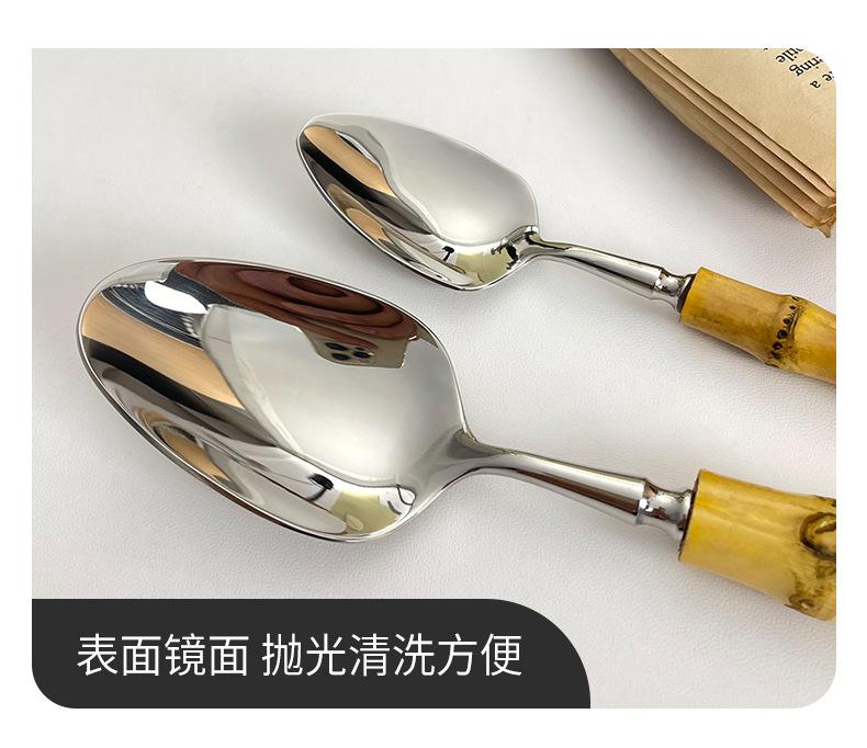 Cuchillo y tenedor para carne occidental creativo de acero inoxidable 304 con mango de bambú macizo, cuchara, vajilla, cuchara de postre, regalo, cuchara y tenedor