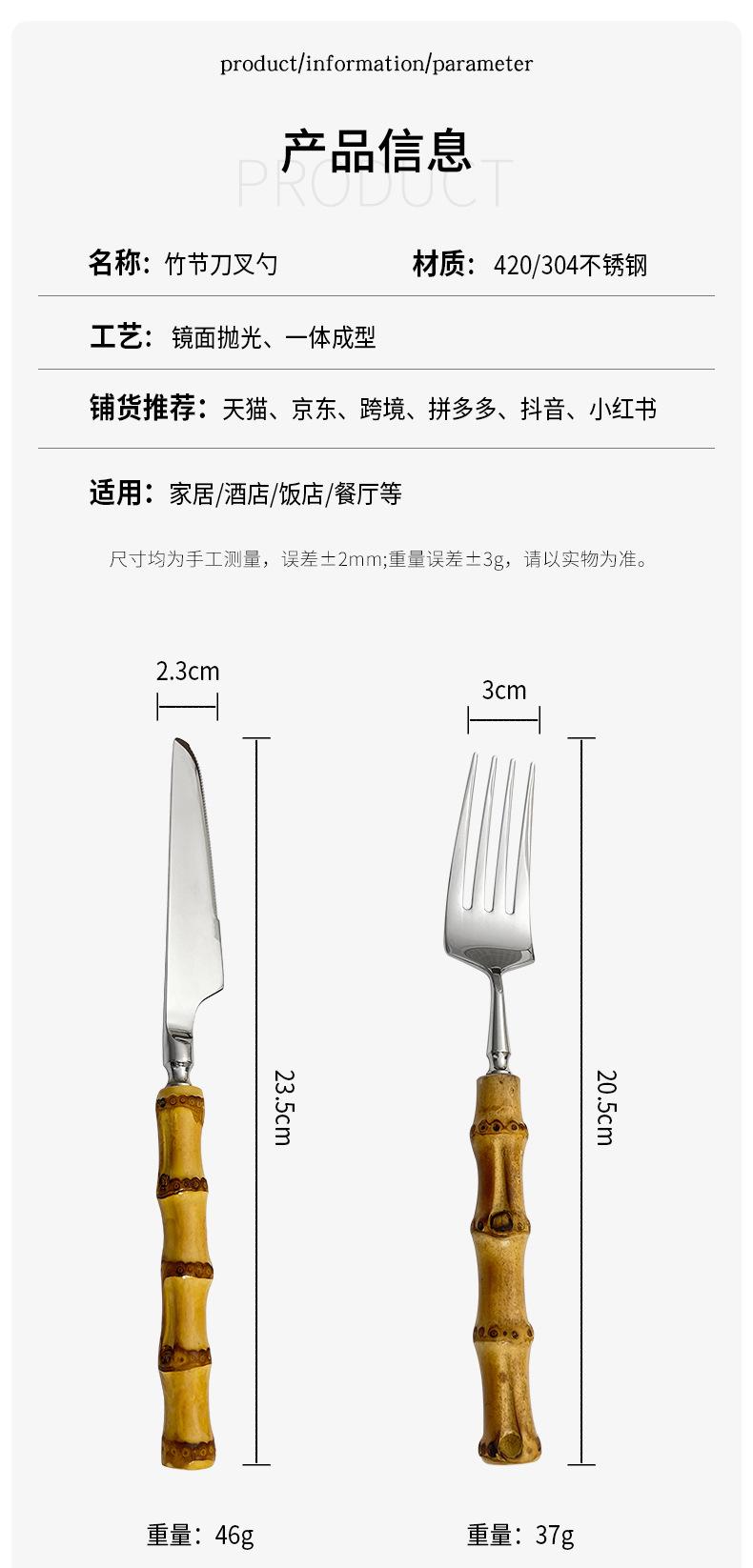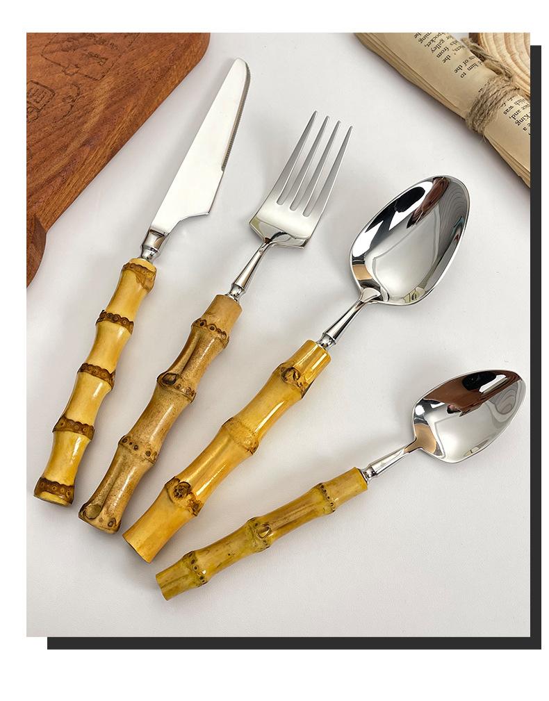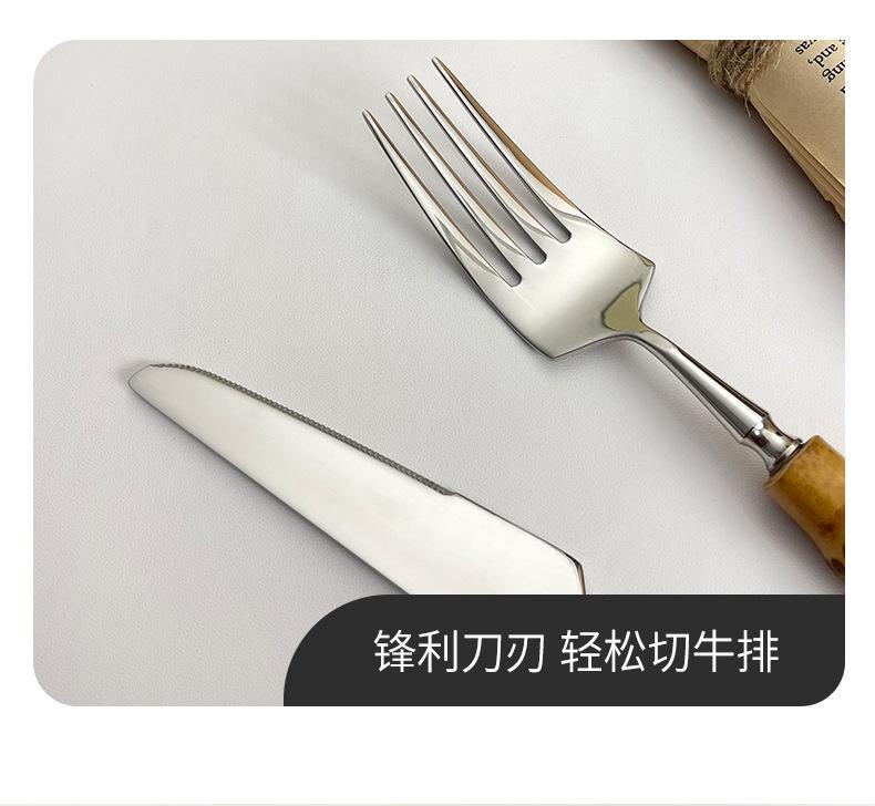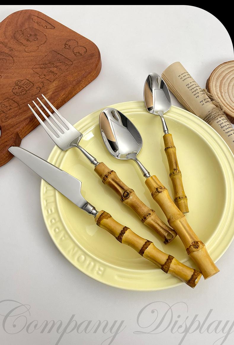 Cuchillo y tenedor para carne occidental creativo de acero inoxidable 304 con mango de bambú macizo, cuchara, vajilla, cuchara de postre, regalo, cuchara y tenedor