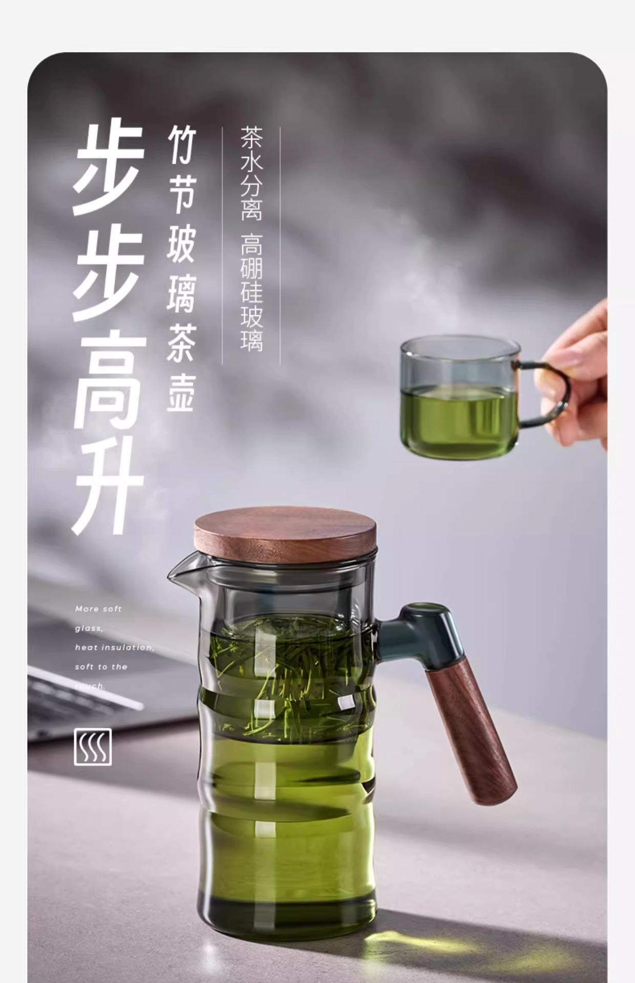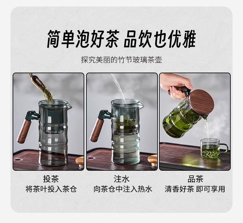 Compra Tetera de Gran Capacidad para Preparar Té Doméstica de Alta Gama Tetera de Bambú Separación de Agua y Té Tetera de Vidrio de Borosilicato Alto Taza de Té al por mayor en Joom.pro