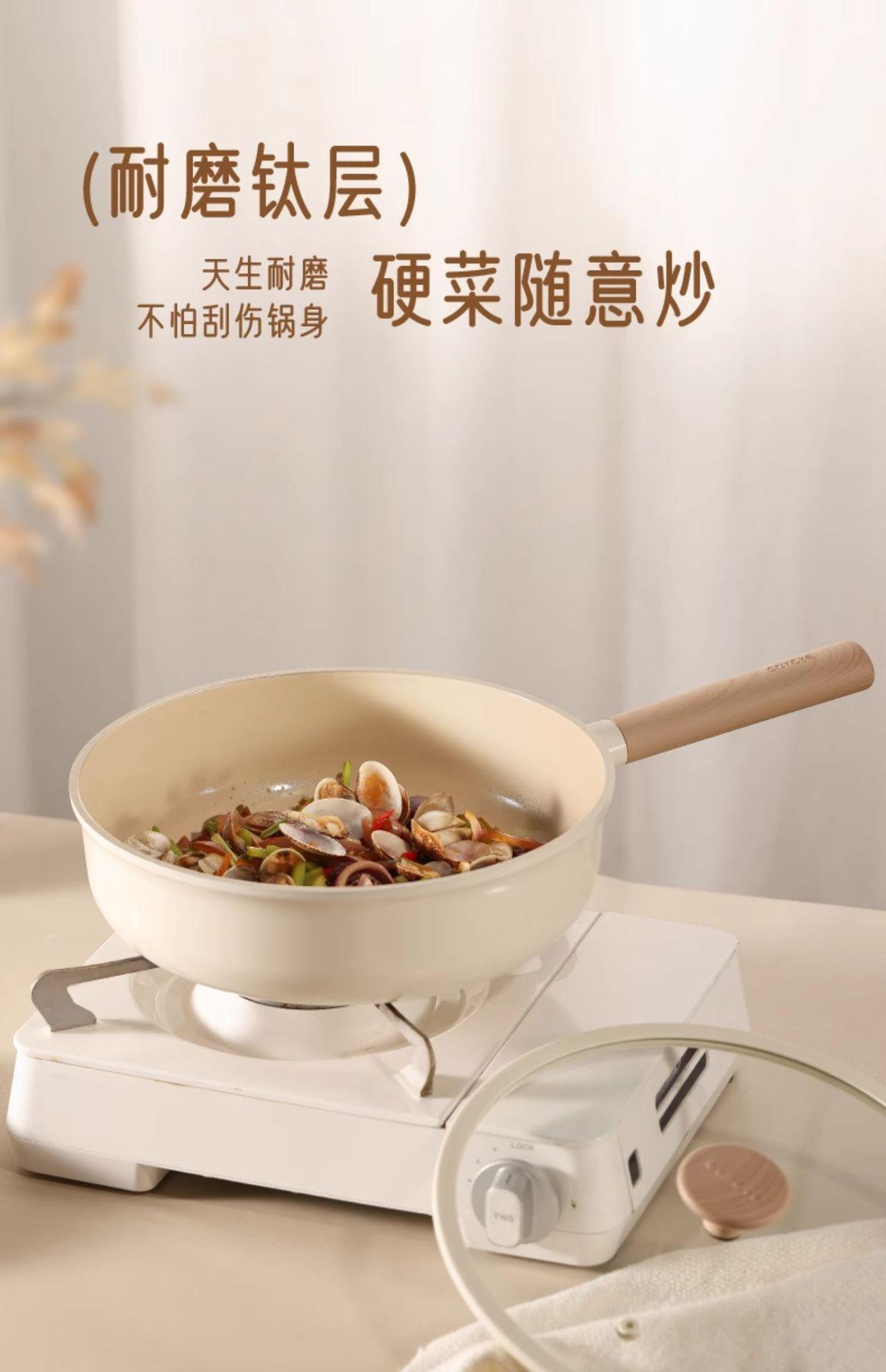 Wok de cerámica de titanio, sartén antiadherente para el hogar, wok de fondo plano, sartén antiadherente, cocina de inducción, estufa de gas