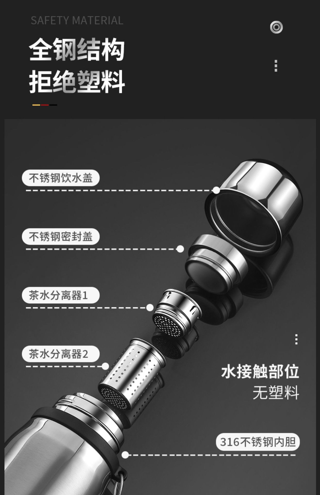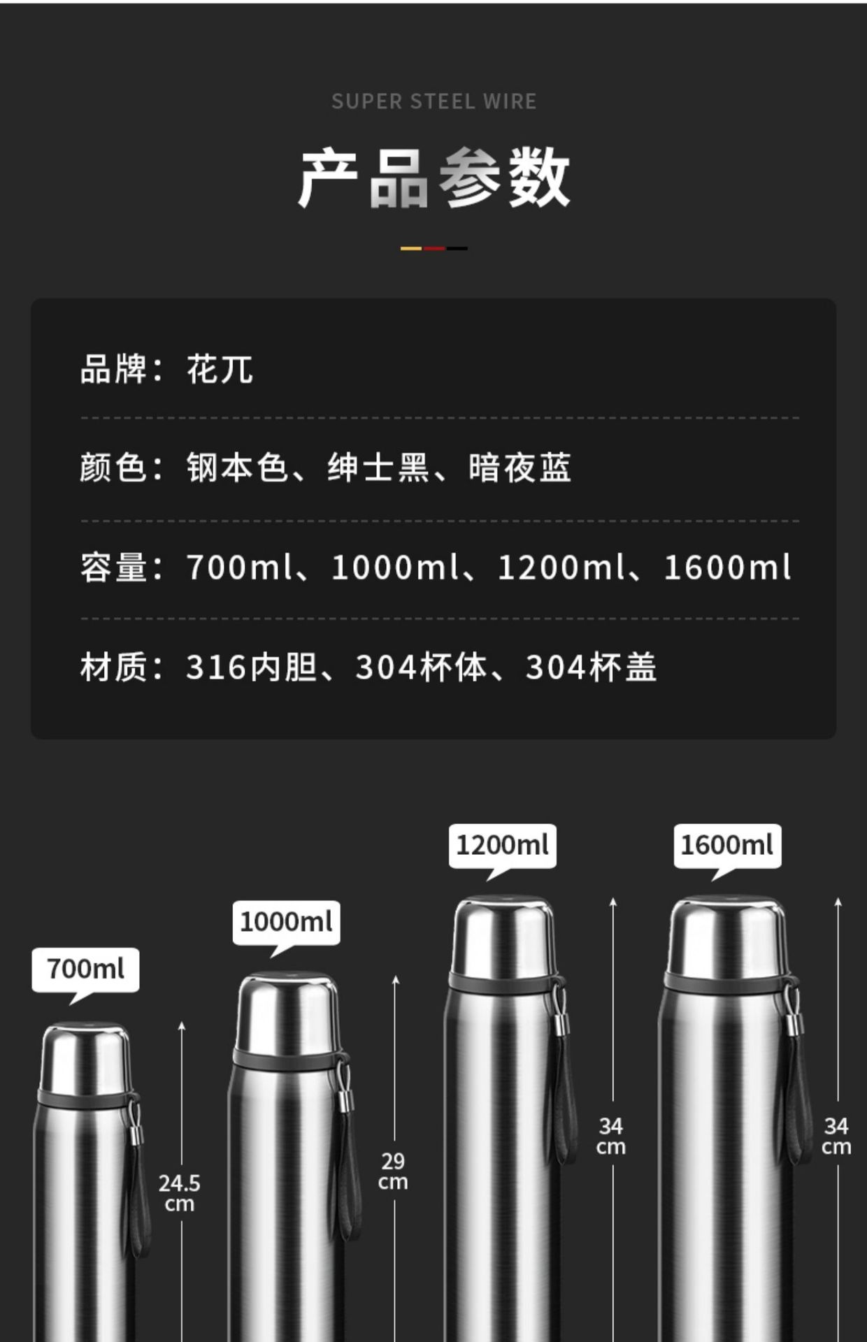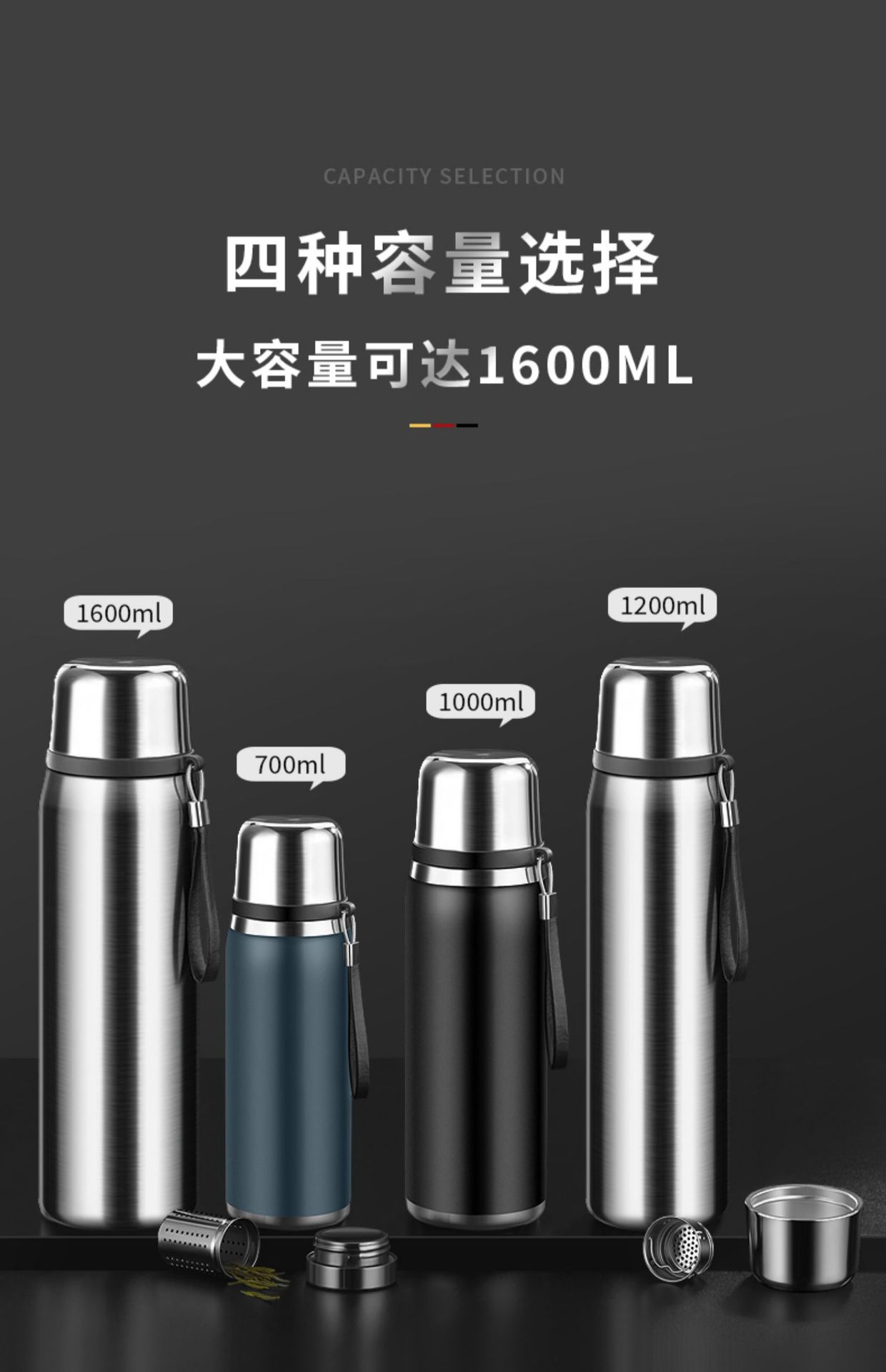 Gentleman black 316 material 700ml, Steel color 316 material 700ml, Dark night blue 316 material 700ml, Gentle...