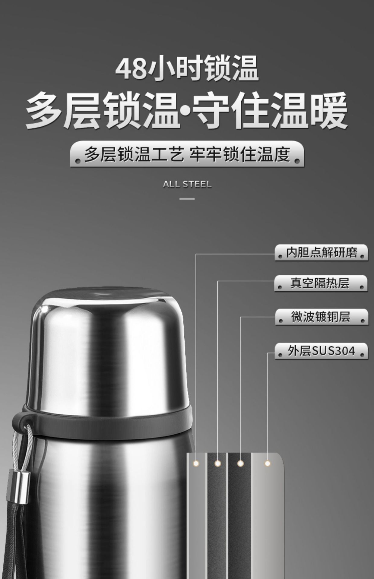 Steel color 316 material 1600ml