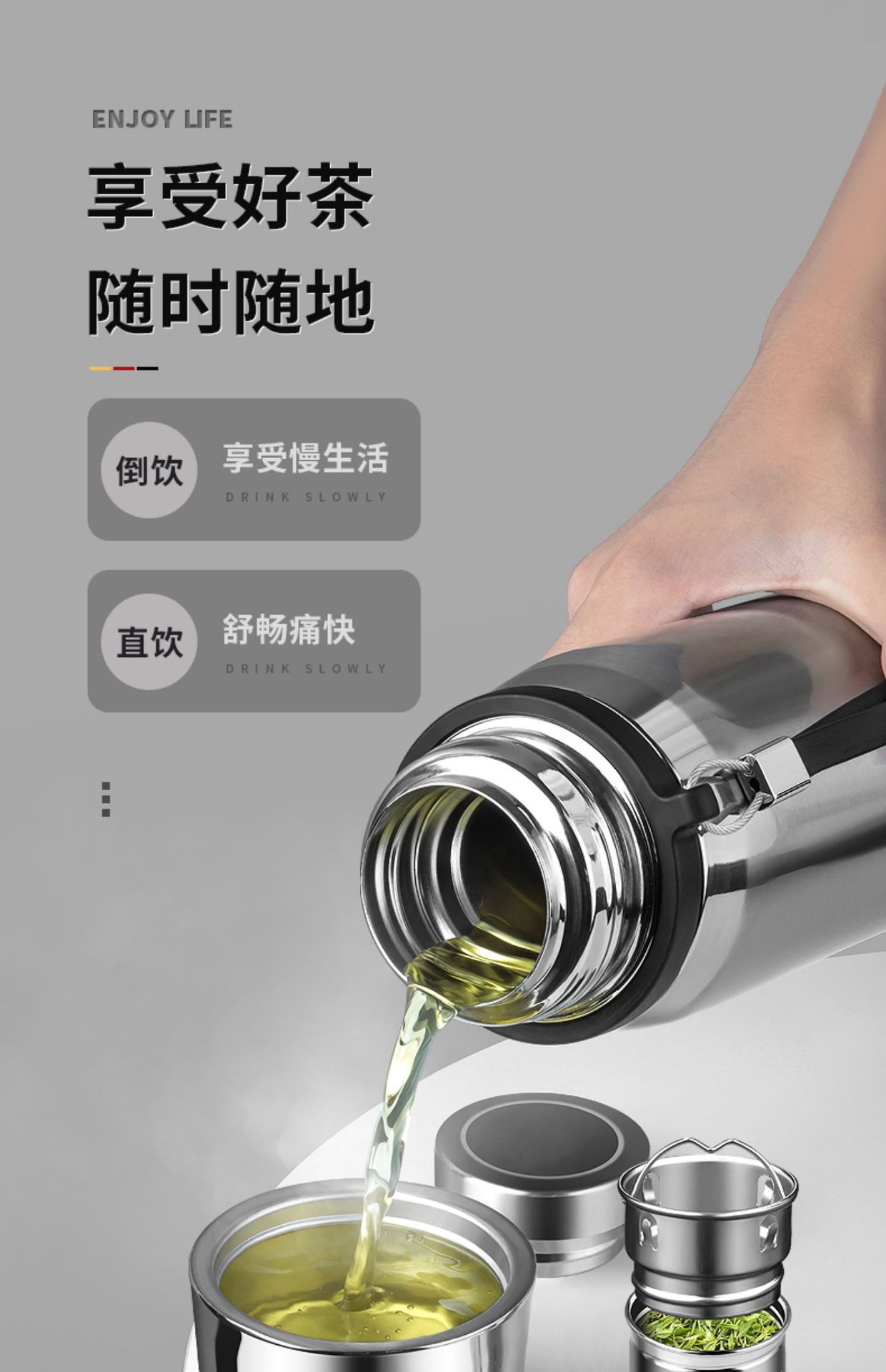 Termo portátil de acero inoxidable 316 para hombres y mujeres, taza de té de gran capacidad, taza de 1000 ml