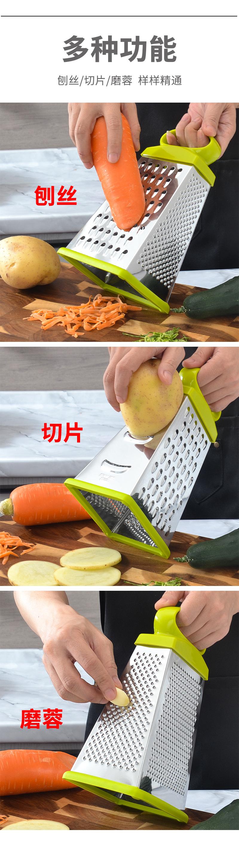 Rallador de verduras de cocina de acero inoxidable transfronterizo, rallador de zanahorias y patatas, toallitas de cepillado multifuncionales de cuatro lados