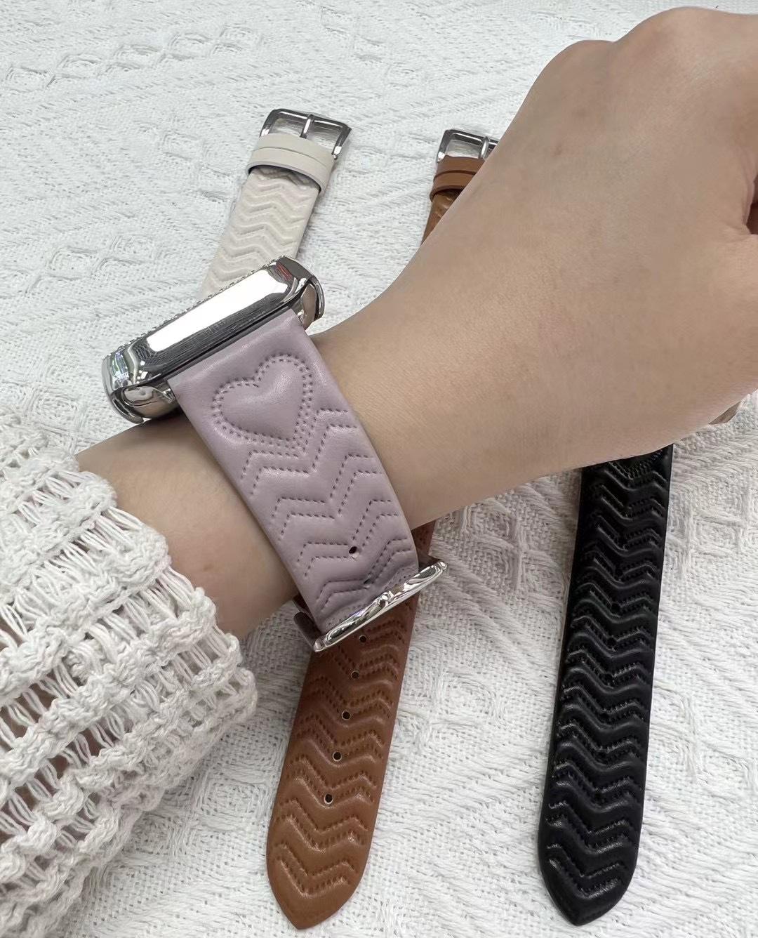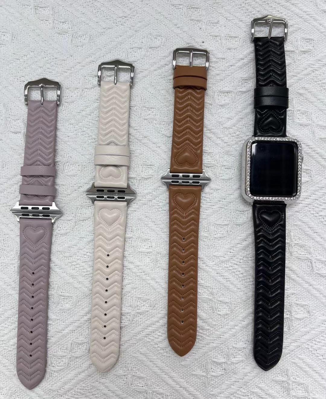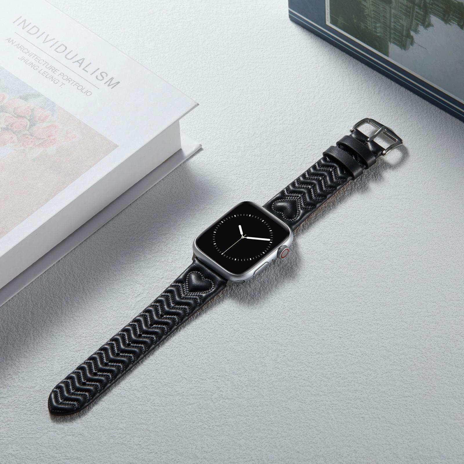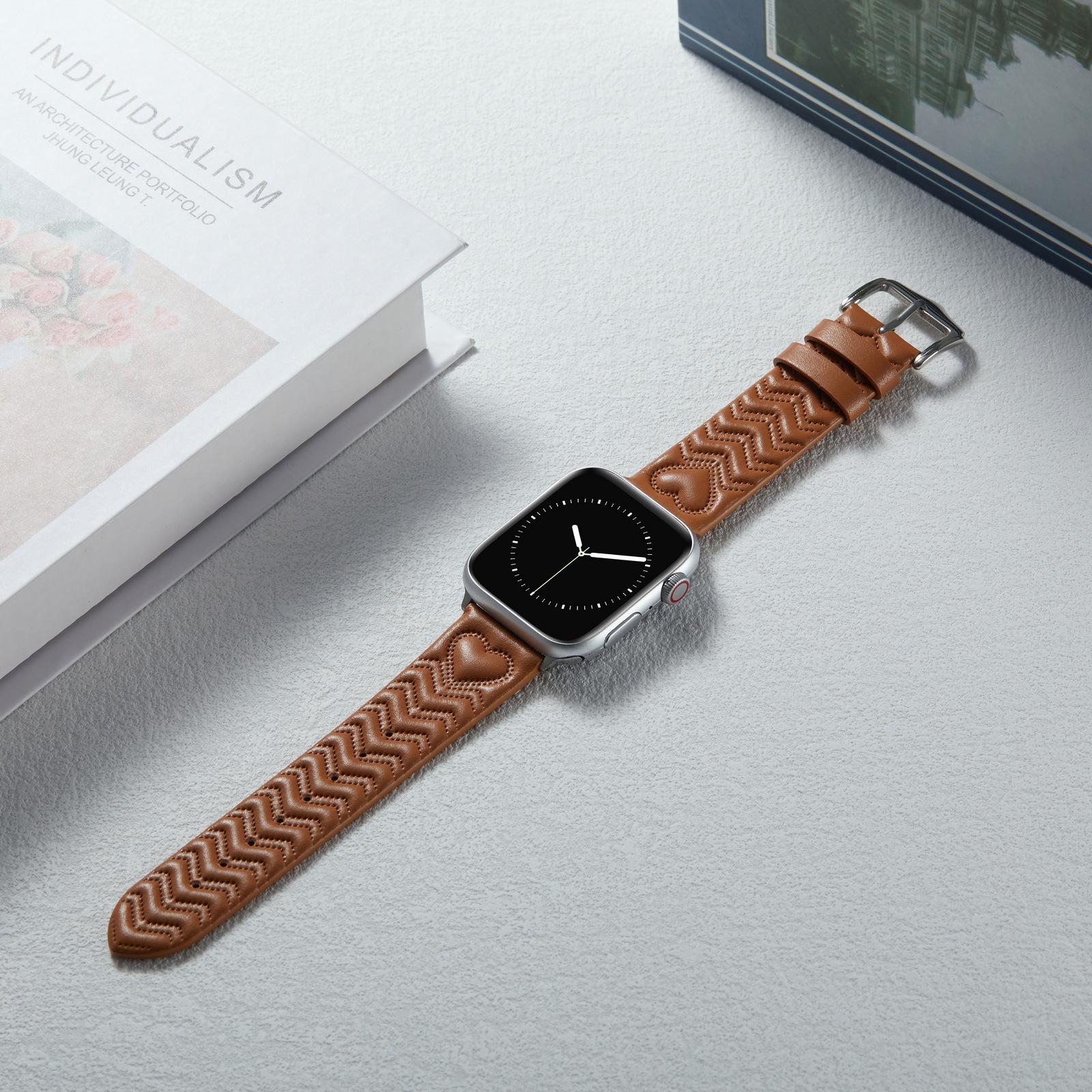 Adecuado para la nueva correa iWatch8 con patrón de amor, Apple Watch 7 generación S6, Apple Watch 5/4321, correa de piel de vaca
