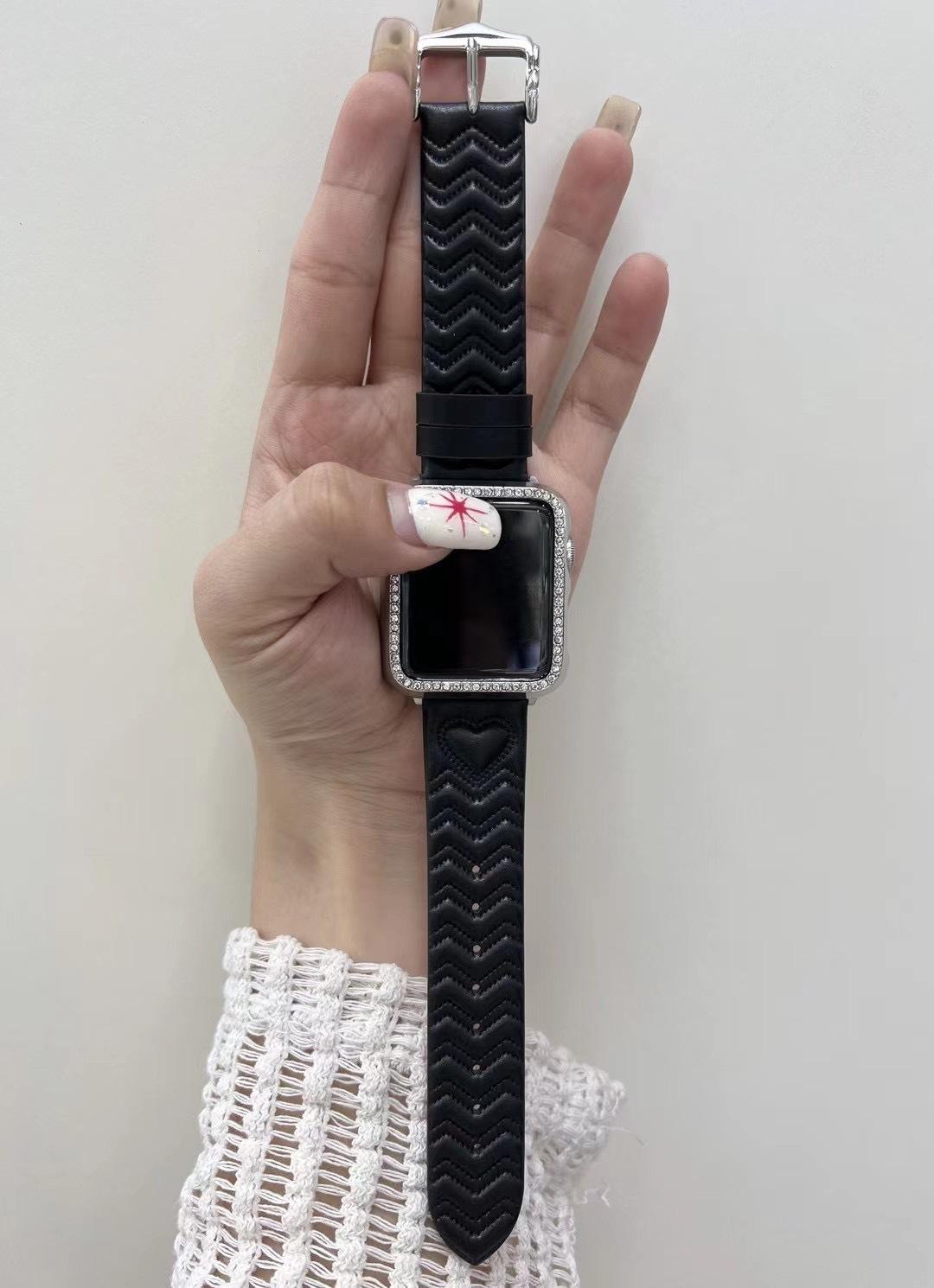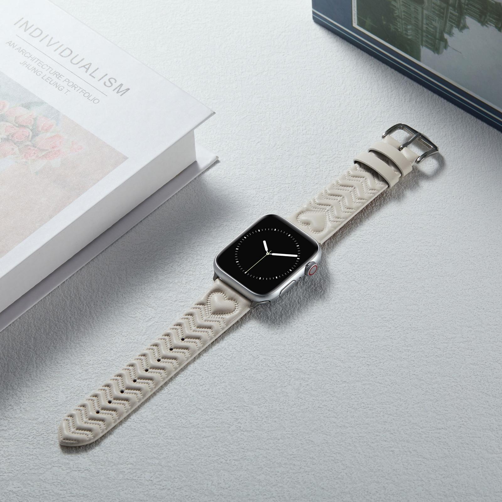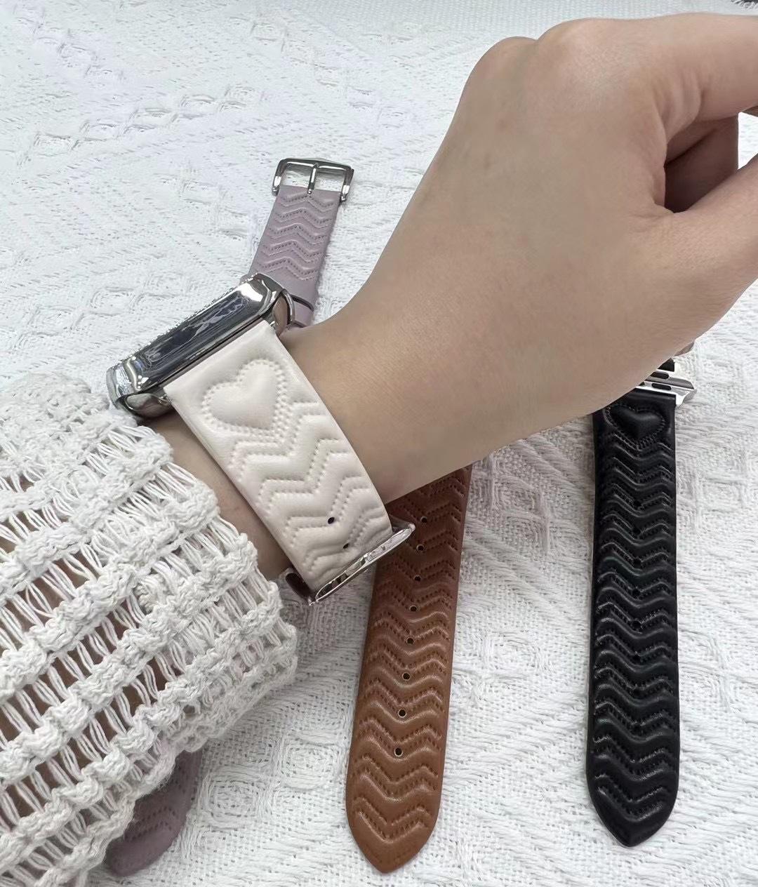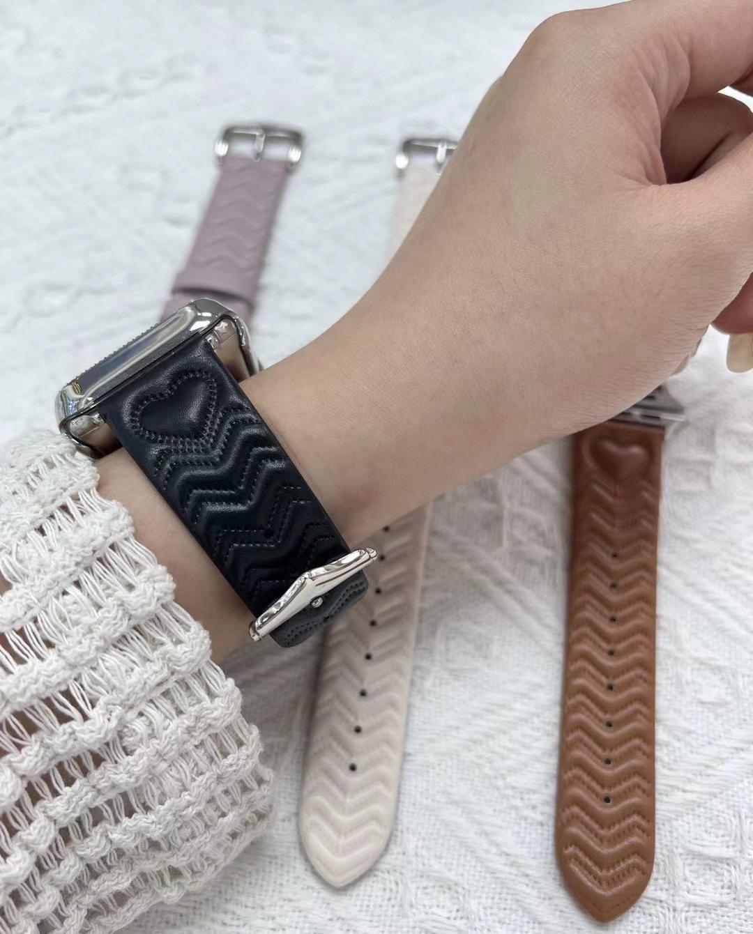 Adecuado para la nueva correa iWatch8 con patrón de amor, Apple Watch 7 generación S6, Apple Watch 5/4321, correa de piel de vaca