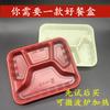 Two-compartment red and black lunch box with lid, Two-compartment yellow and white lunch box with lid, Two-com...