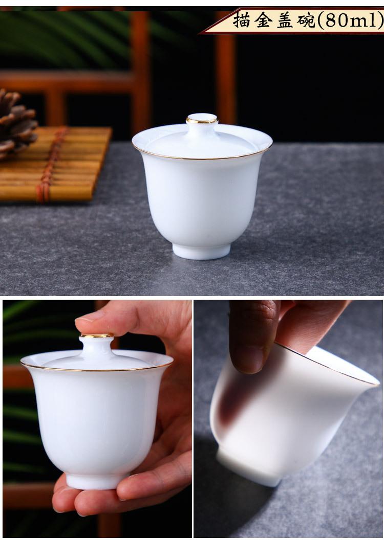 Cuenco pequeño para una persona, con tapa, individual, de tamaño pequeño, 80 ml, de capacidad pequeña, taza de té de jade sebo, de porcelana fina, cuenco de té de kung fu con forma de feto