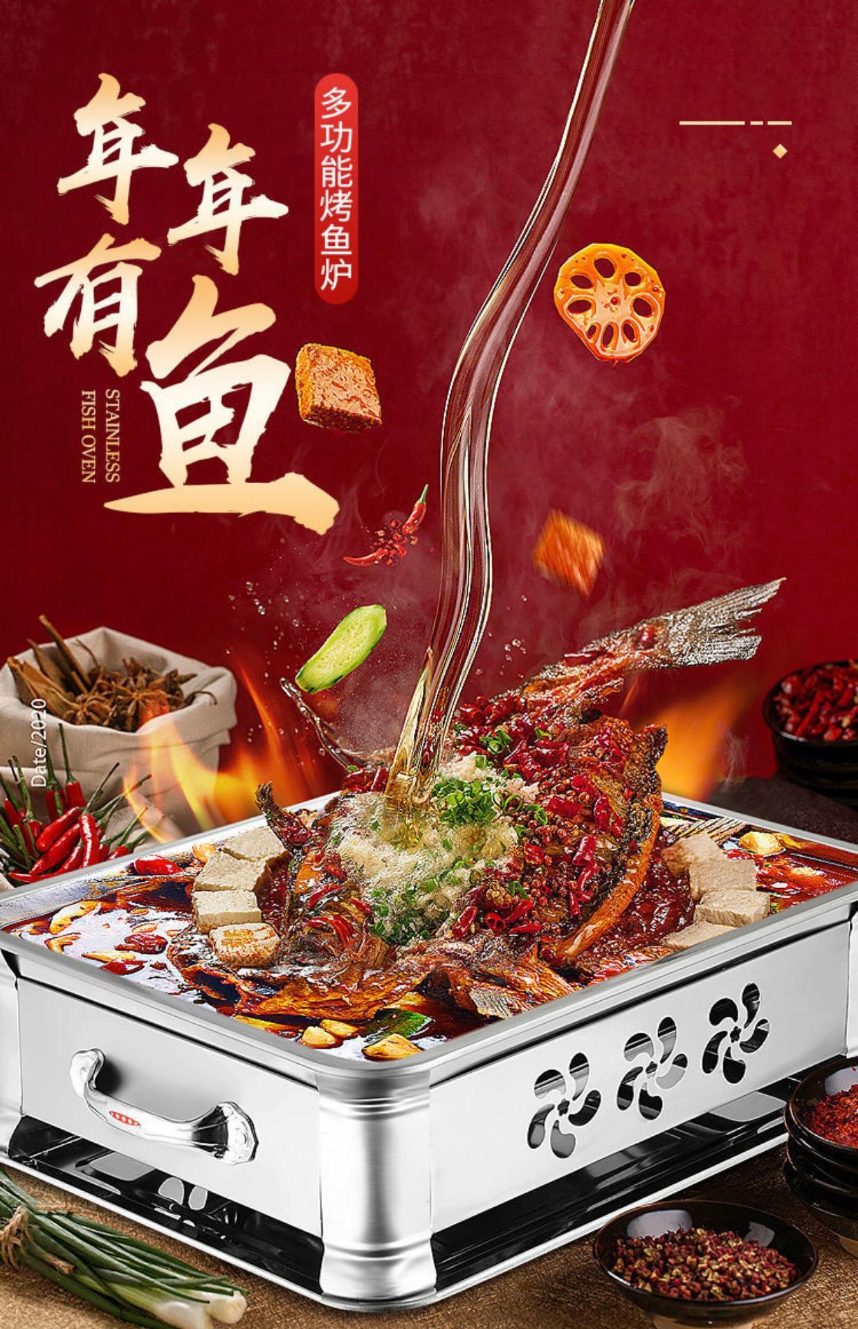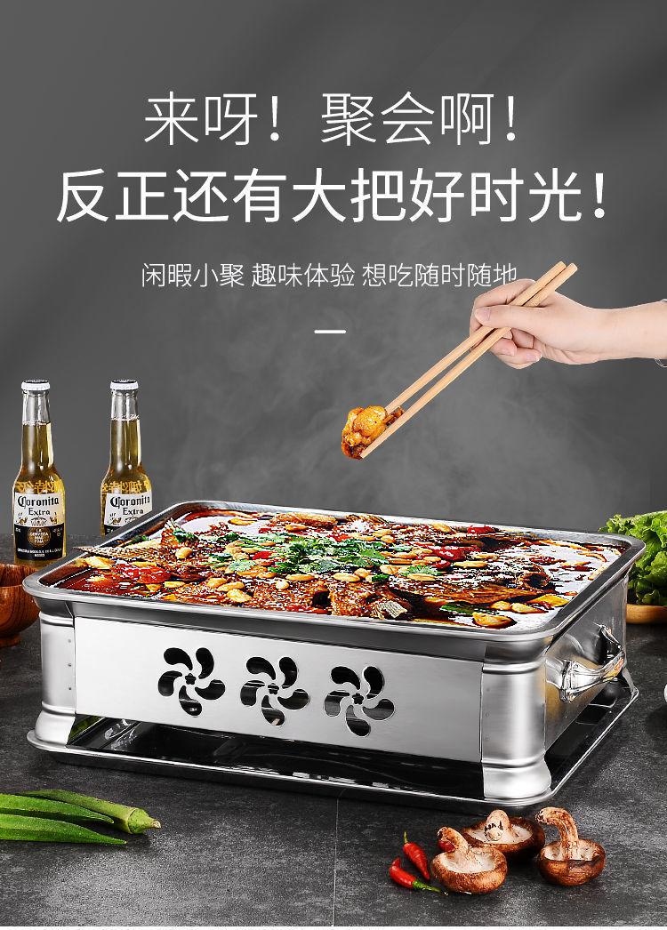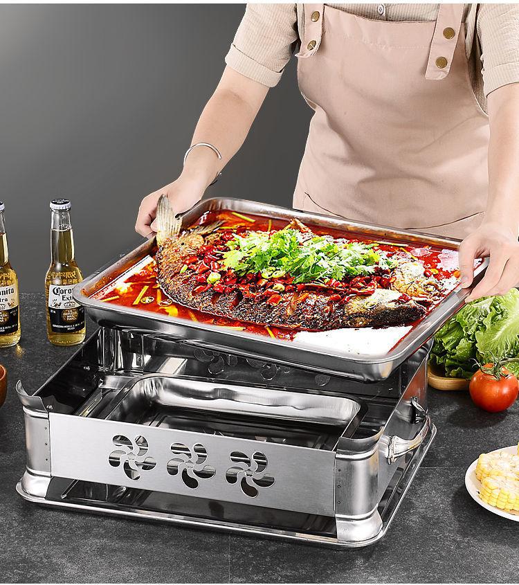 Horno de barbacoa de acero inoxidable, horno comercial para pescado, horno de alcohol, rectangular, para llevar, para restaurante, hotel, con carbón vegetal