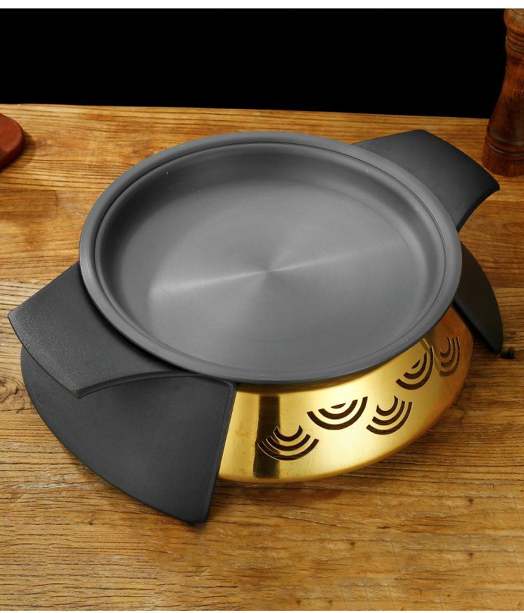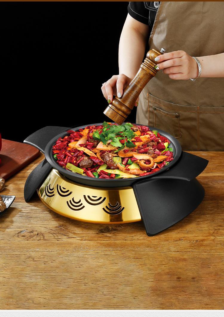 Horno de pescado redondo comercial, caldera seca, horno de alcohol Zhuge, horno de calentamiento, olla de rana, olla seca, plato de pollo frito antiadherente