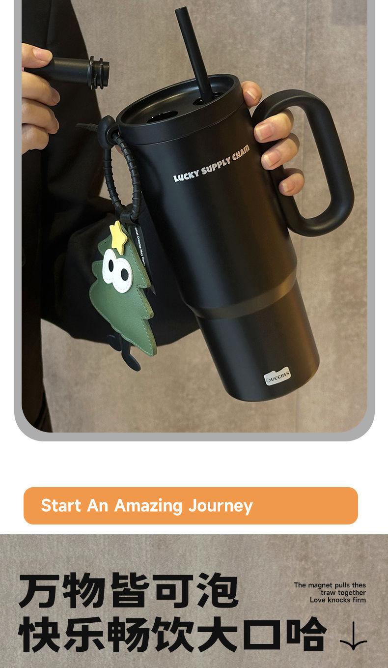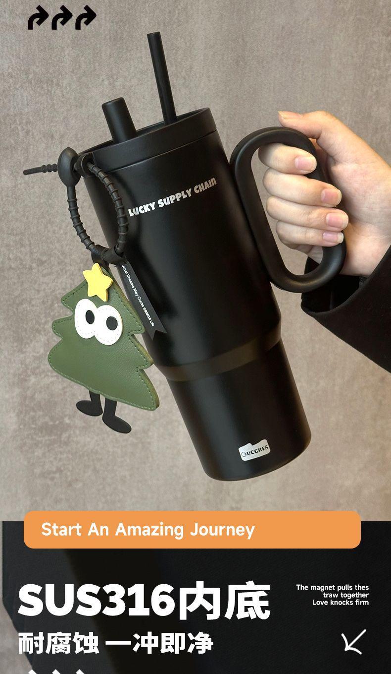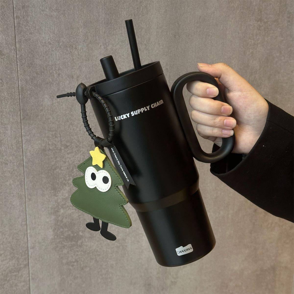 Nueva taza térmica unisex de acero inoxidable, taza de agua de gran capacidad, taza de agua con pajita, taza de café para el coche.