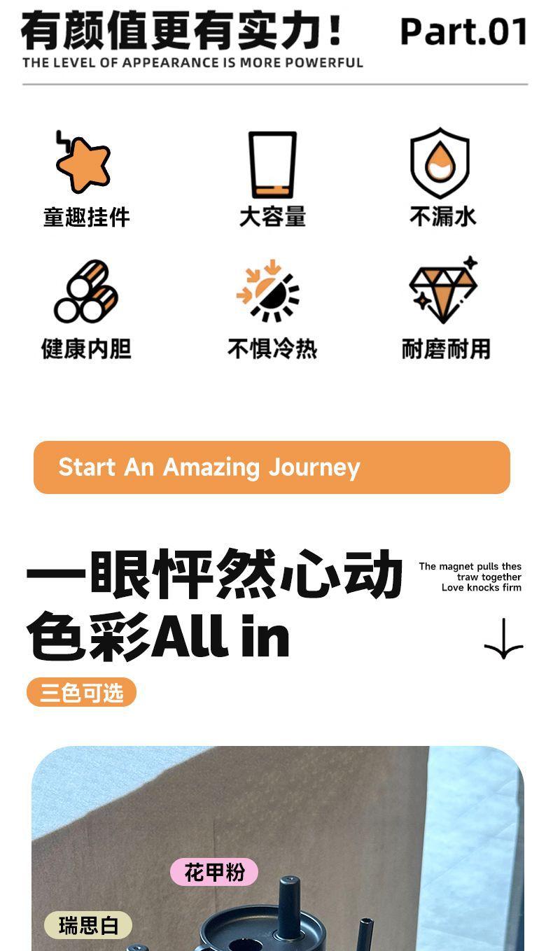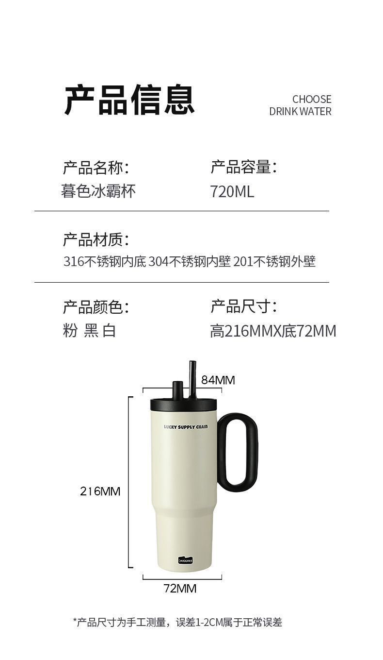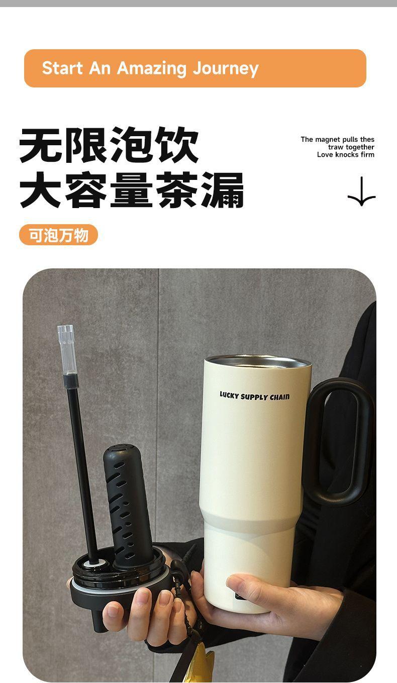 Nueva taza térmica unisex de acero inoxidable, taza de agua de gran capacidad, taza de agua con pajita, taza de café para el coche.