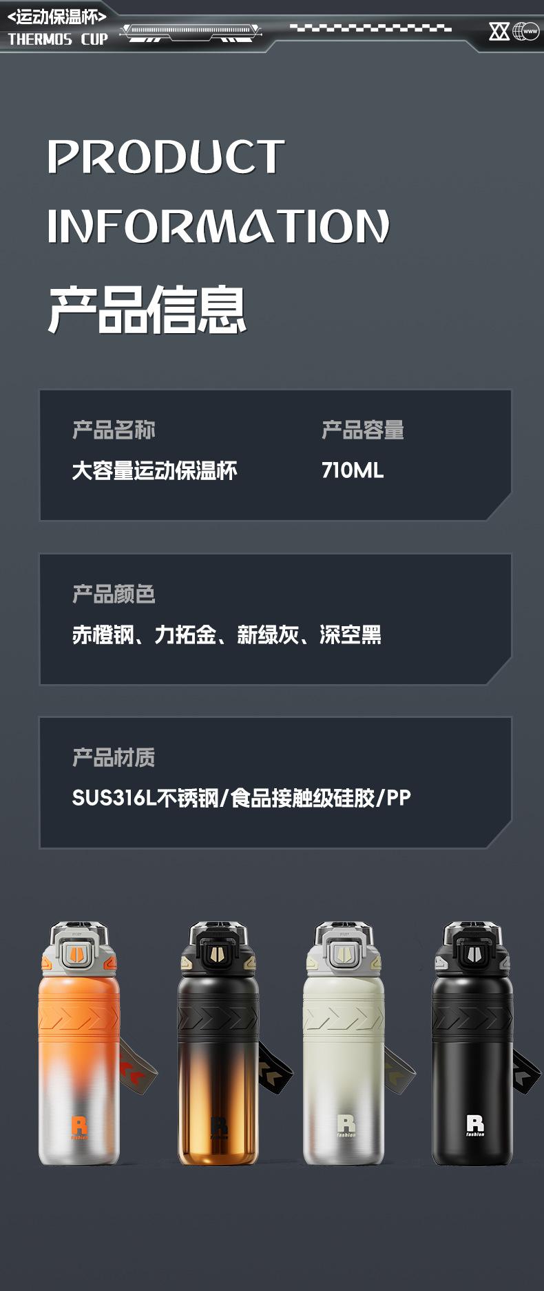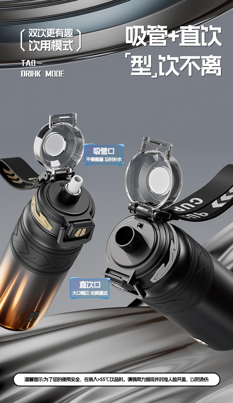 Nuevo termo portátil de acero inoxidable 316 de grado alimenticio, taza deportiva de agua con doble pajita, regalo de negocios.