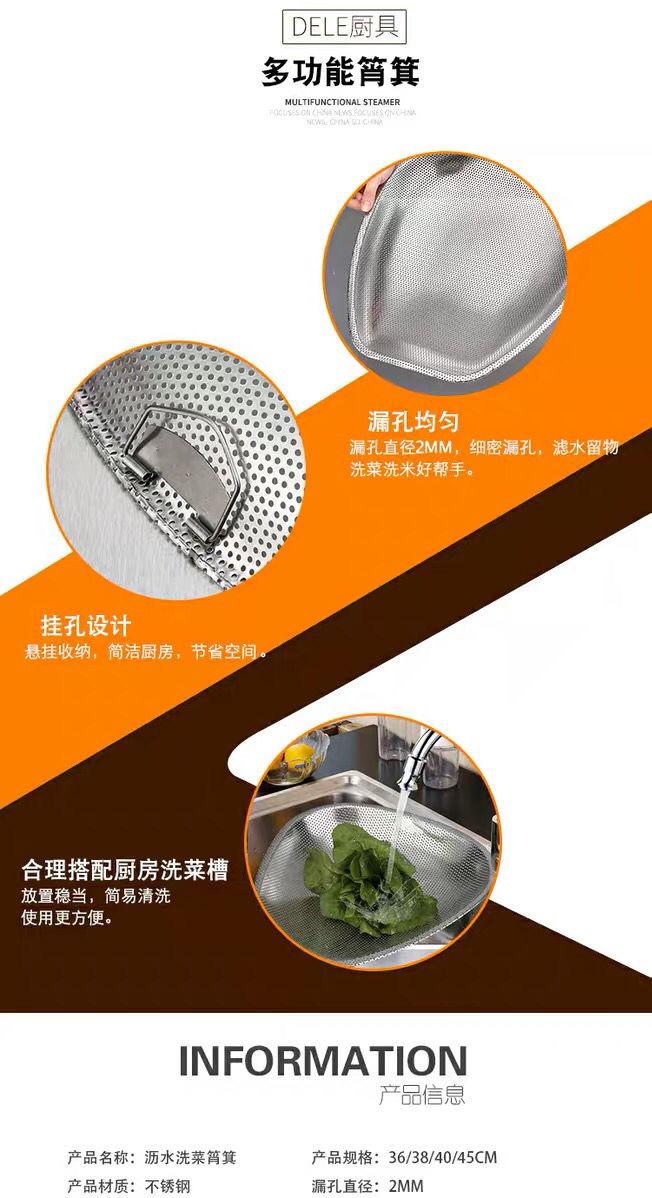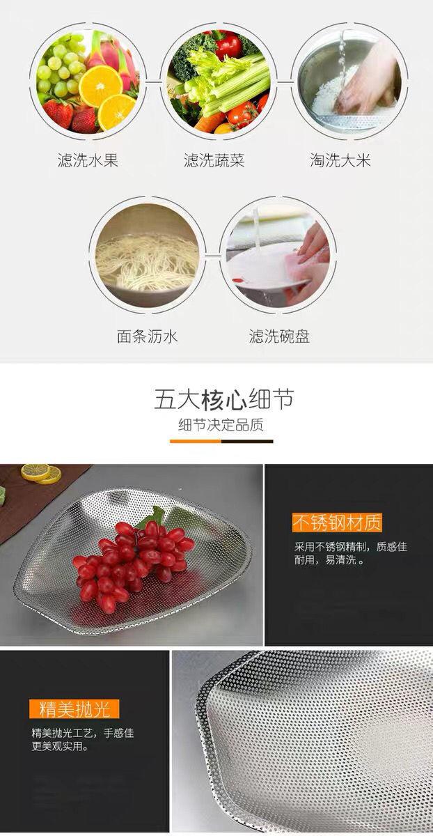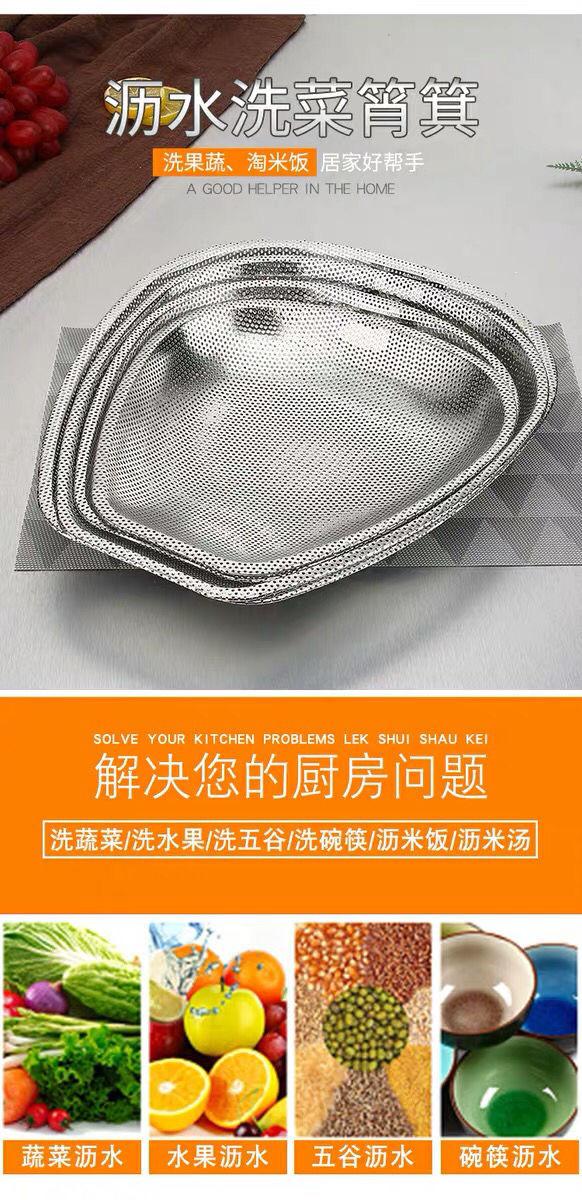 Acero Inoxidable Cesto de Drenaje Shau Kei Colador de Agujeros Densos Recogedor Lavabo para Lavar Verduras Cesto de Drenaje de Cocina Doméstica Colador de Arroz Amoy Suministro de Tienda de Diez Yuanes
