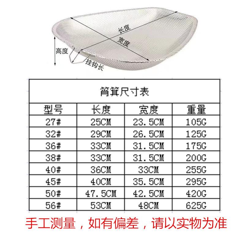 36#33cm long and 31.5cm wide, 38#36cm long and 33cm wide, 40#40cm long and 35.5cm wide, 50#47.5 long and 42.5cm wide