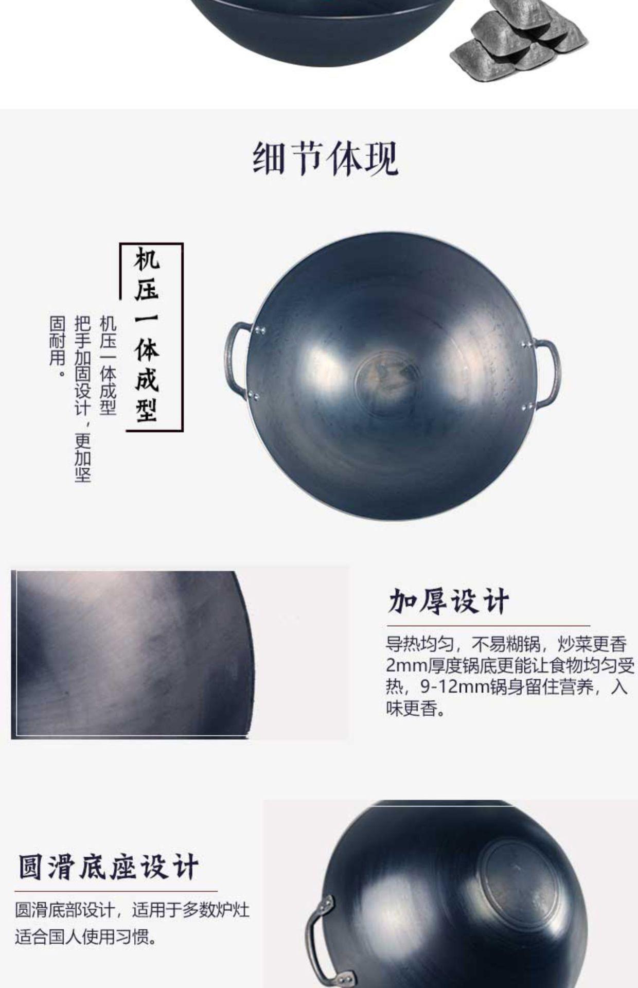Estufa de gas comercial, wok binaural antiguo de fondo puntiagudo, olla grande de hierro antiadherente, olla para chef doméstico, restaurante, cantina