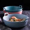 Tazón de sopa de doble oreja de pez burbuja de 10,25 pulgadas, tazón de sopa de cerámica de gran capacidad, vajilla para el hogar, tazón de sopa para el hogar
