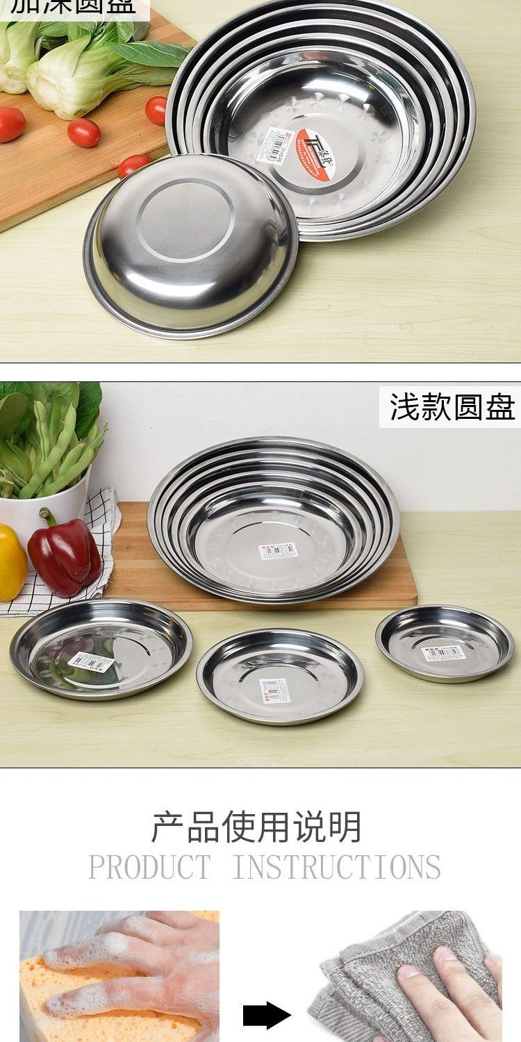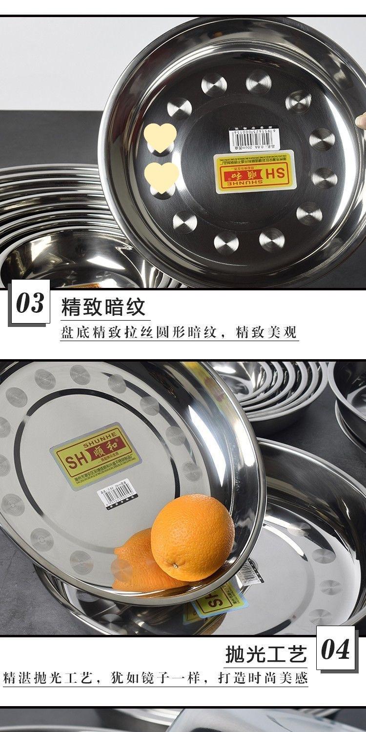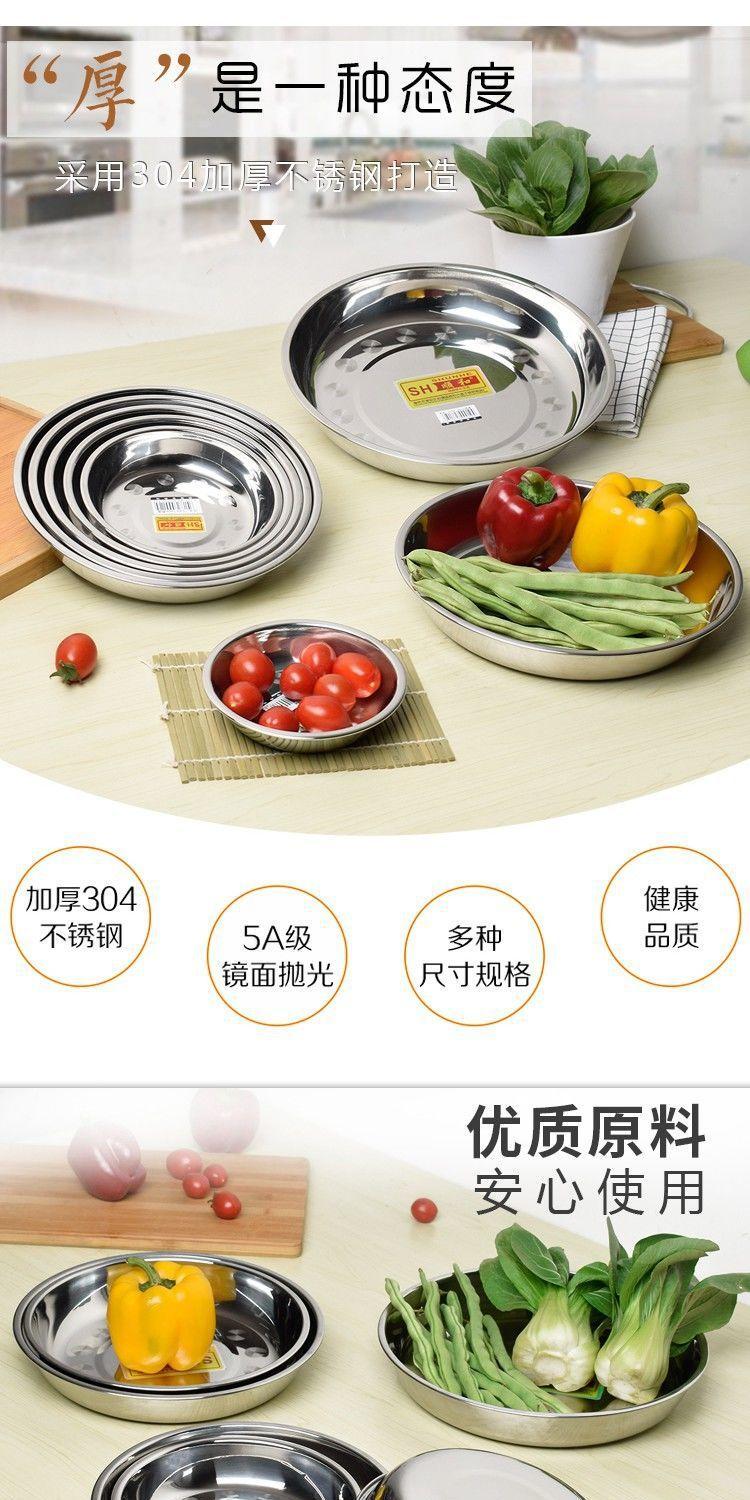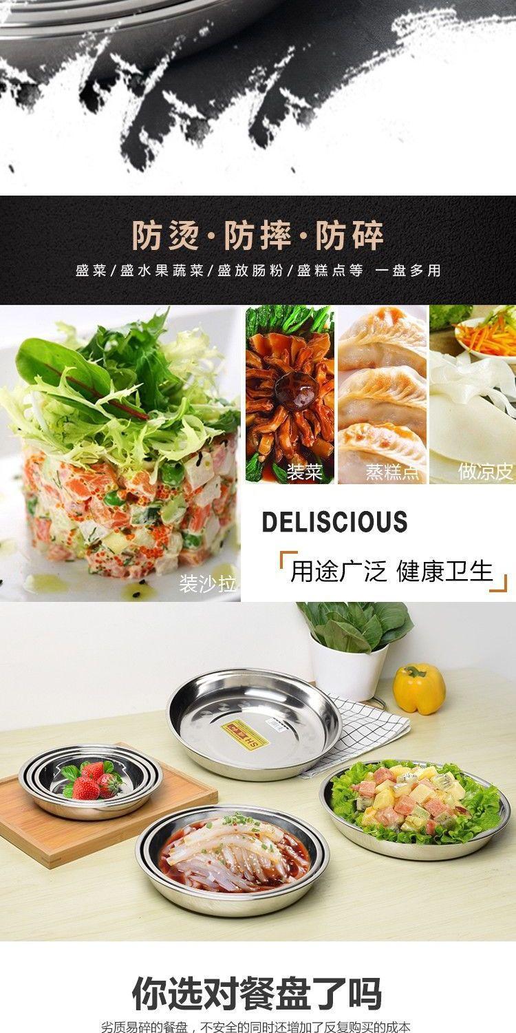 Plato plano de acero inoxidable para el hogar, vajilla, plato redondo grueso, plato para barbacoa, plato poco profundo, plato para el hogar