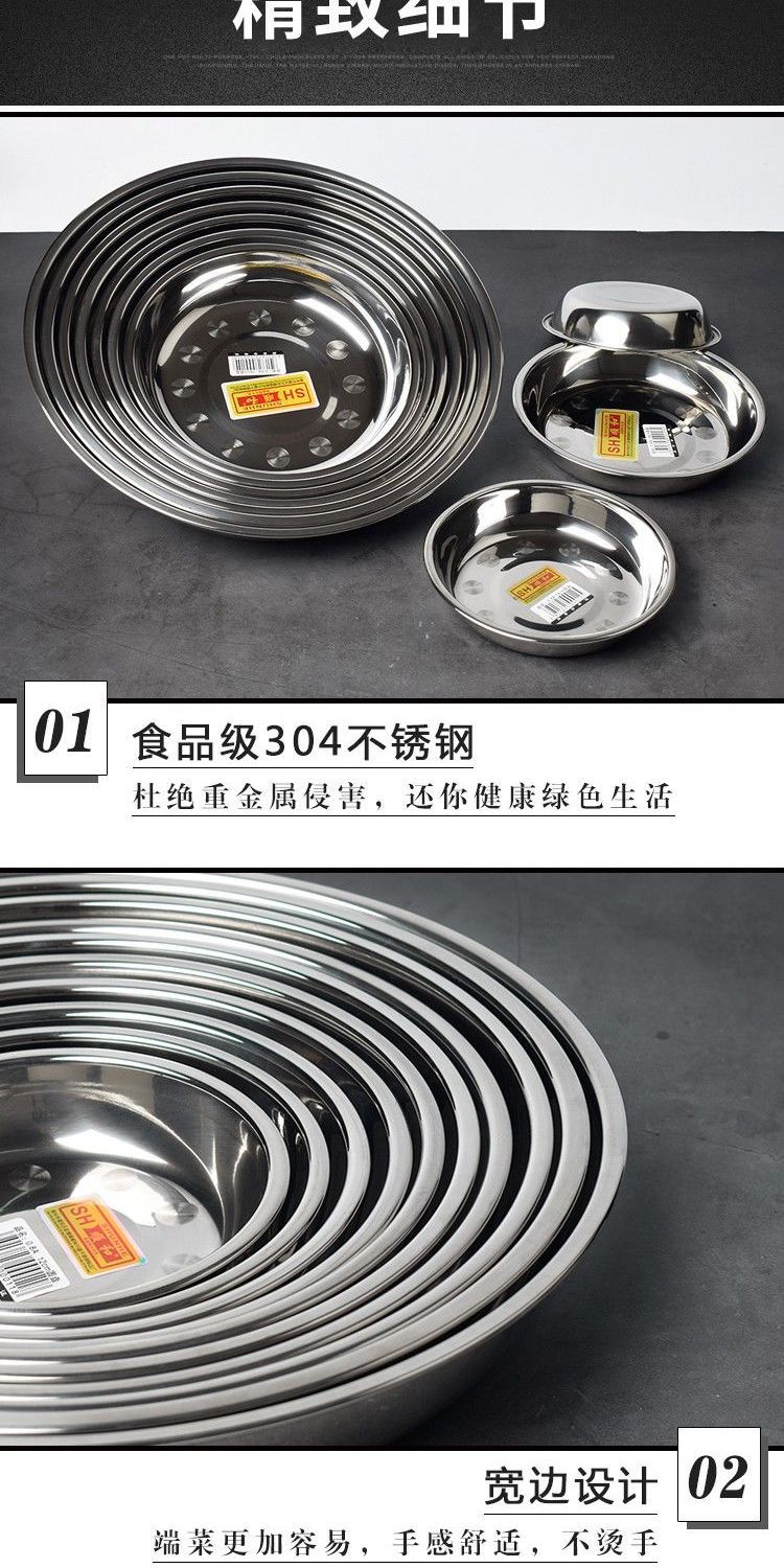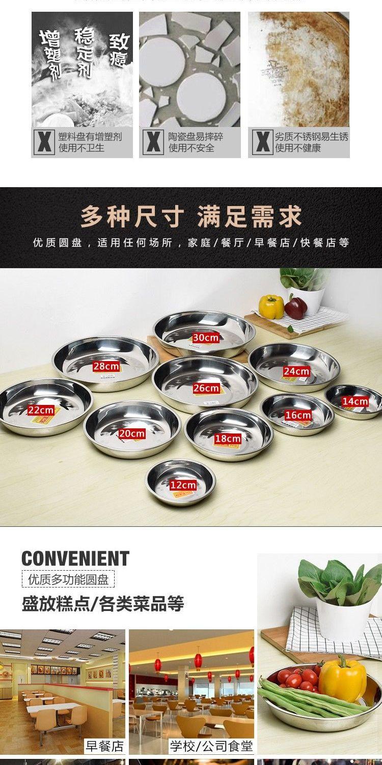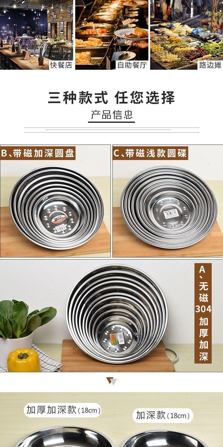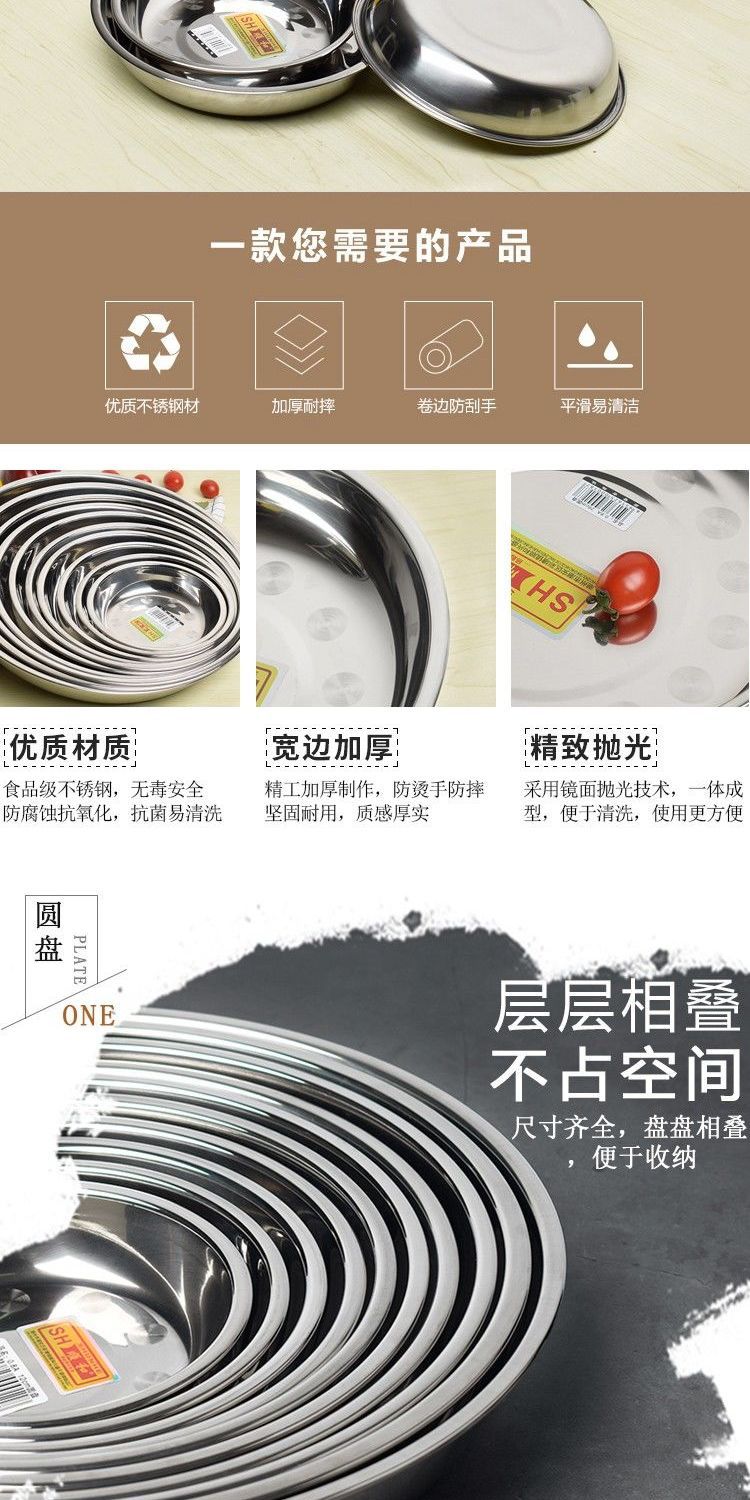 Plato plano de acero inoxidable para el hogar, vajilla, plato redondo grueso, plato para barbacoa, plato poco profundo, plato para el hogar