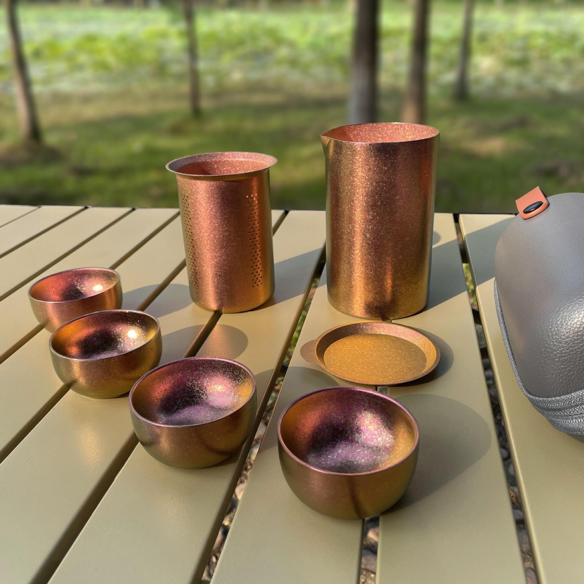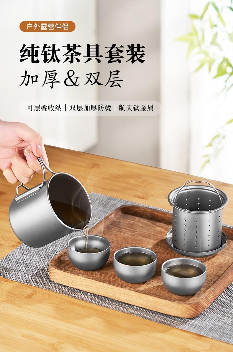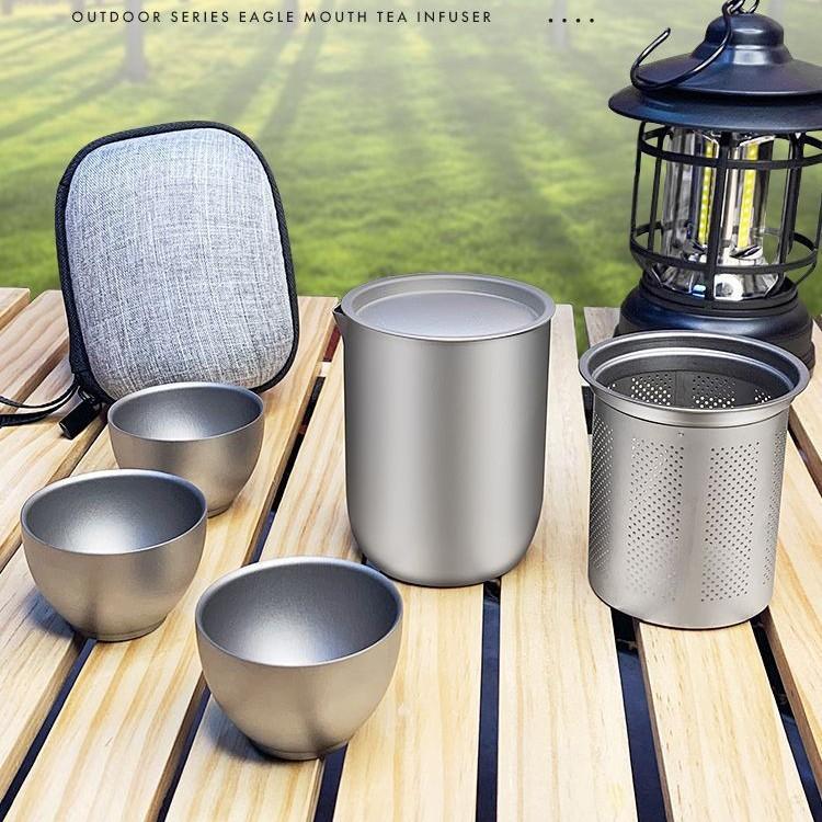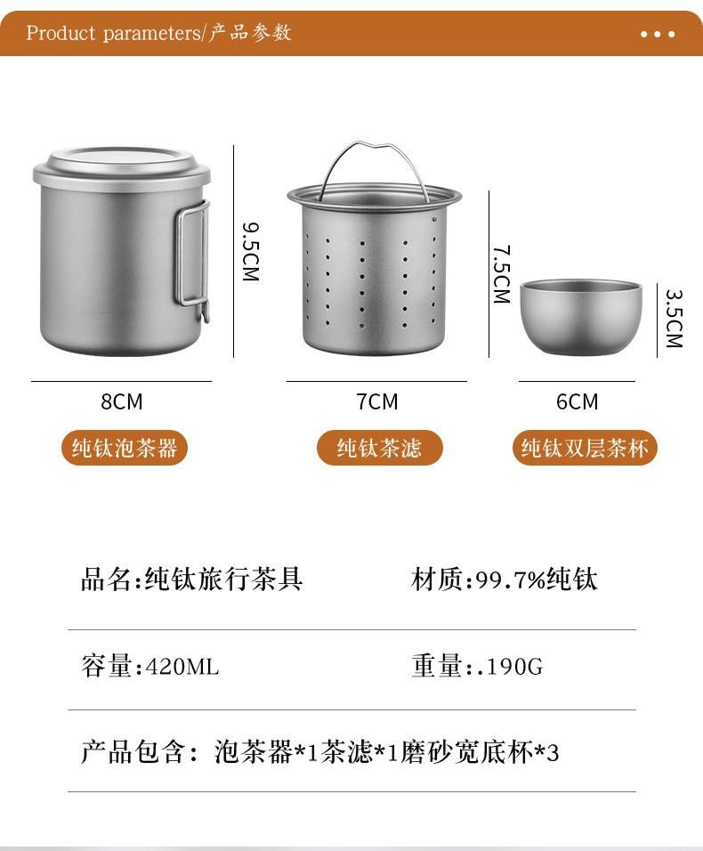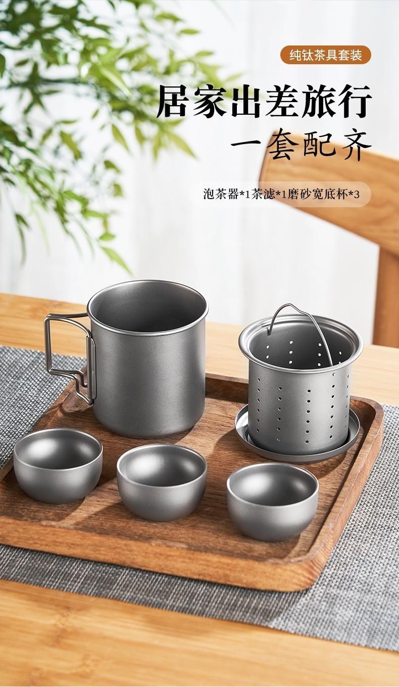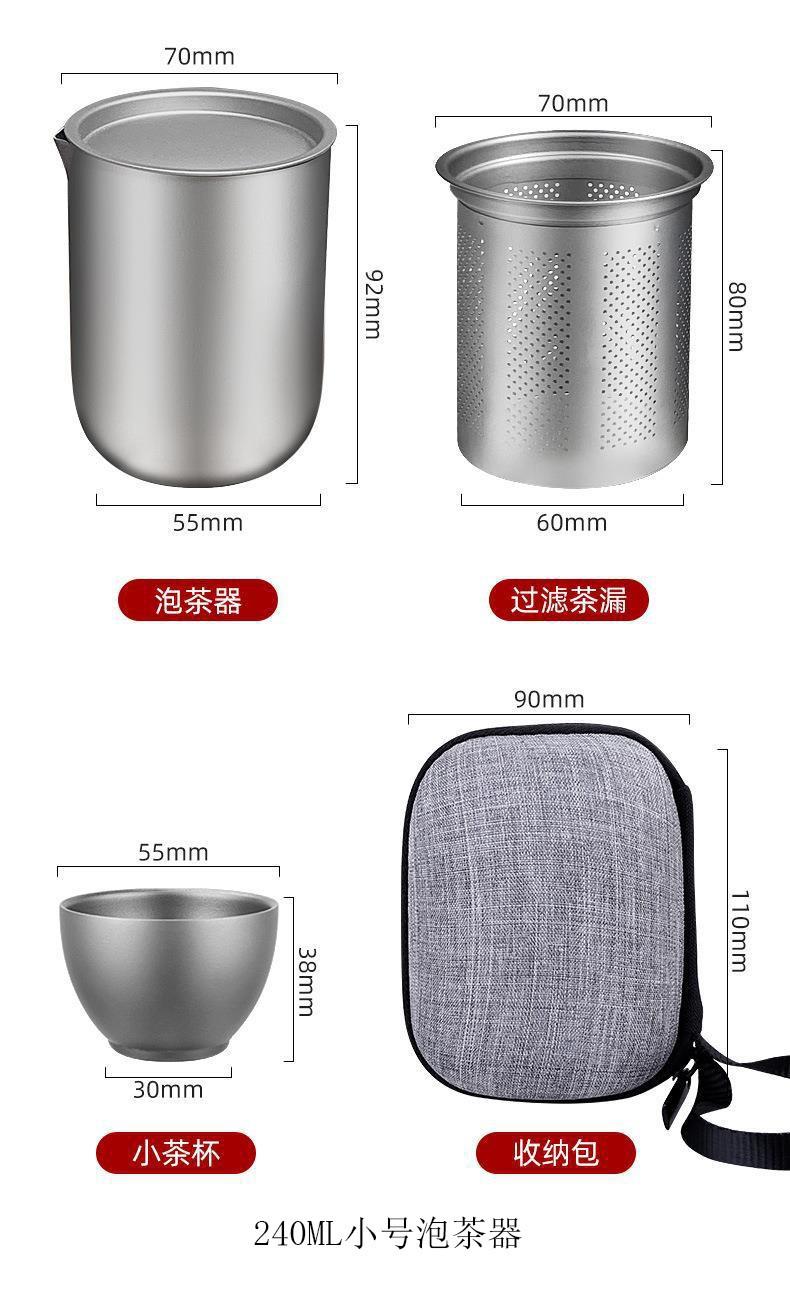 (small size) pure titanium 240m tea maker + 3 original color cups + storage bag