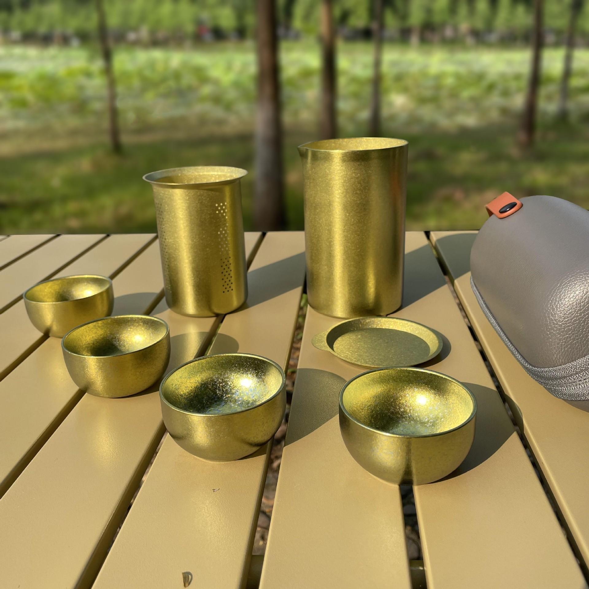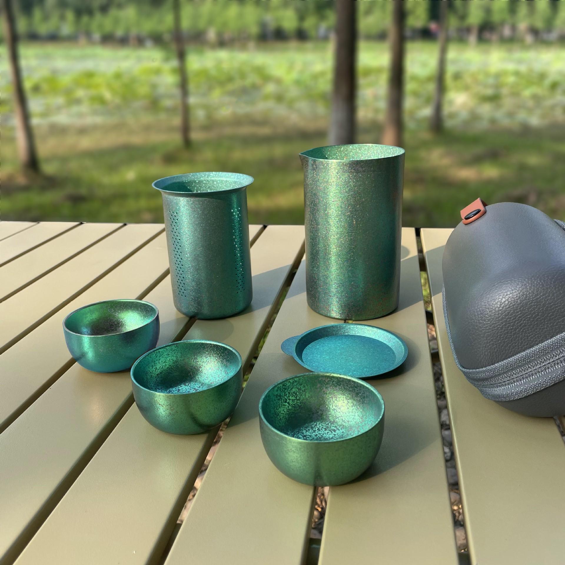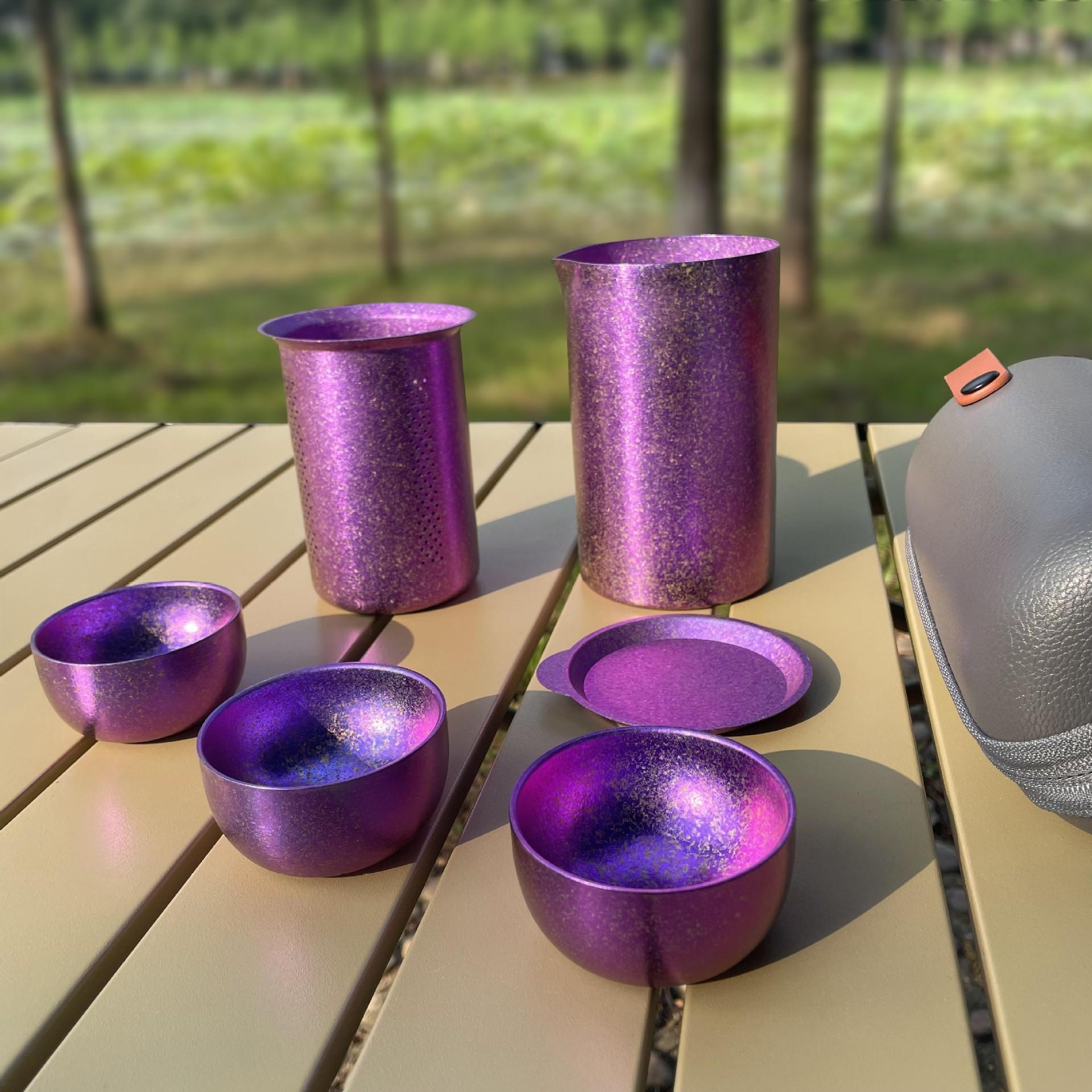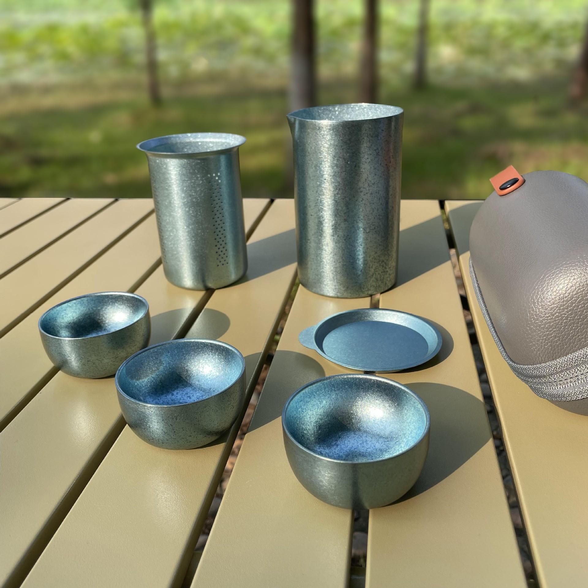 (small size) pure titanium 240m tea maker + 3 original color cups + storage bag