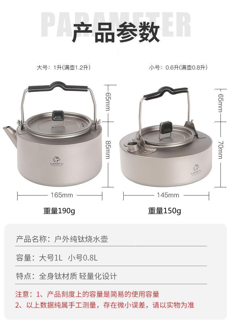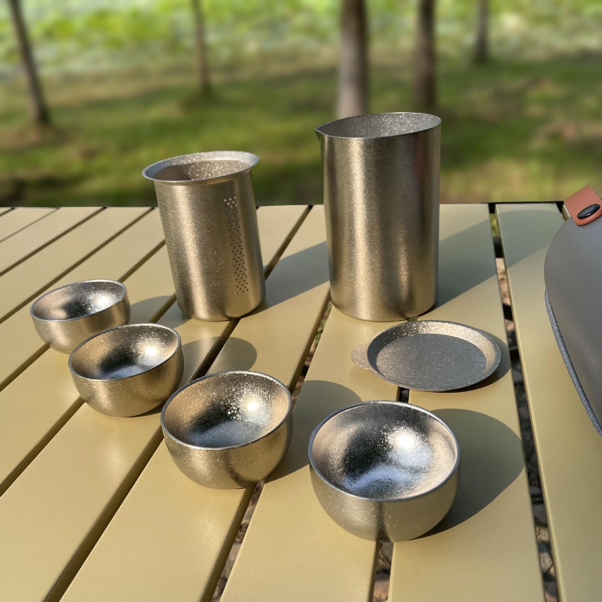 Juego de Té de Titanio Traje Equipo Portátil de Viaje para Exteriores Camping Picnic Tetera de Titanio Taza de Agua Taza Rápida para Invitados Bandeja de Té