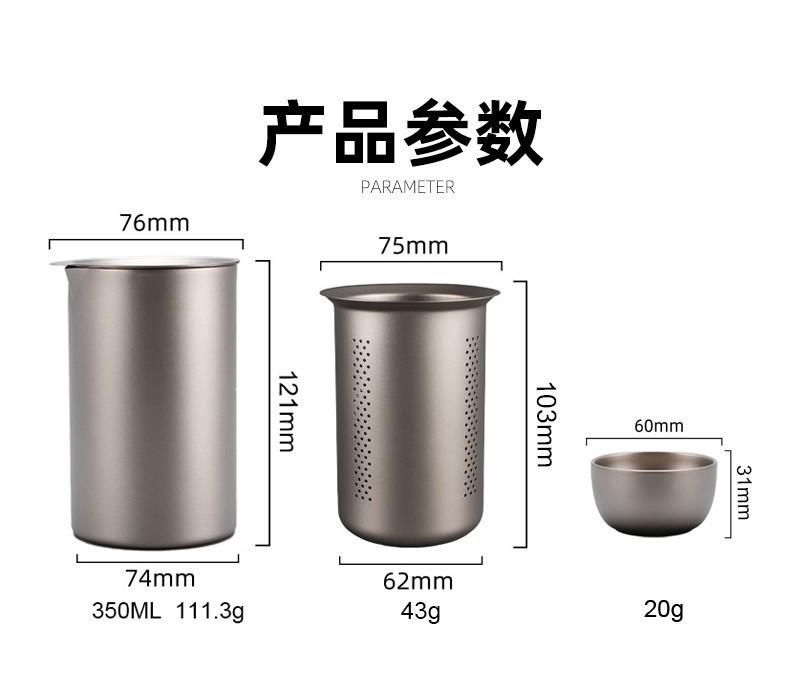 Pure titanium 350ml tea maker + 1 primary color cup + storage bag, Pure titanium 350ml tea maker + 2 primary c...