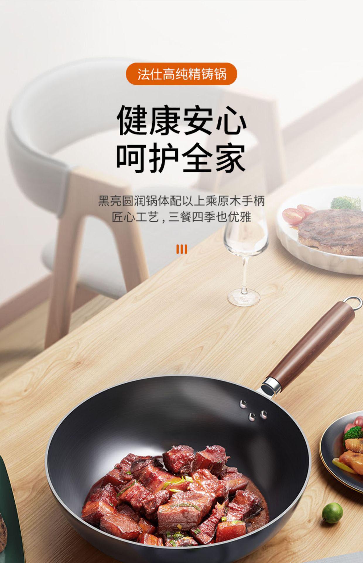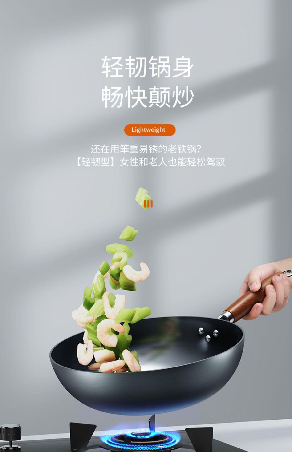 Sartén de hierro hecha a mano Zhangqiu, wok tradicional, sartén antiadherente, sin revestimiento, wok con menos humo para estufa de gas doméstica